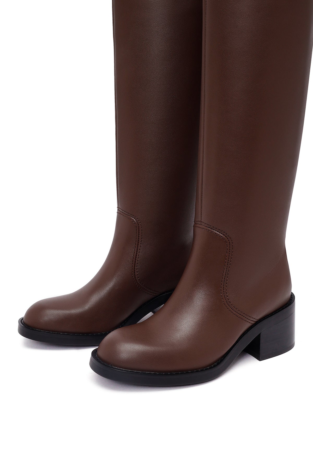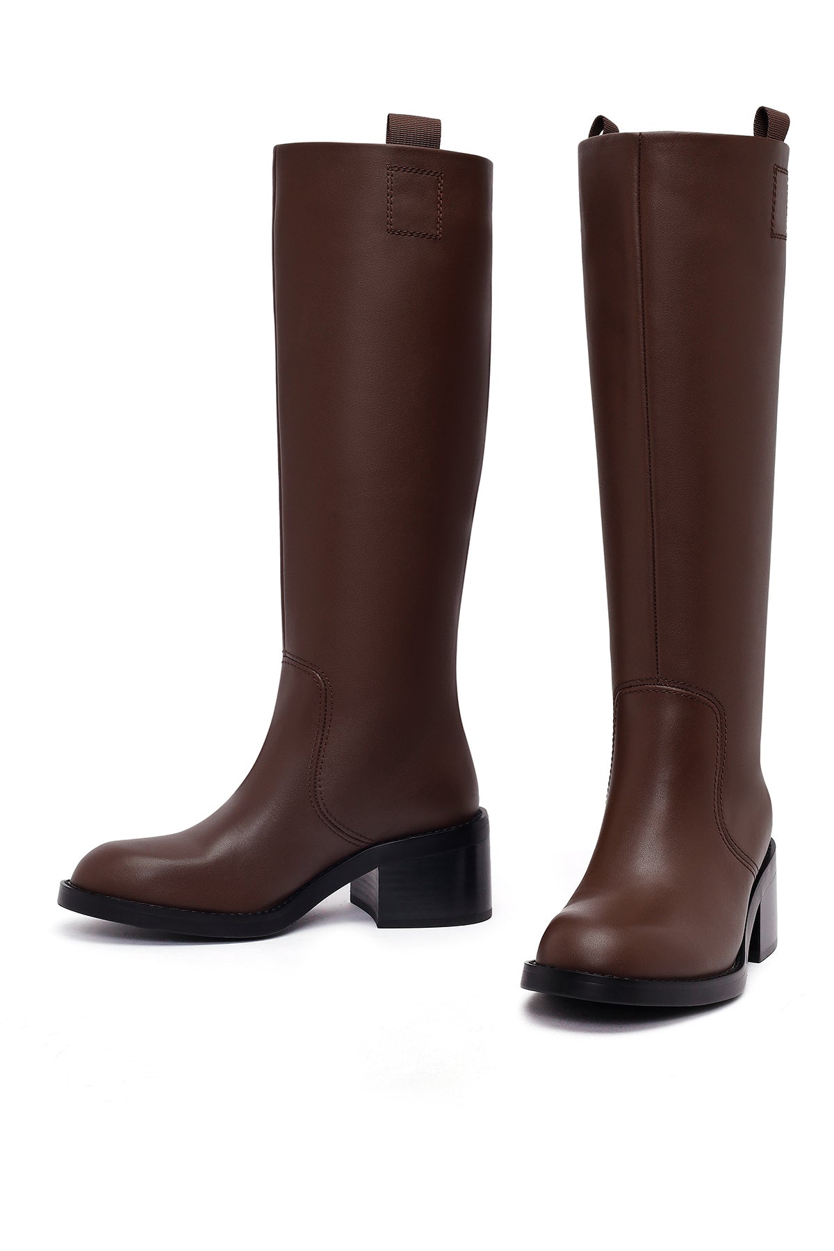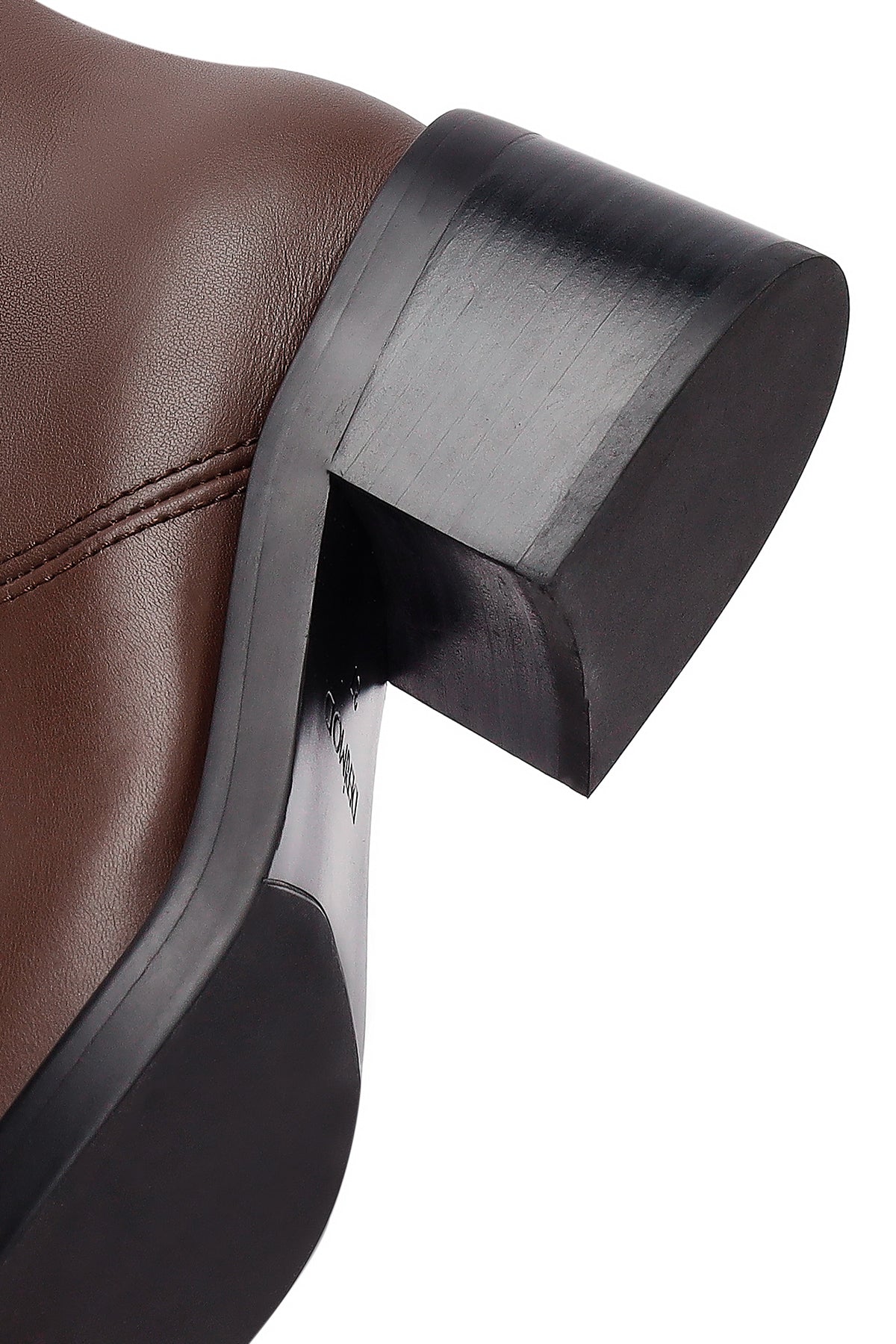 چکمه چرمی زنانه قهوهای پاشنه ضخیم دریمد
