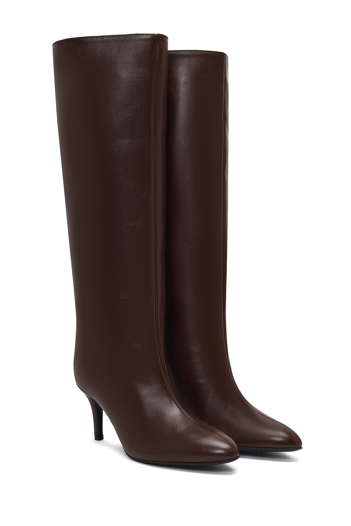 Kadın Kahverengi İnce Topuklu Deri Çizme