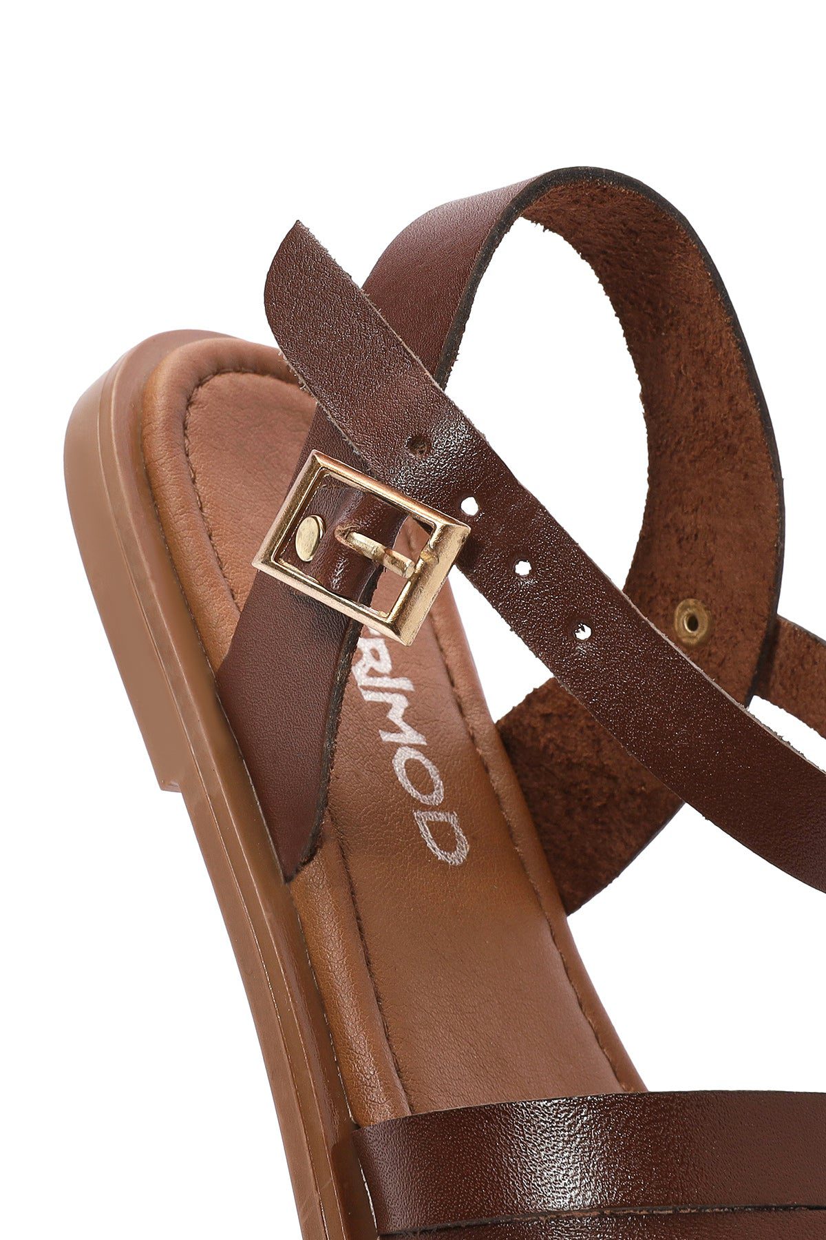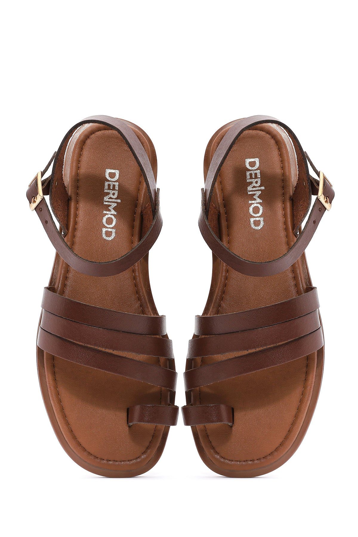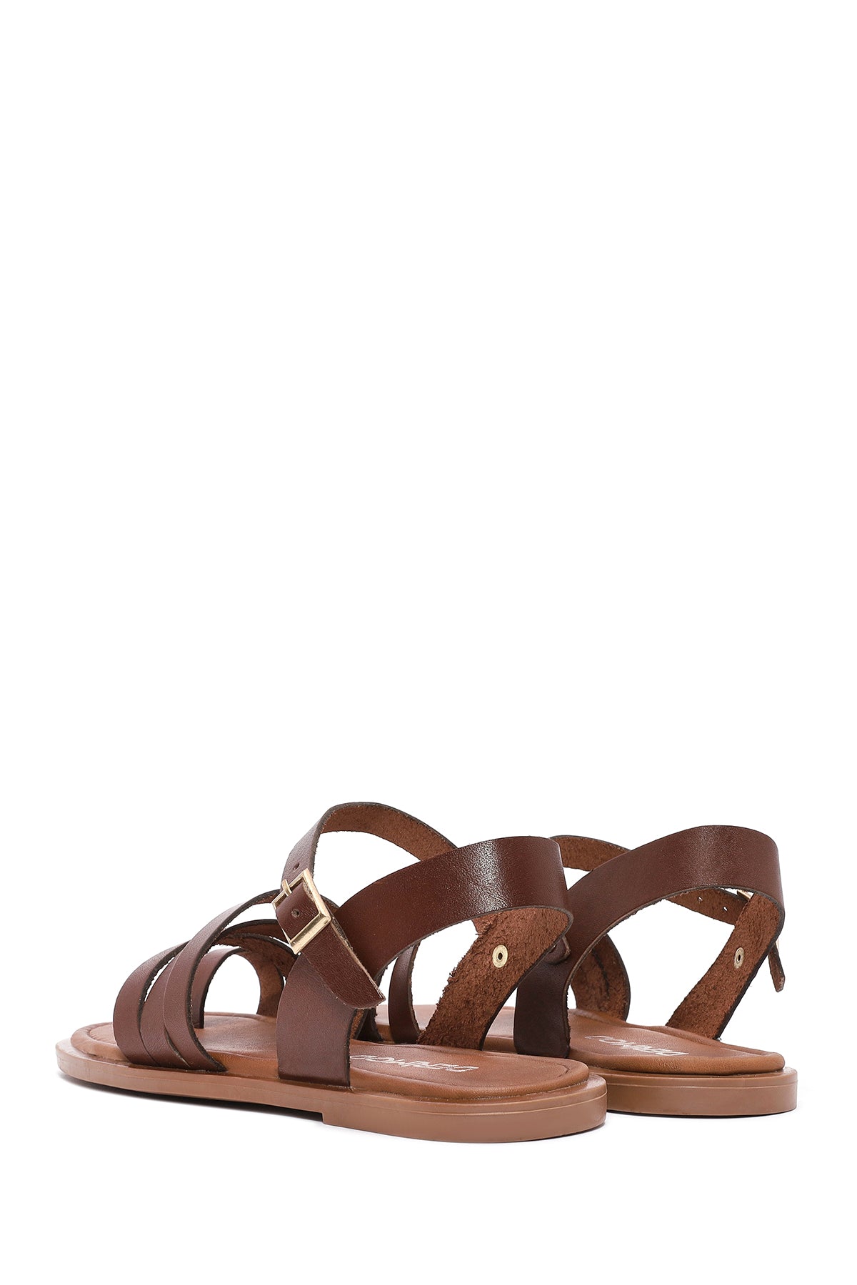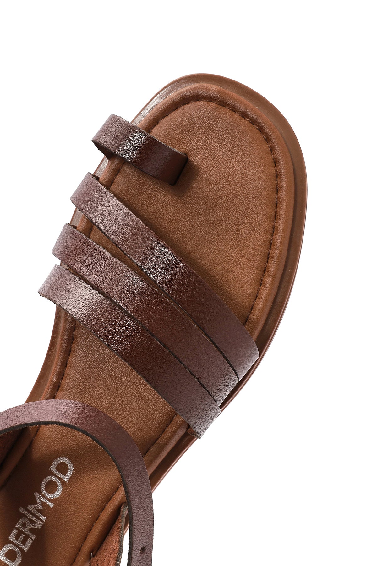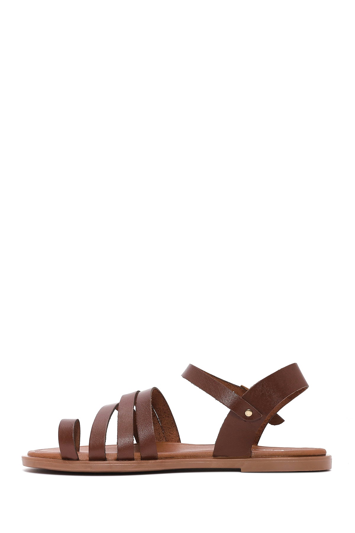 Kadın Kahverengi Bilekten Bağlamalı Parmak Arası Deri Bodrum Sandalet