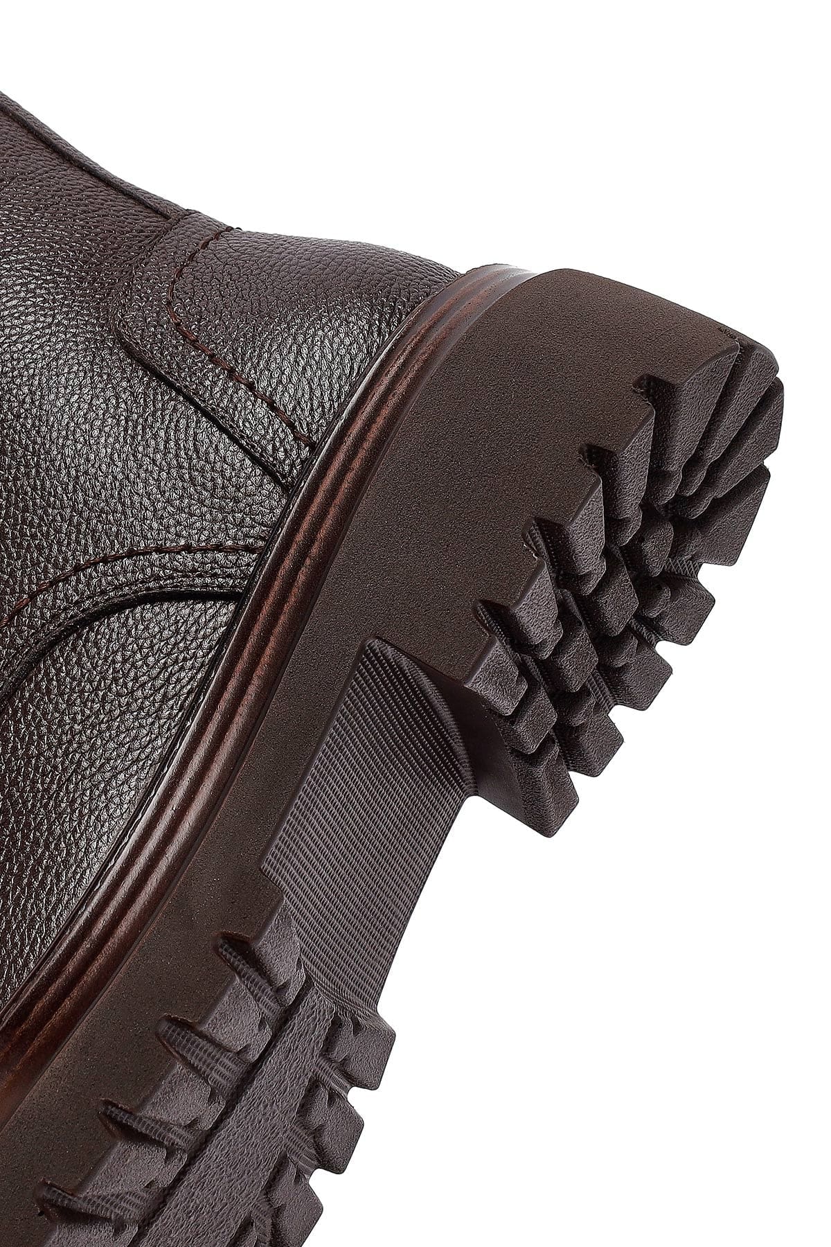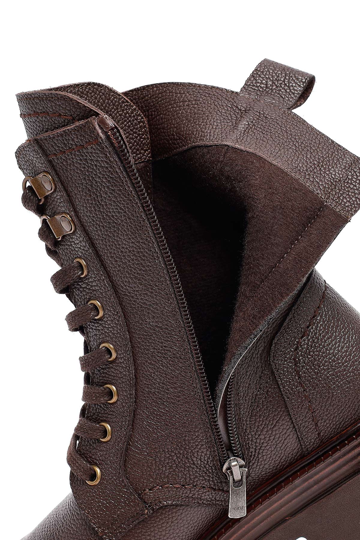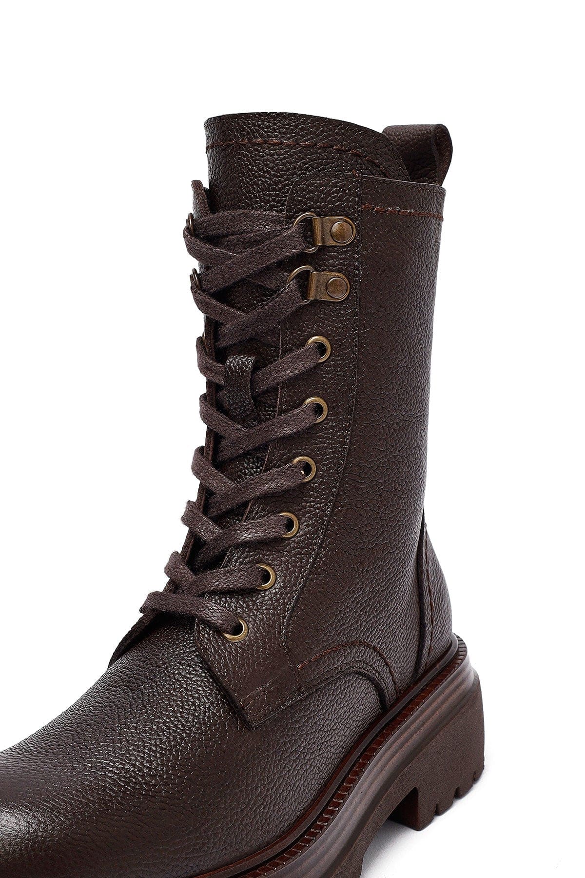 بوت زنانه چرم قهوهای زیپدار بنددار ضخیم دری مد