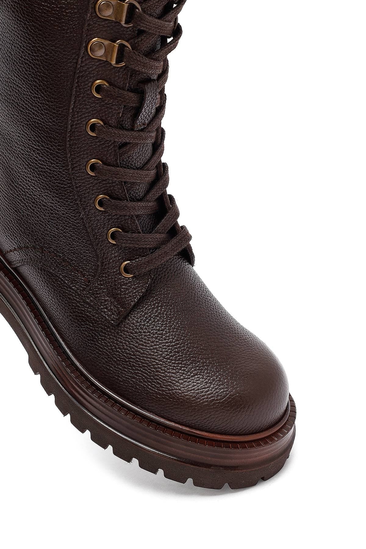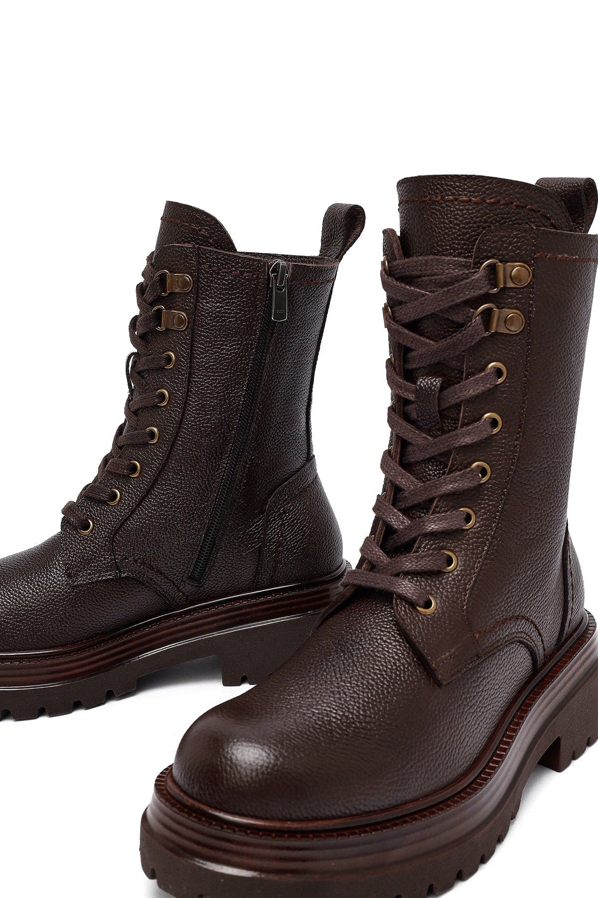 Kadın Kahverengi Fermuarlı Bağcıklı Deri Postal Bot