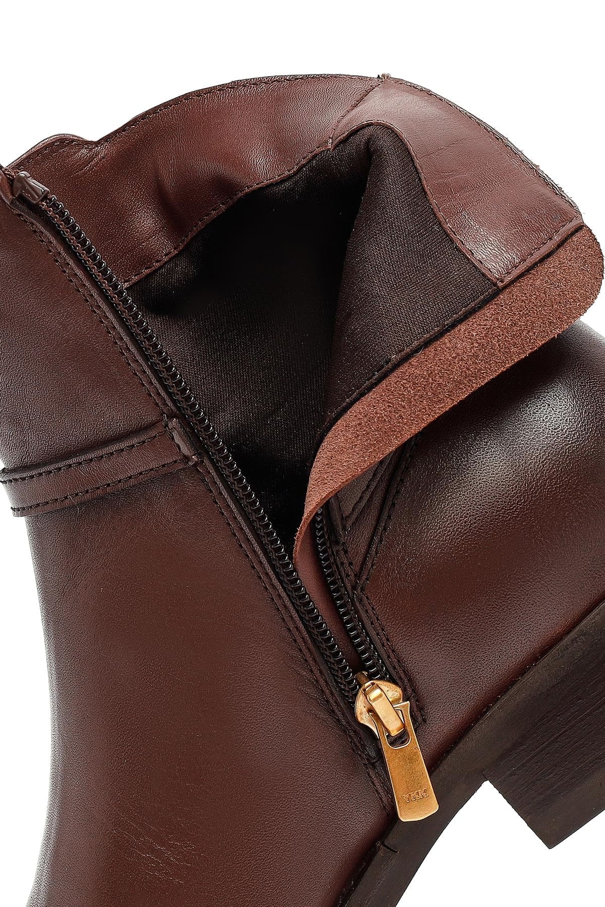 Kadın Kahverengi Fermuarlı Deri Bot