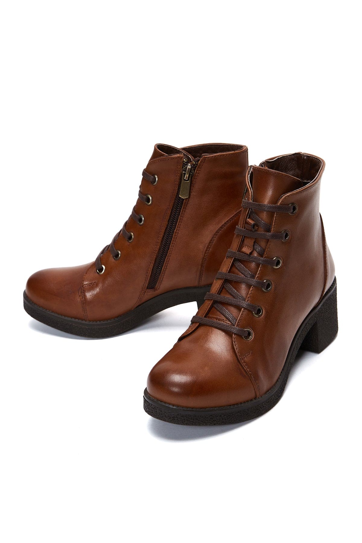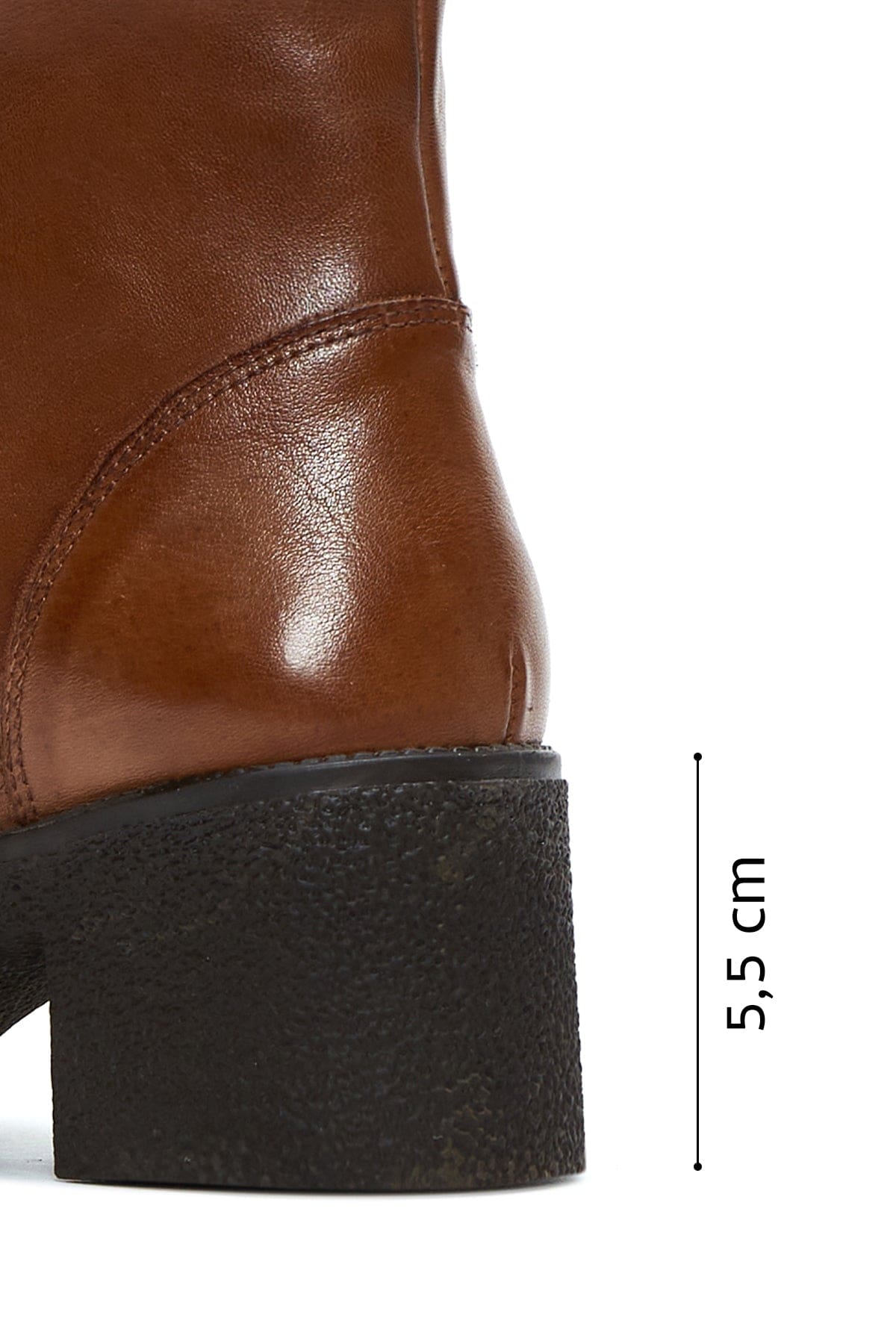 Kadın Taba Fermuarlı Kalın Topuklu Deri Casual Bot