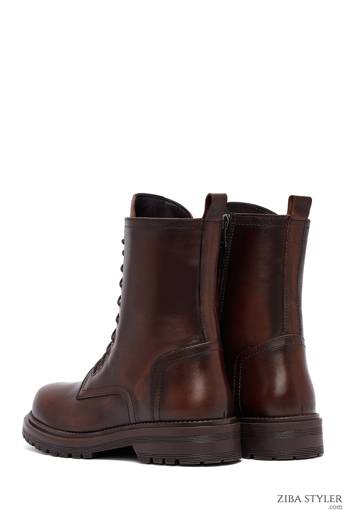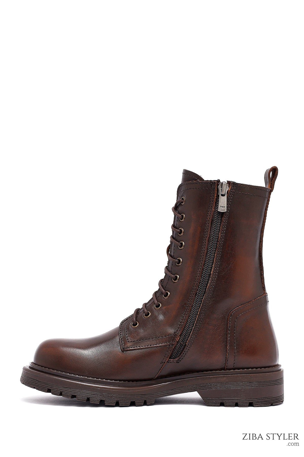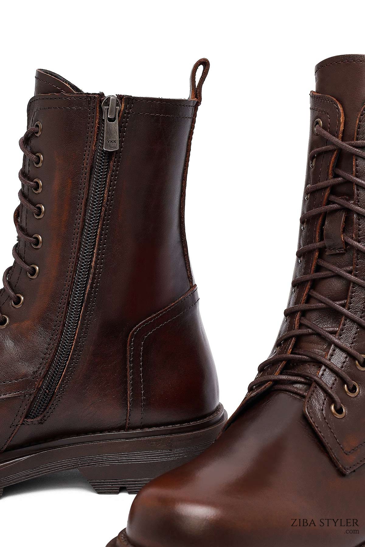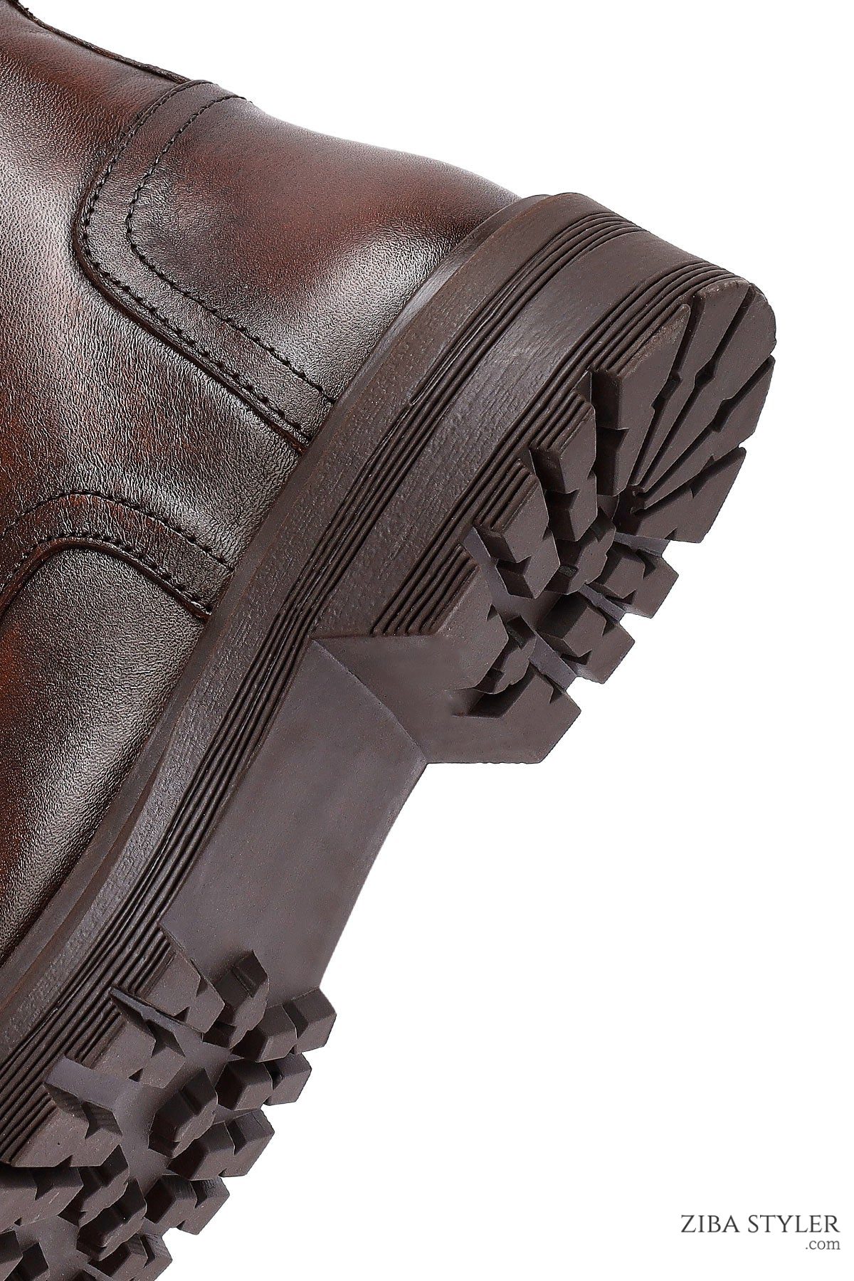 بوت زنانه چرمی قهوهای زیپدار دری مد