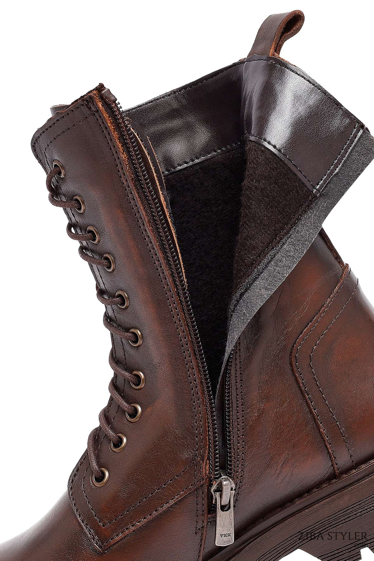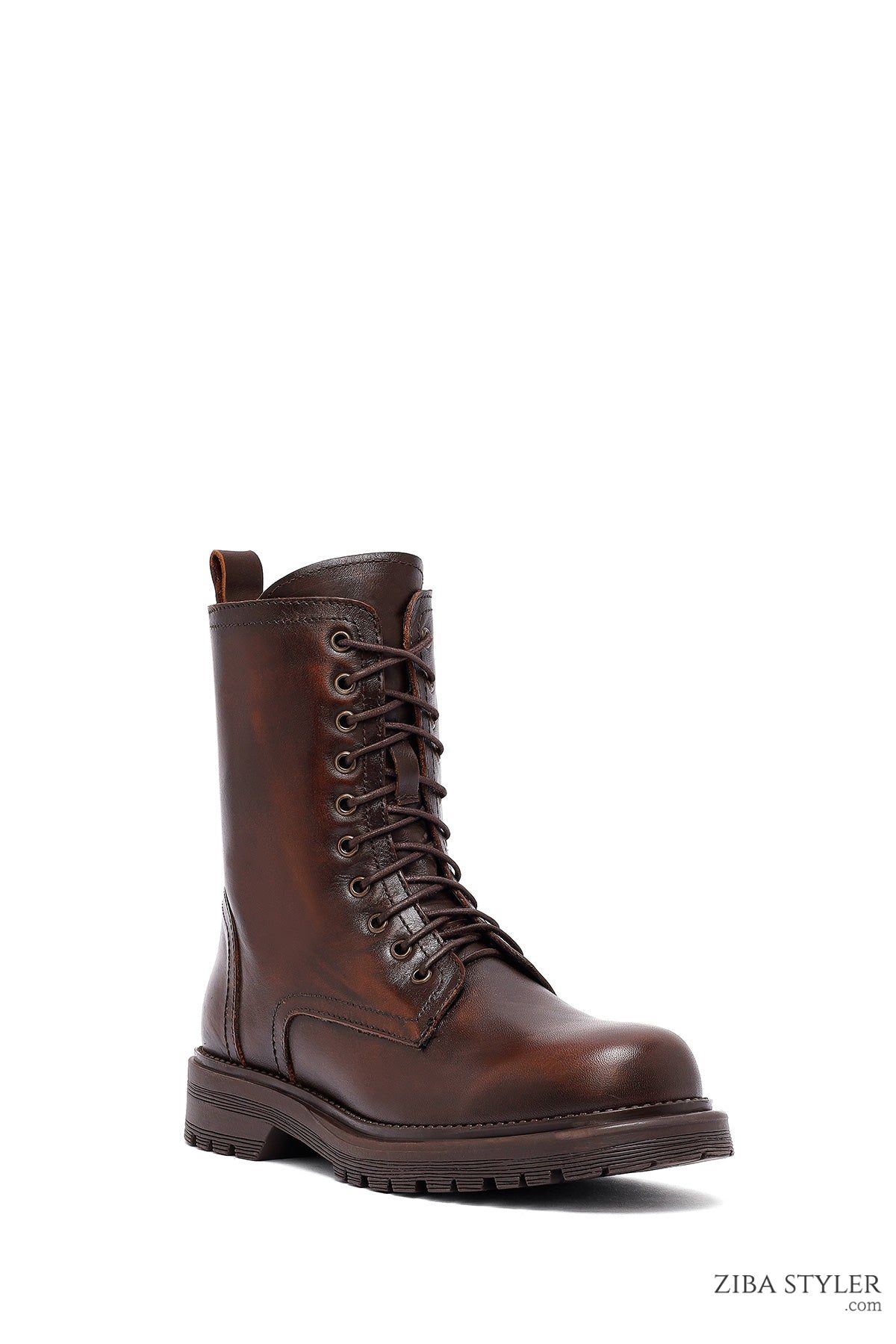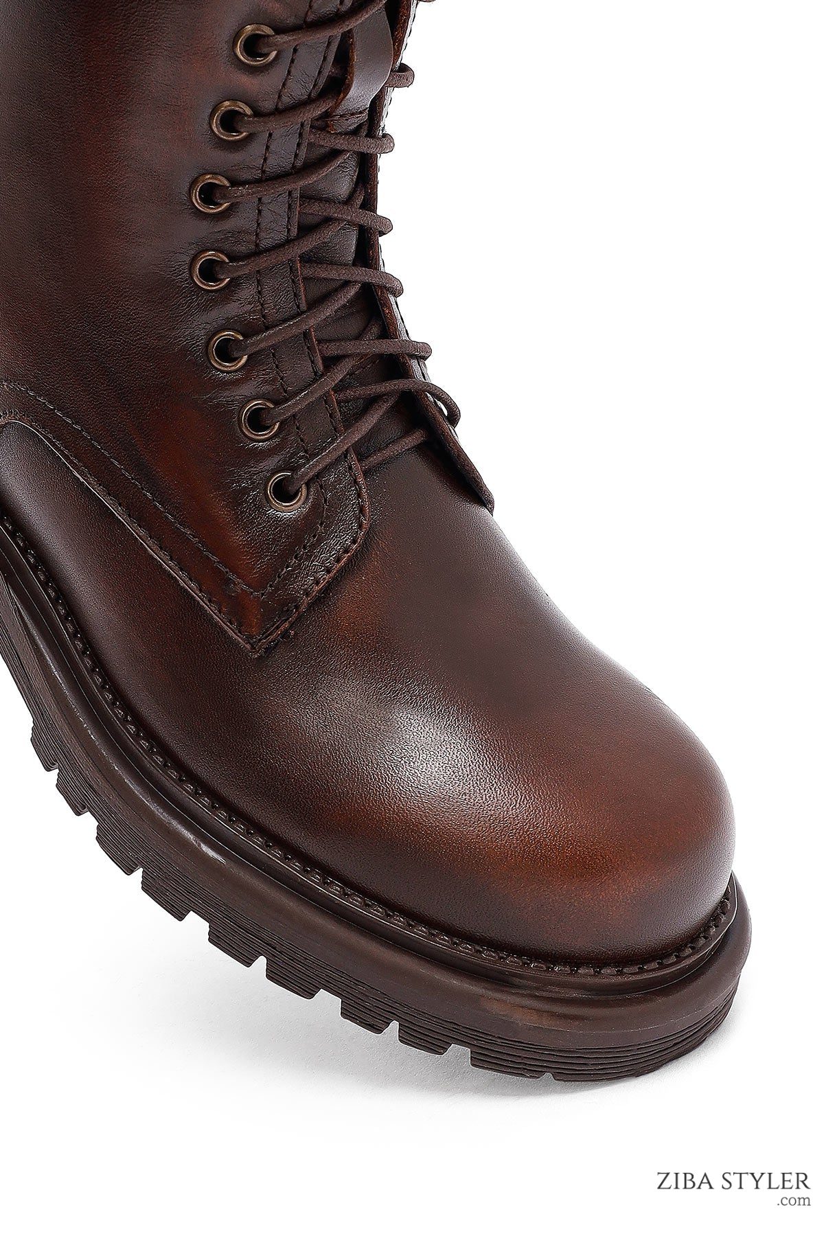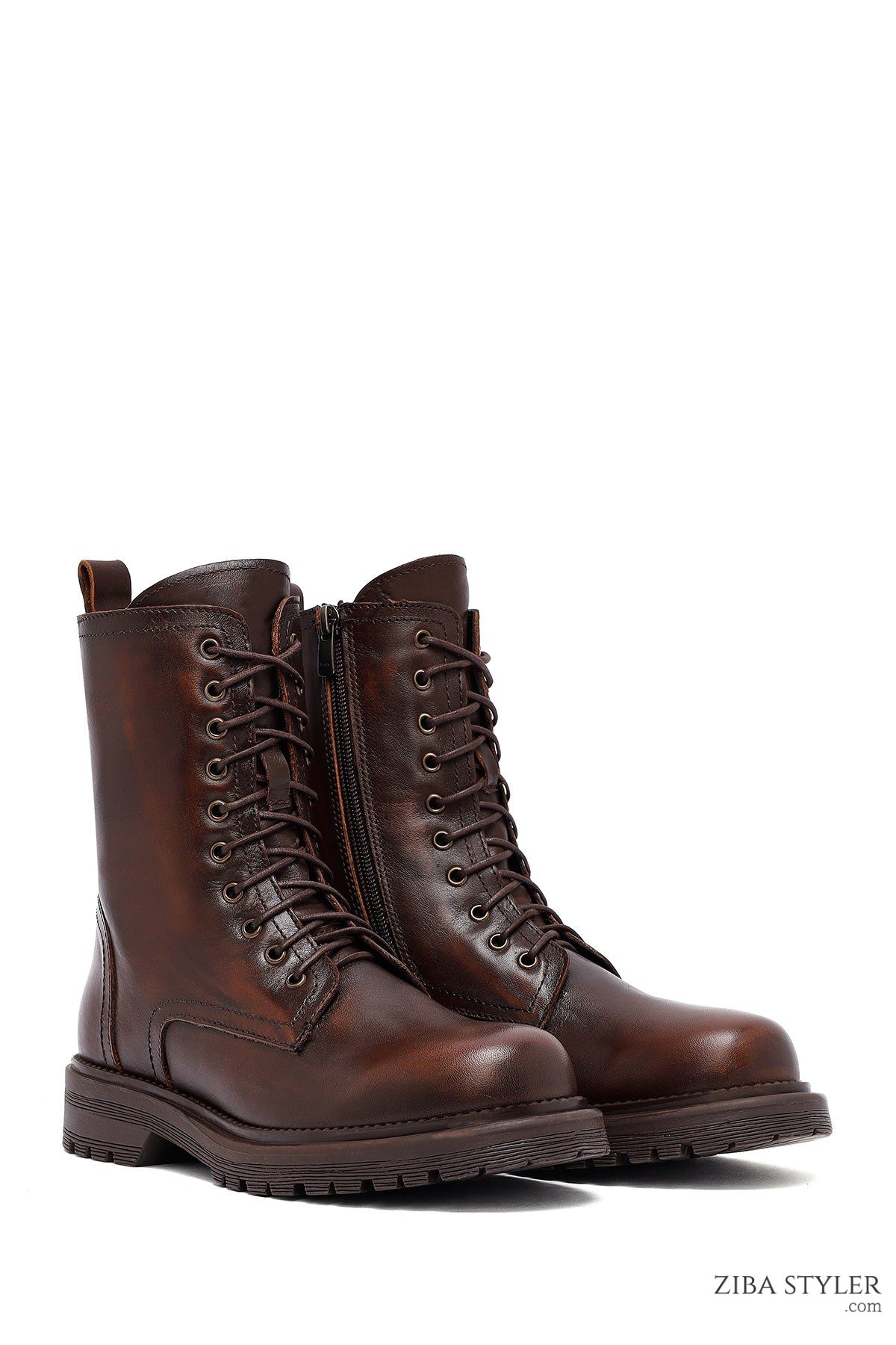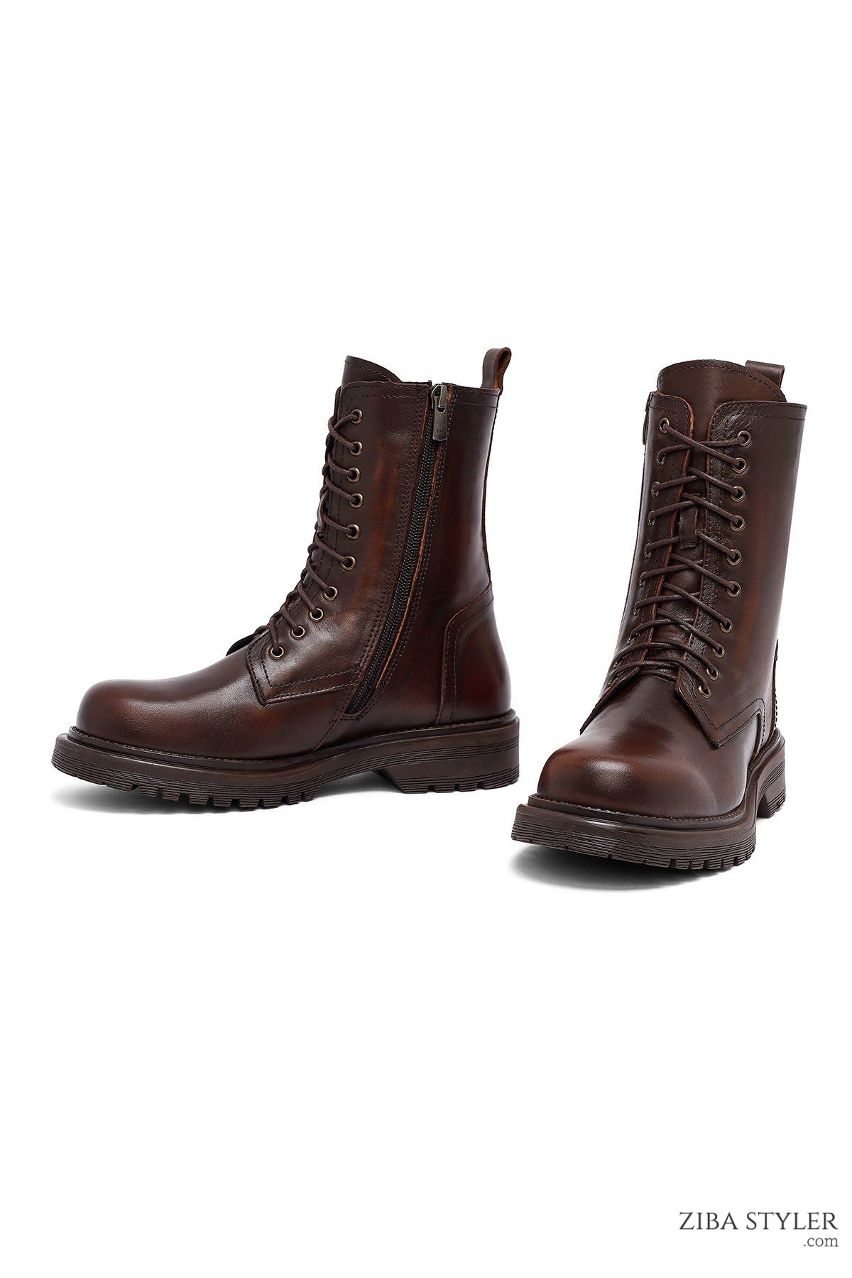 بوت زنانه چرمی قهوهای زیپدار دری مد