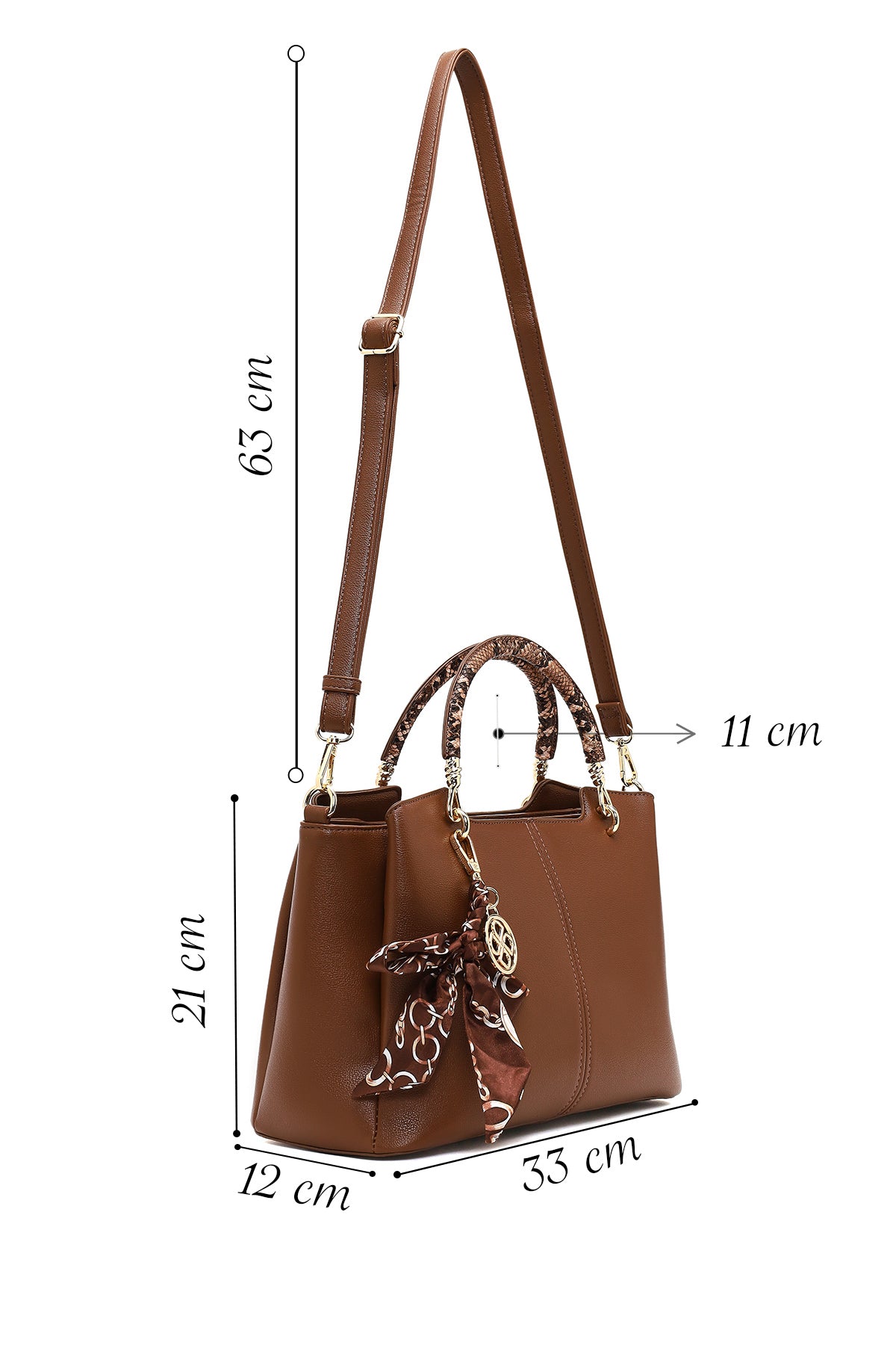 کیف زنانه قهوهای بلند با اکسسوری دری مد