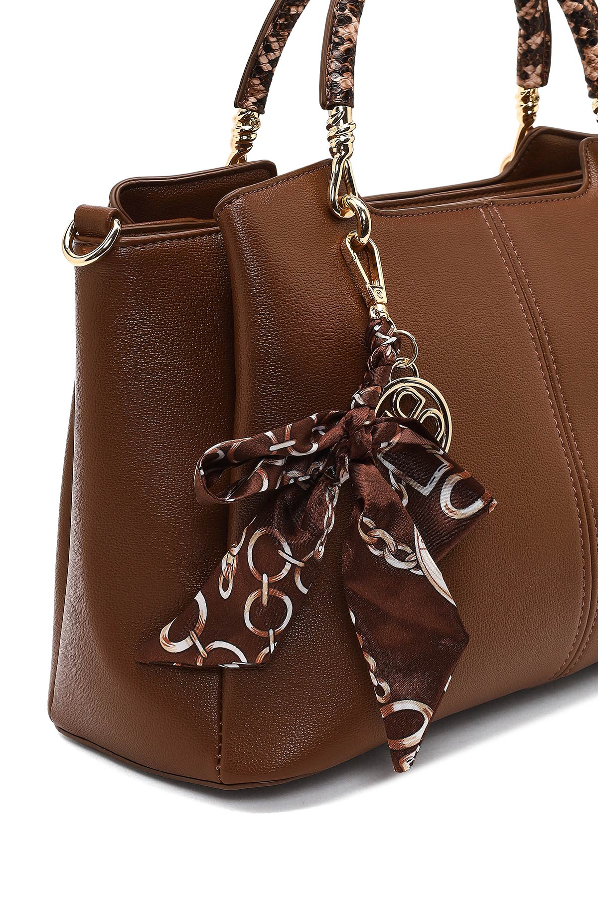 Kadın Kahverengi Uzun Askılı Aksesuarlı Kol Çantası