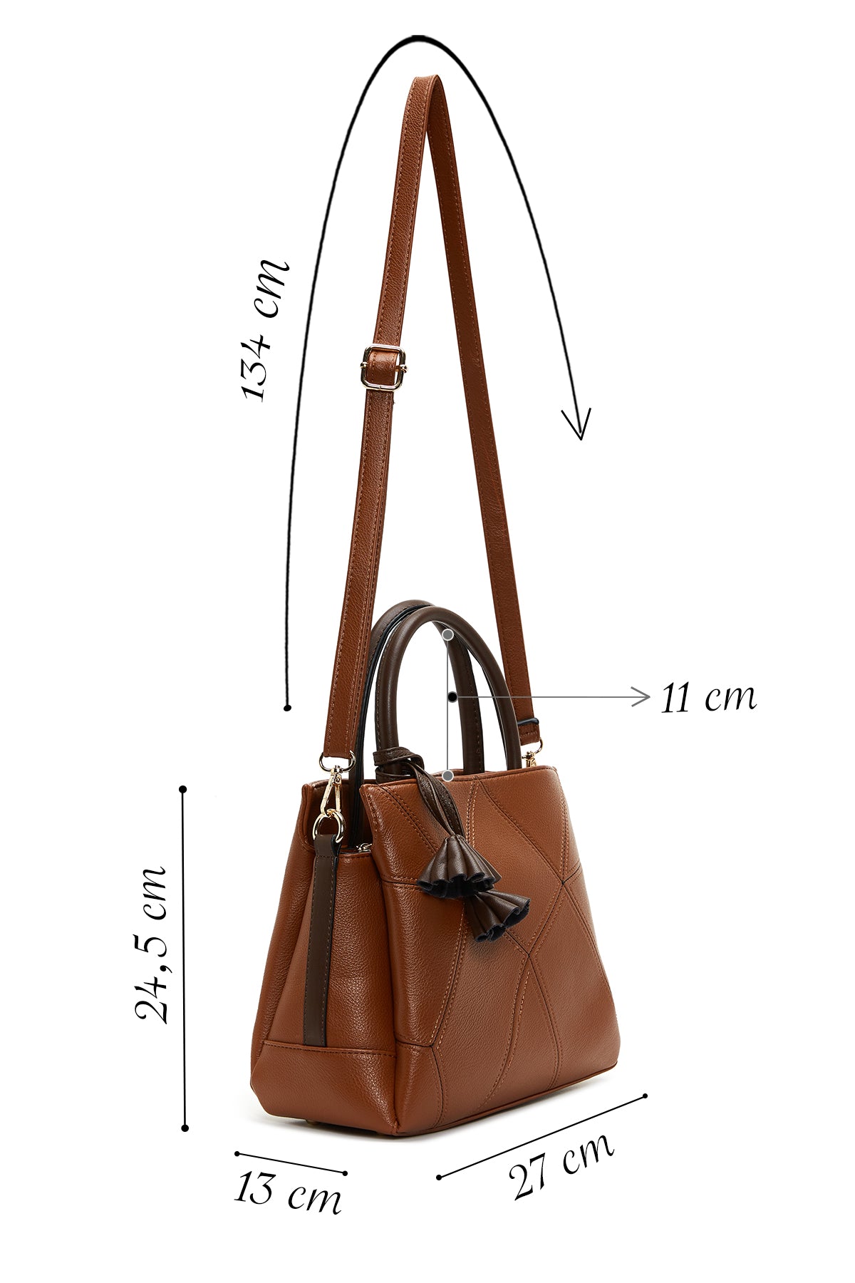 Kadın Taba Uzun Askılı Aksesuar Detaylı Kol Çantası