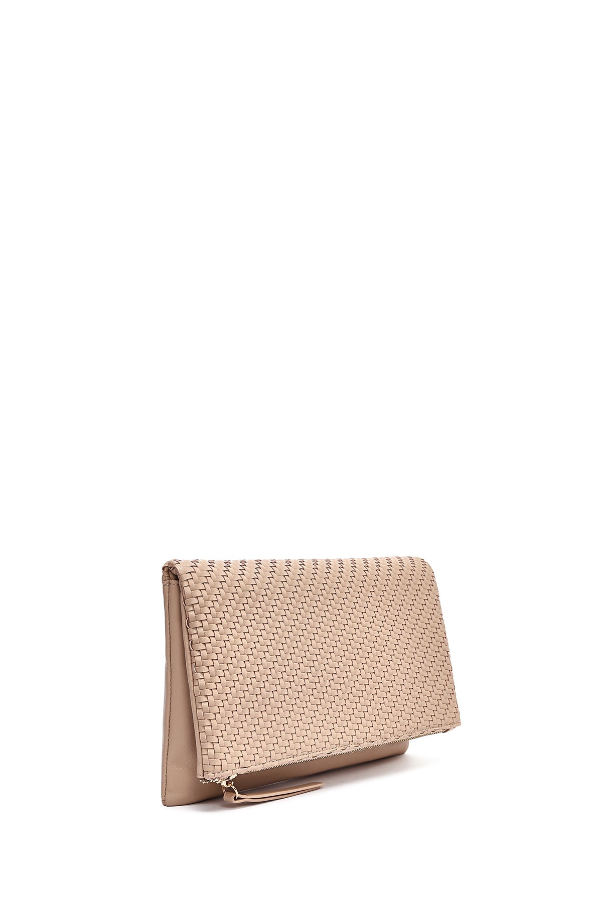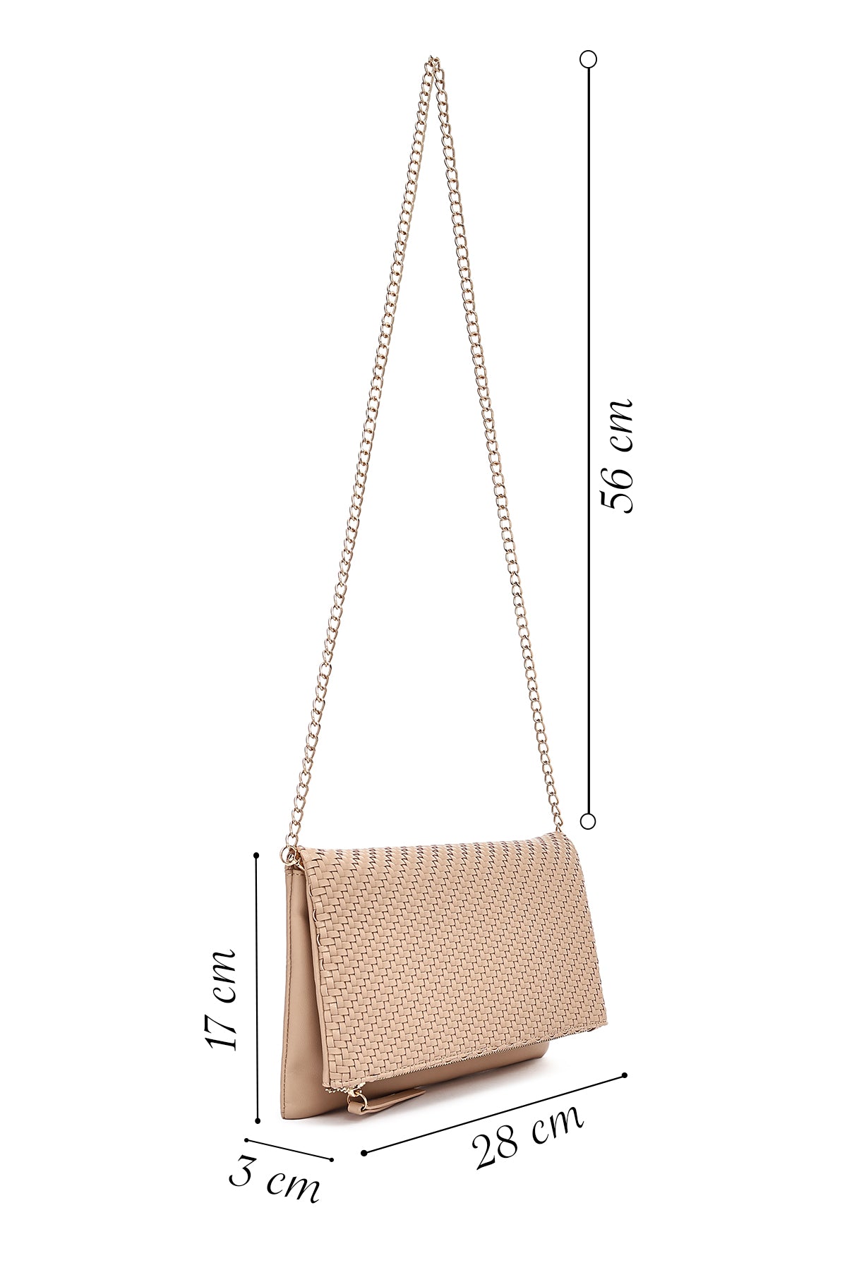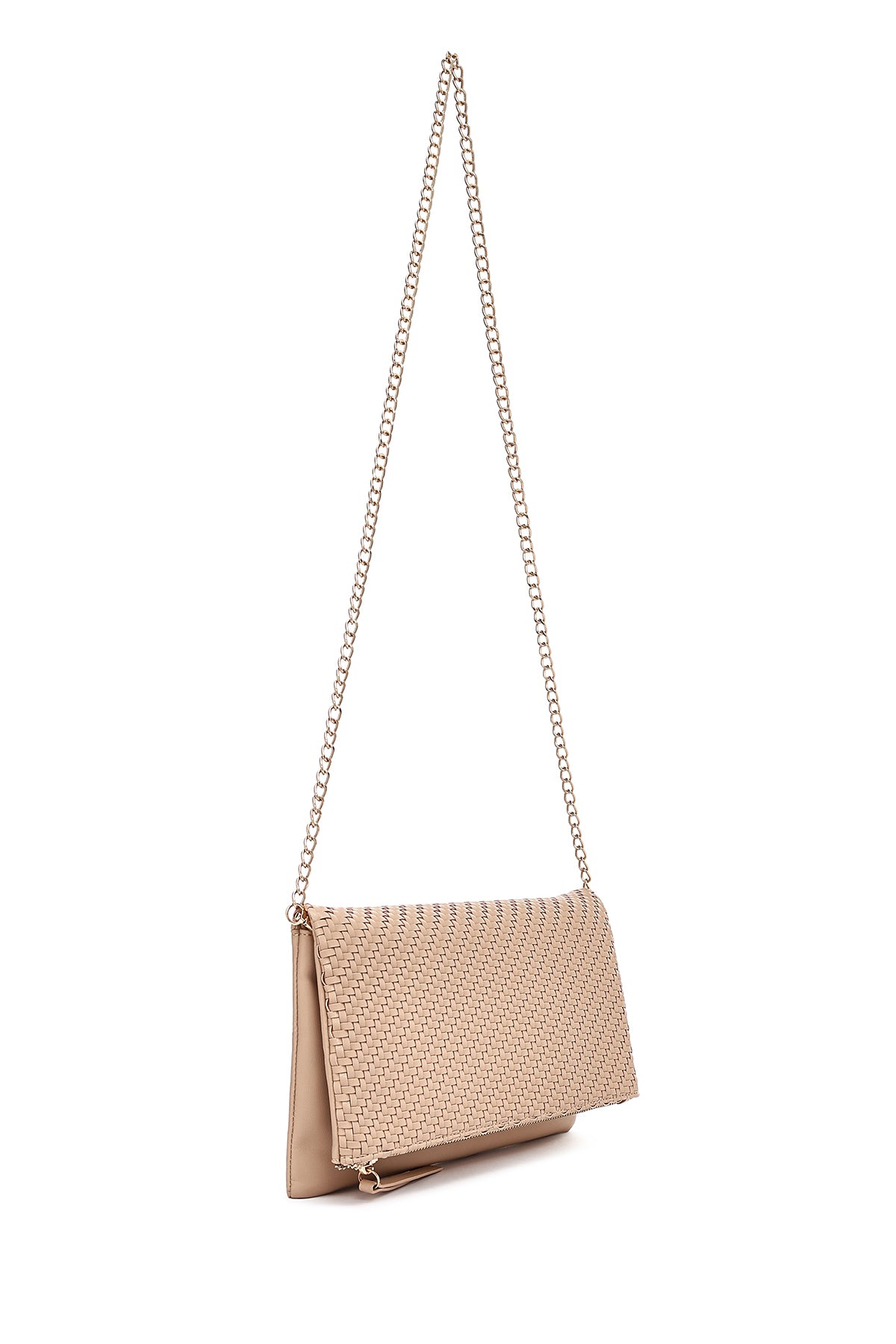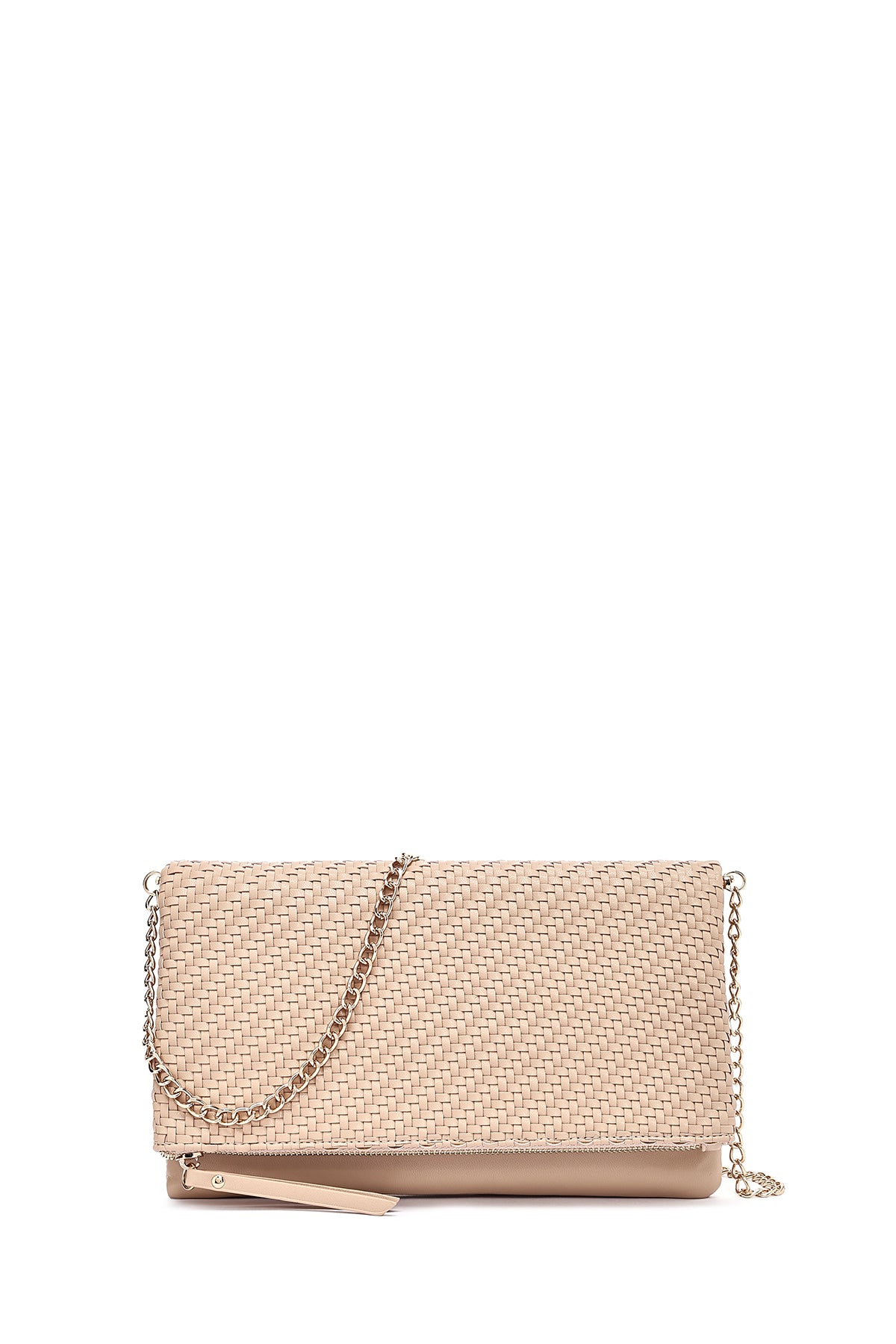 Kadın Bej Uzun Zincir Askılı Örgülü Portföy Çanta