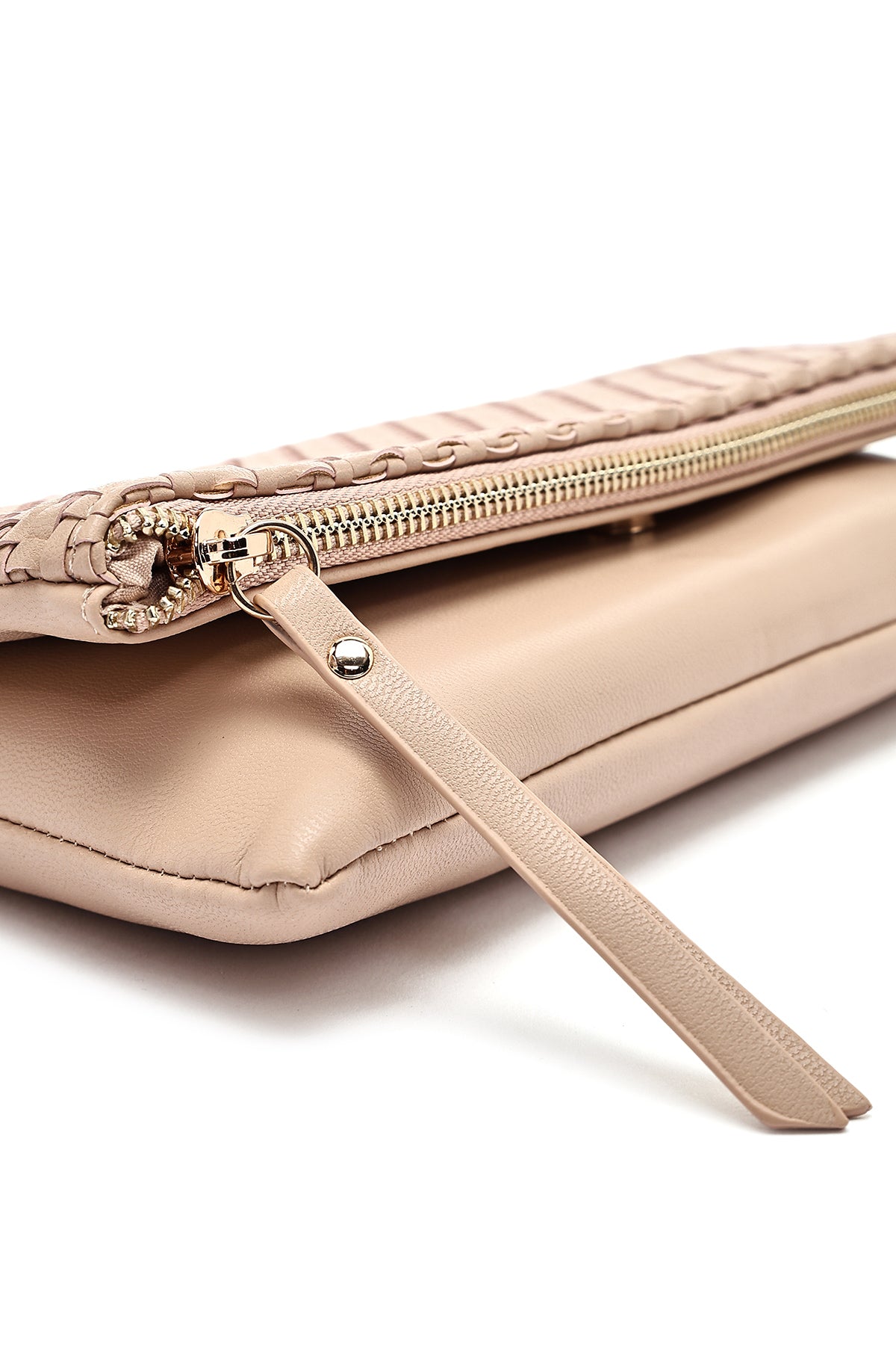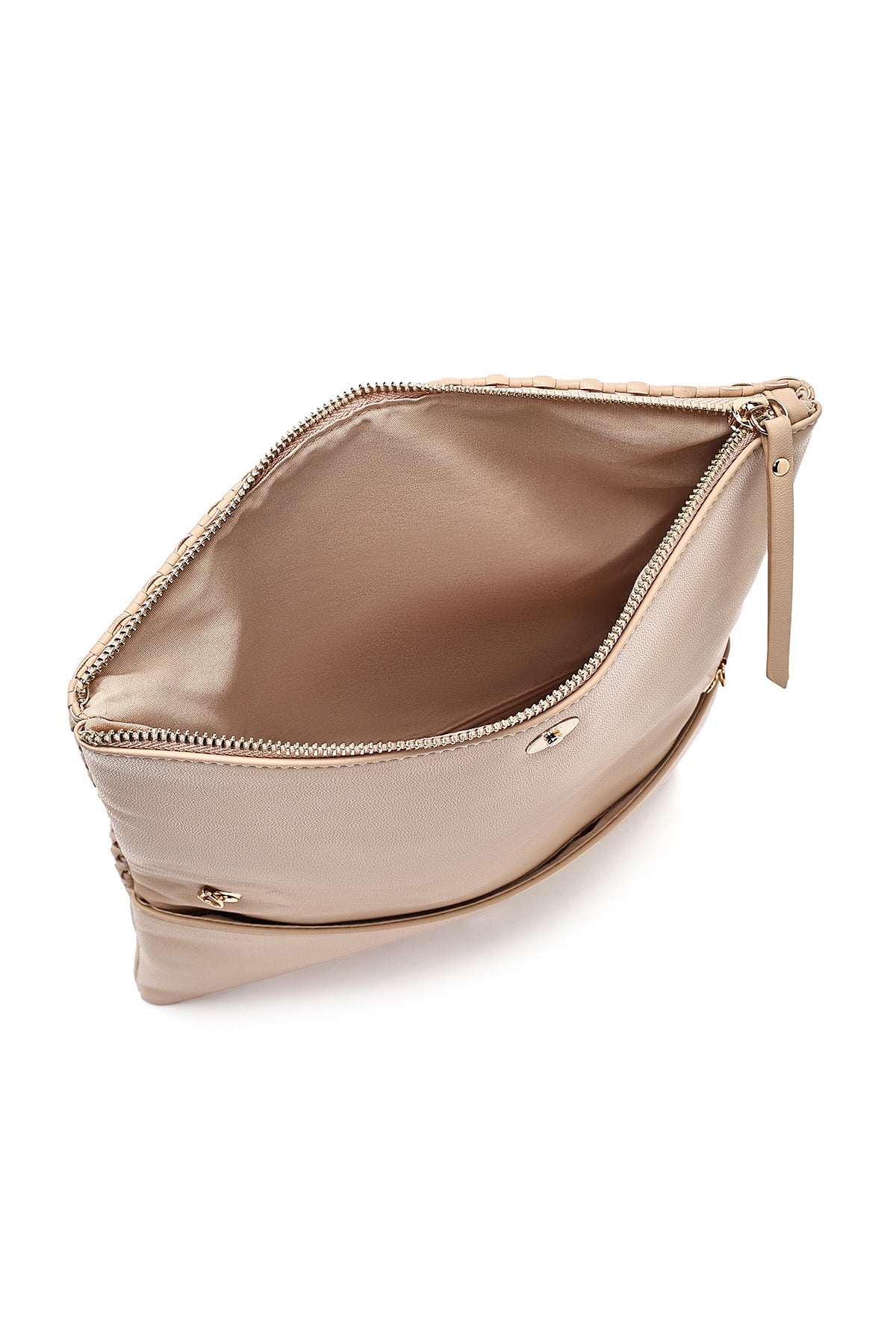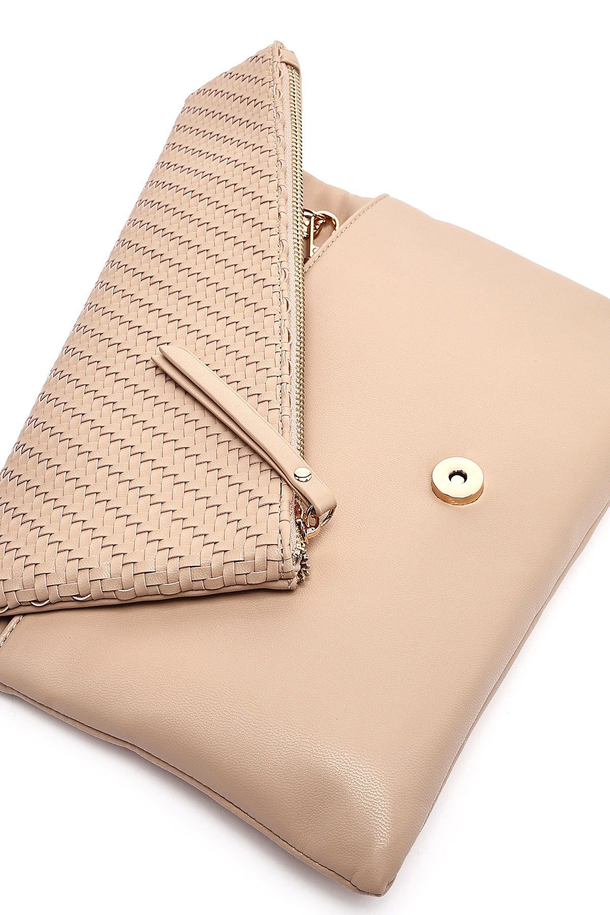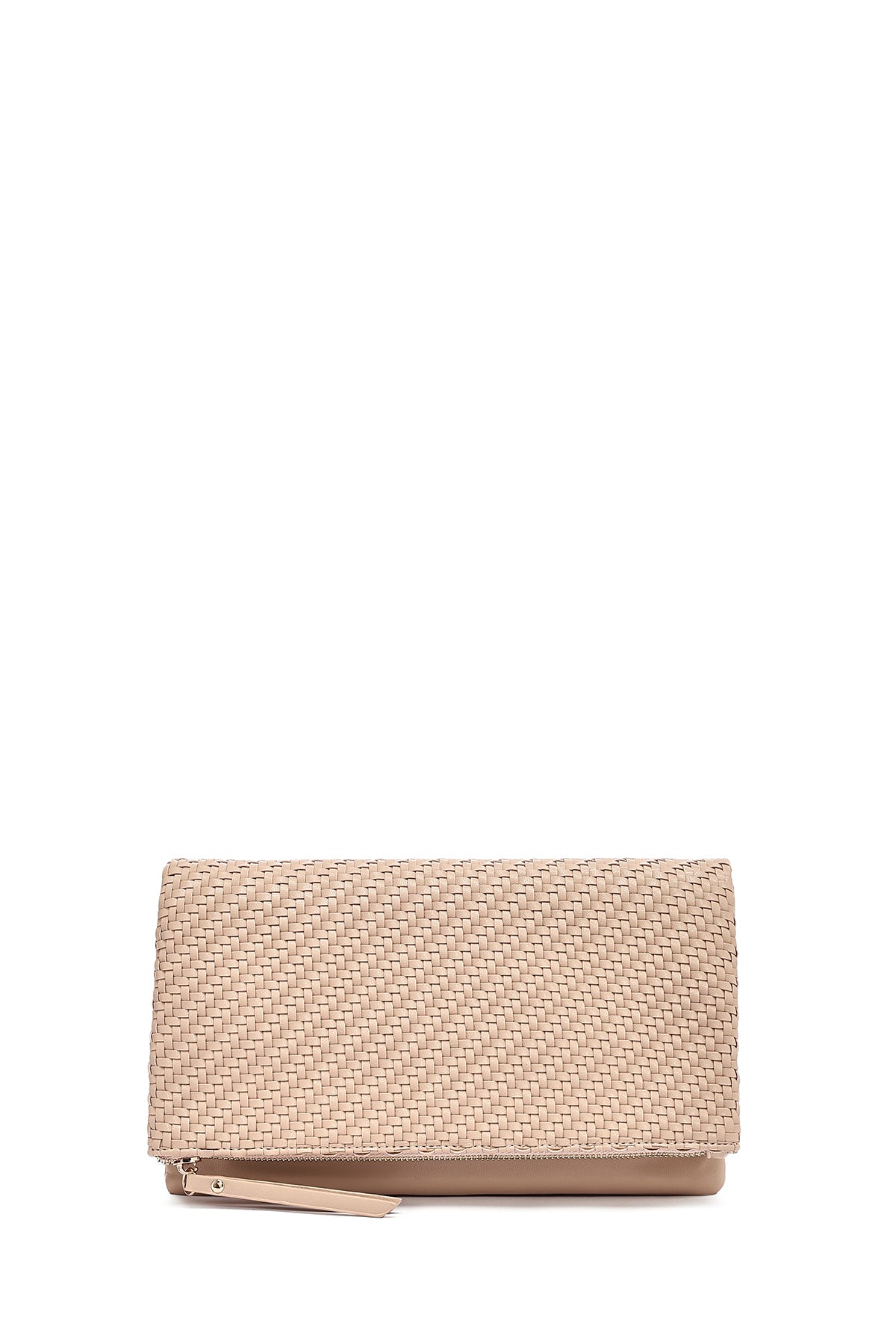 Kadın Bej Uzun Zincir Askılı Örgülü Portföy Çanta