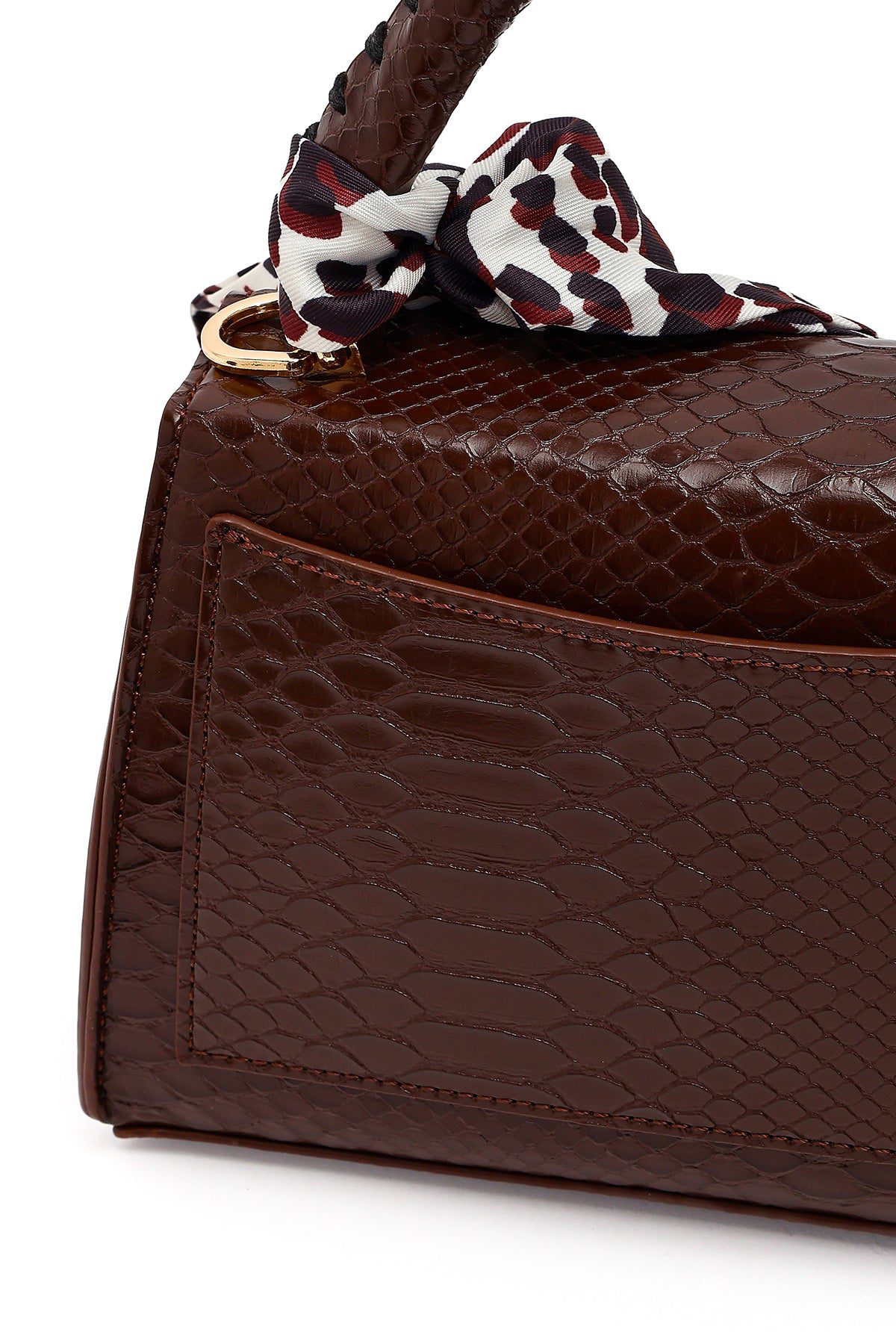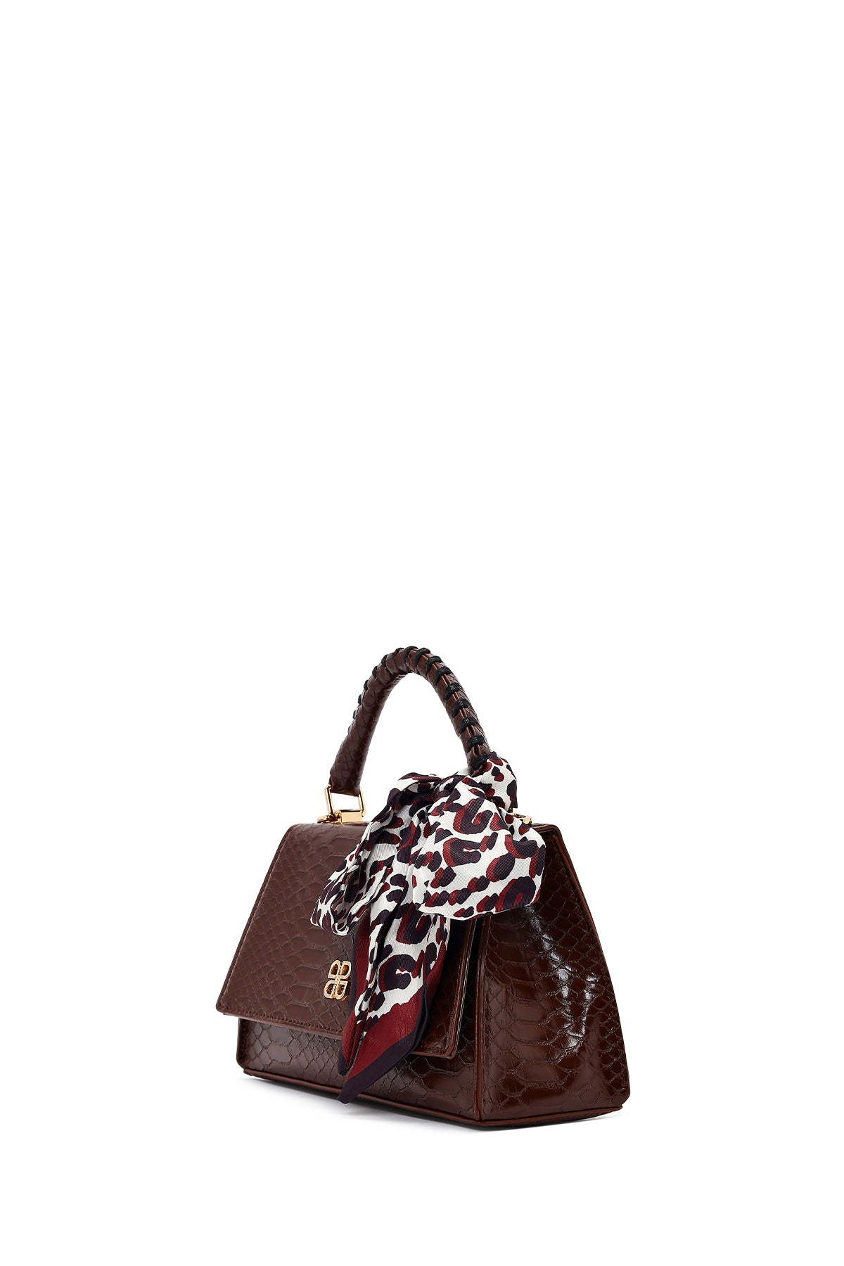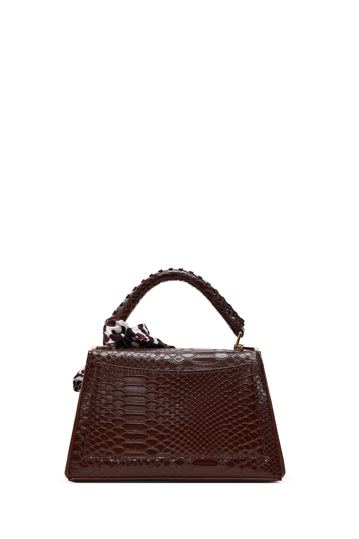 Kadın Kahverengi Uzun Askılı Kroko Desenli Klasik Kol Çantası