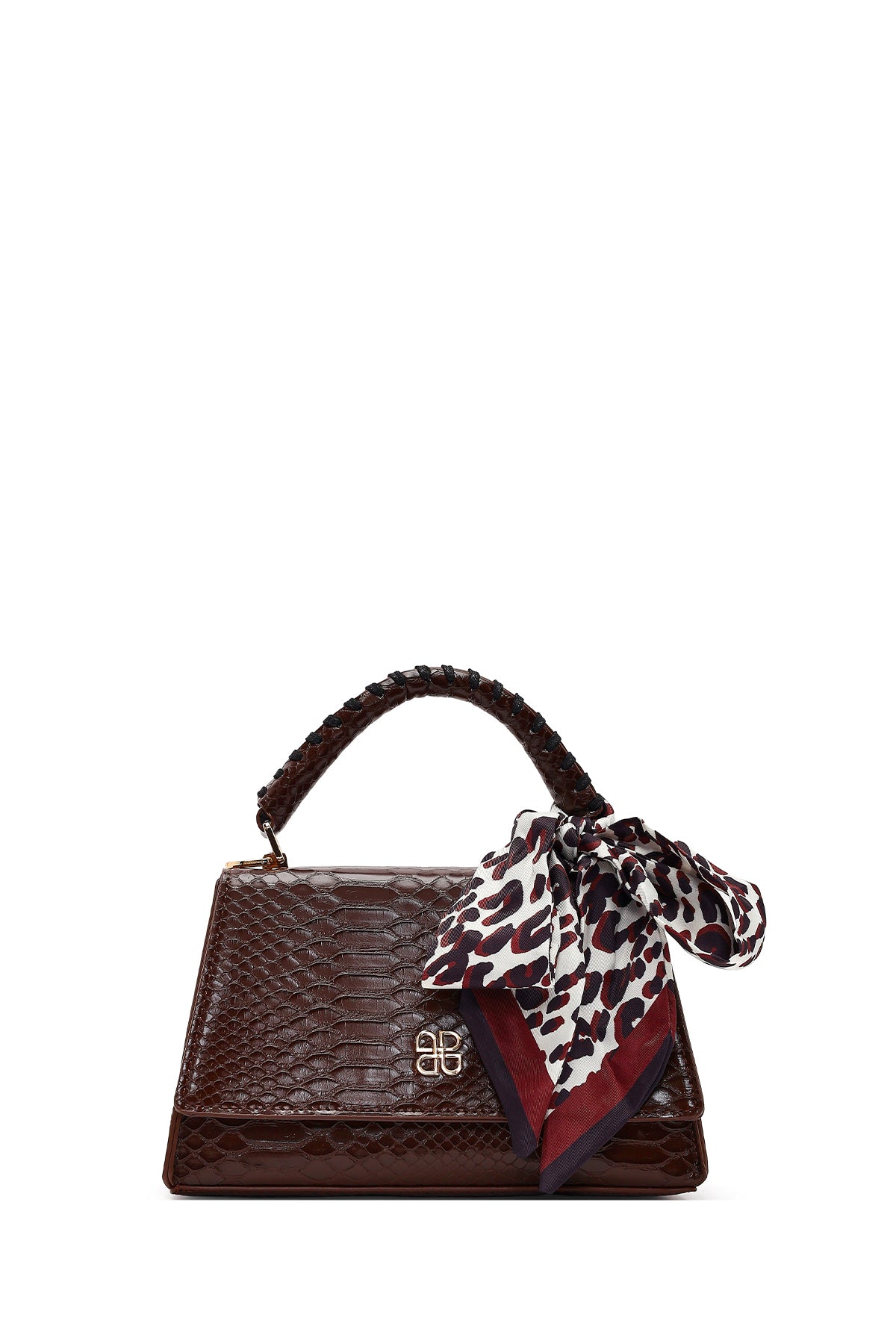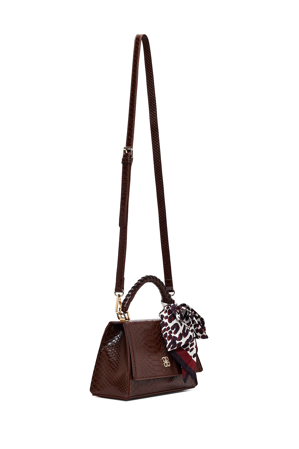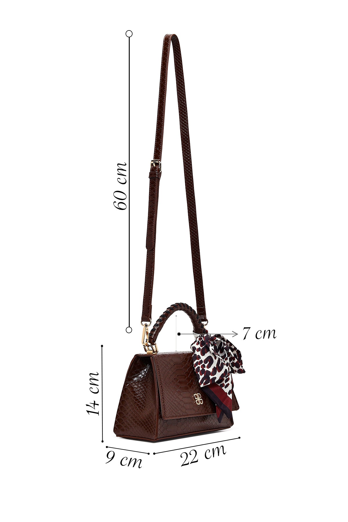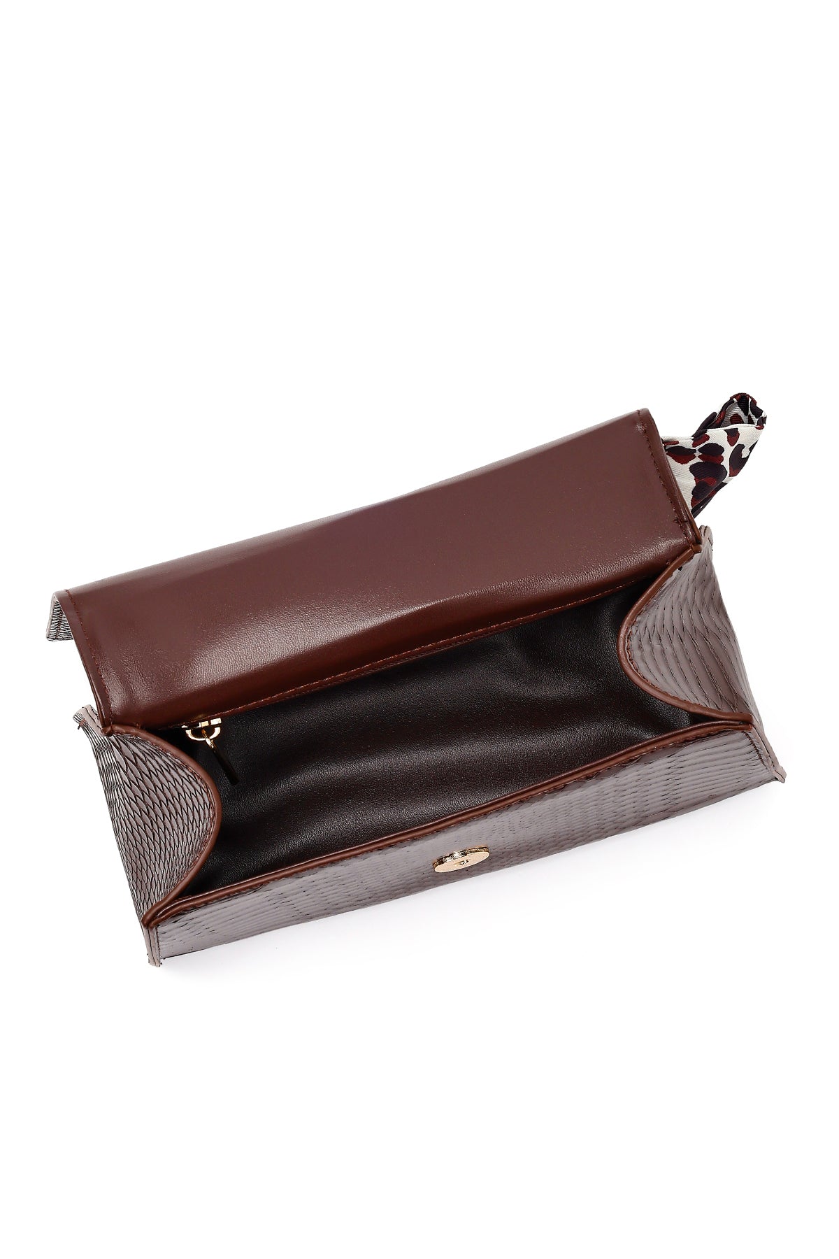 Kadın Kahverengi Uzun Askılı Kroko Desenli Klasik Kol Çantası