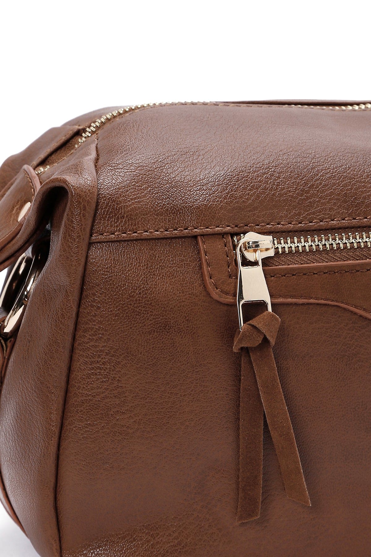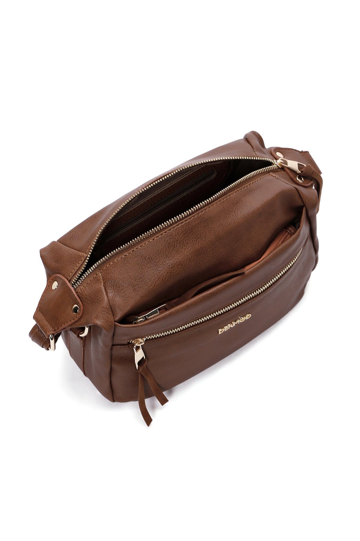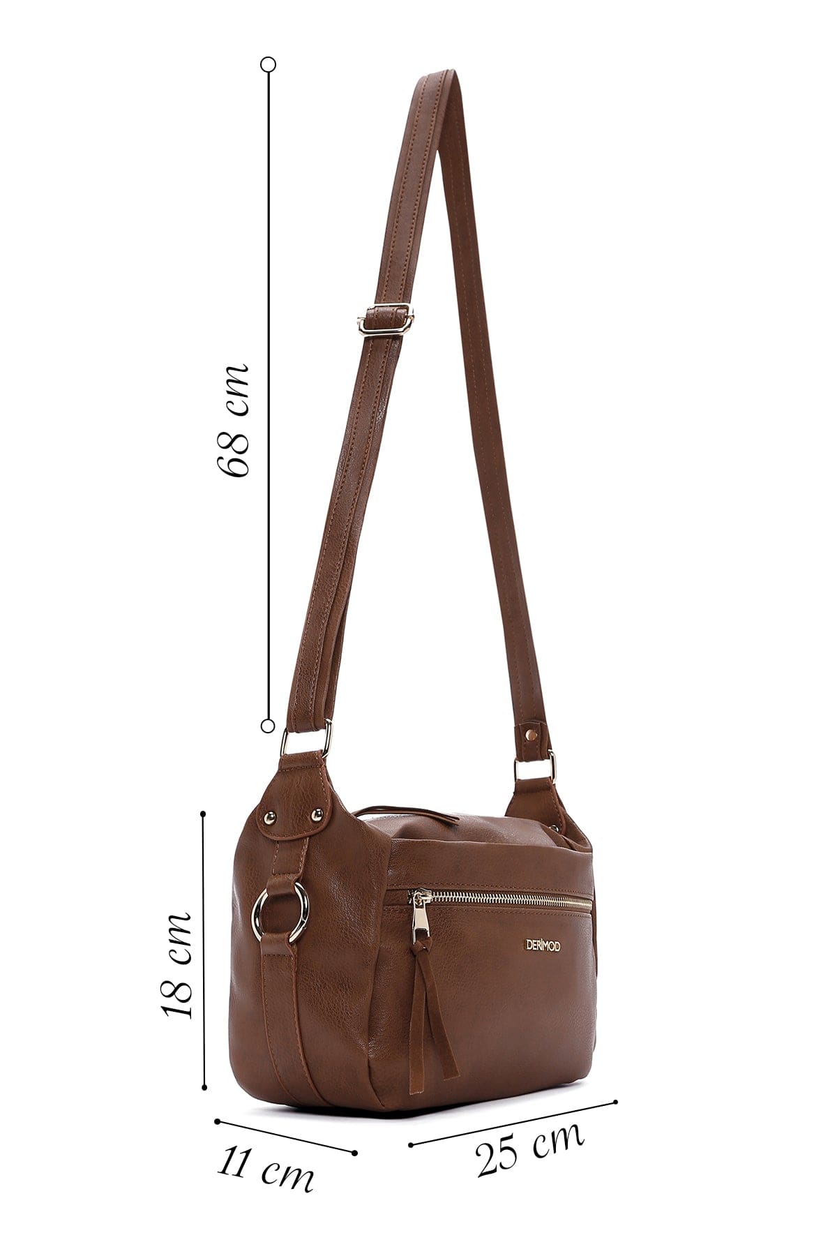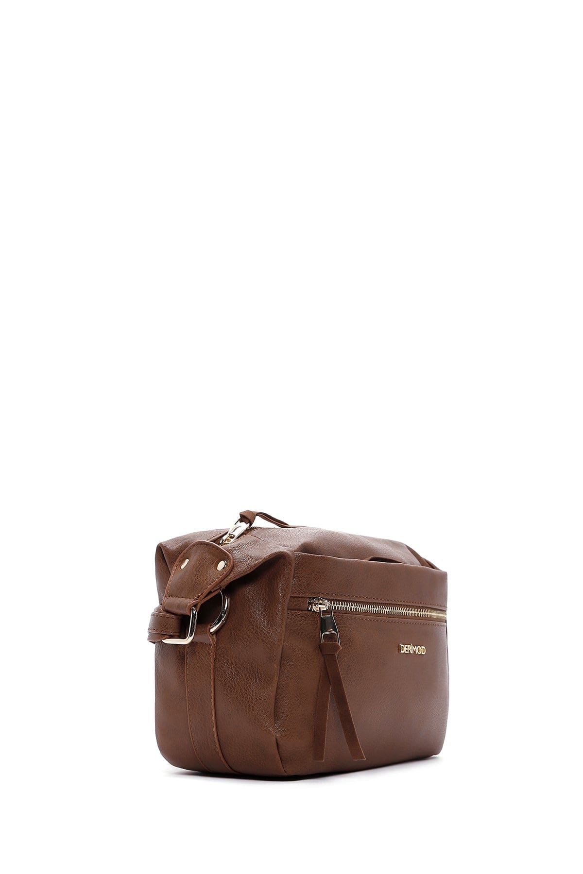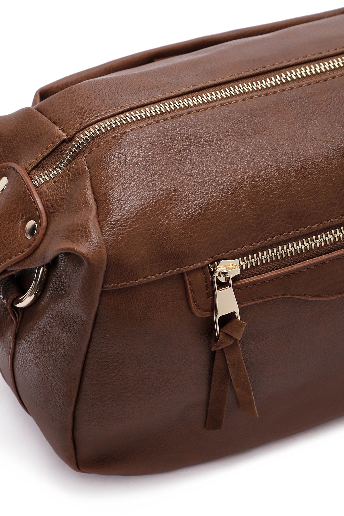 کیف کراس بادی زنانه چرم قهوهای بند بلند دری مد