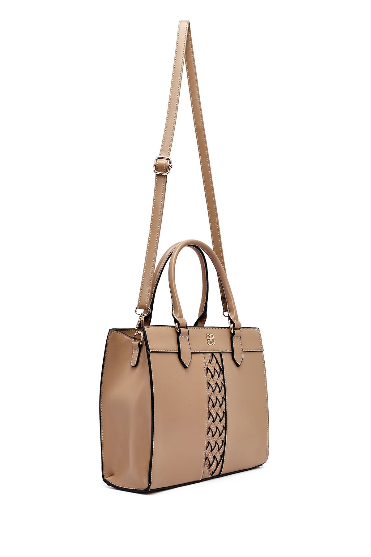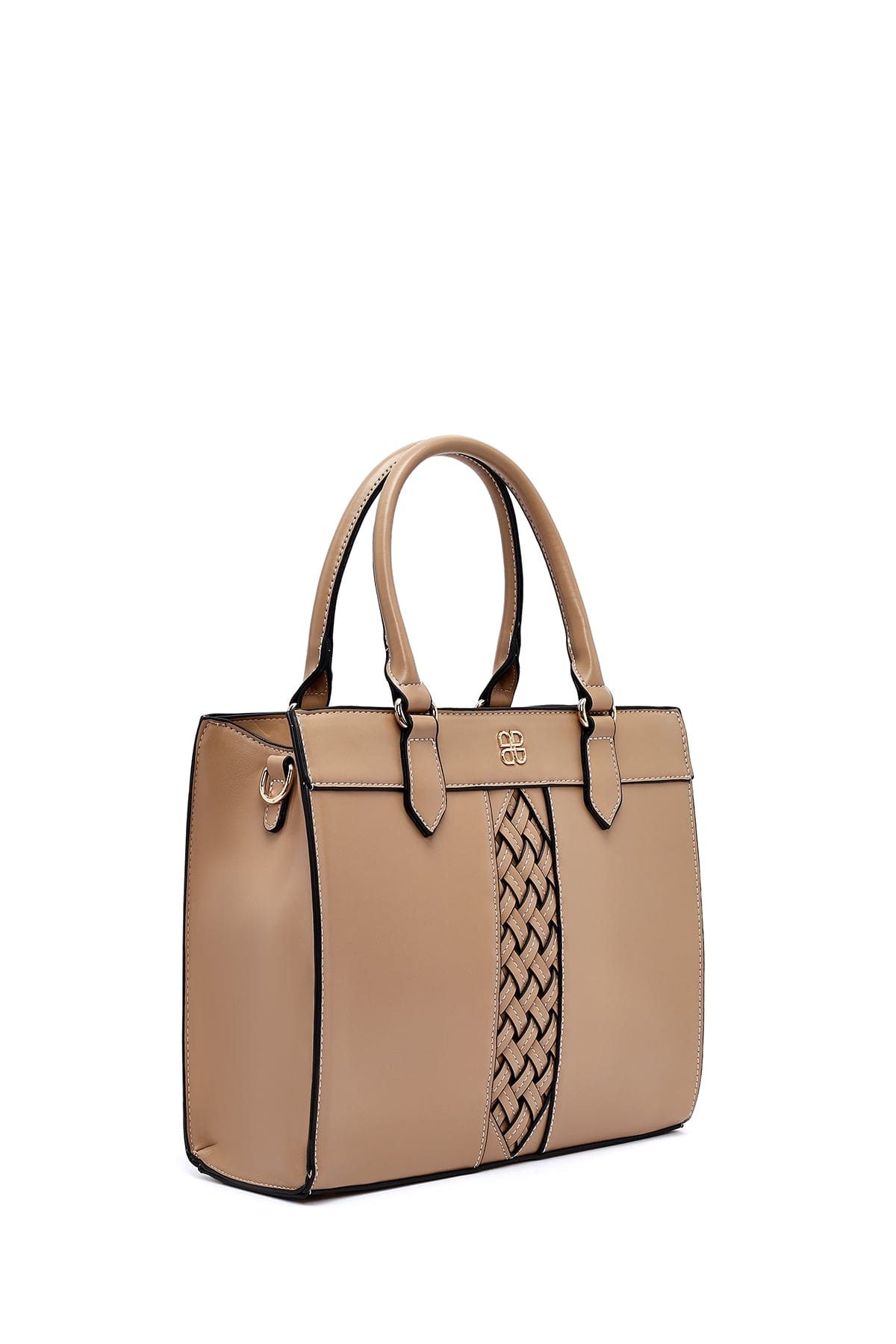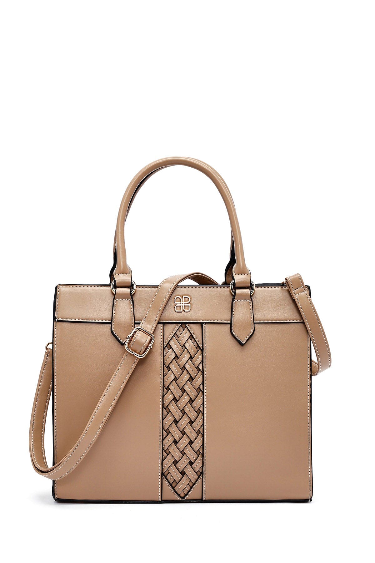 Kadın Kahverengi Uzun Askılı Desenli Kol Çantası