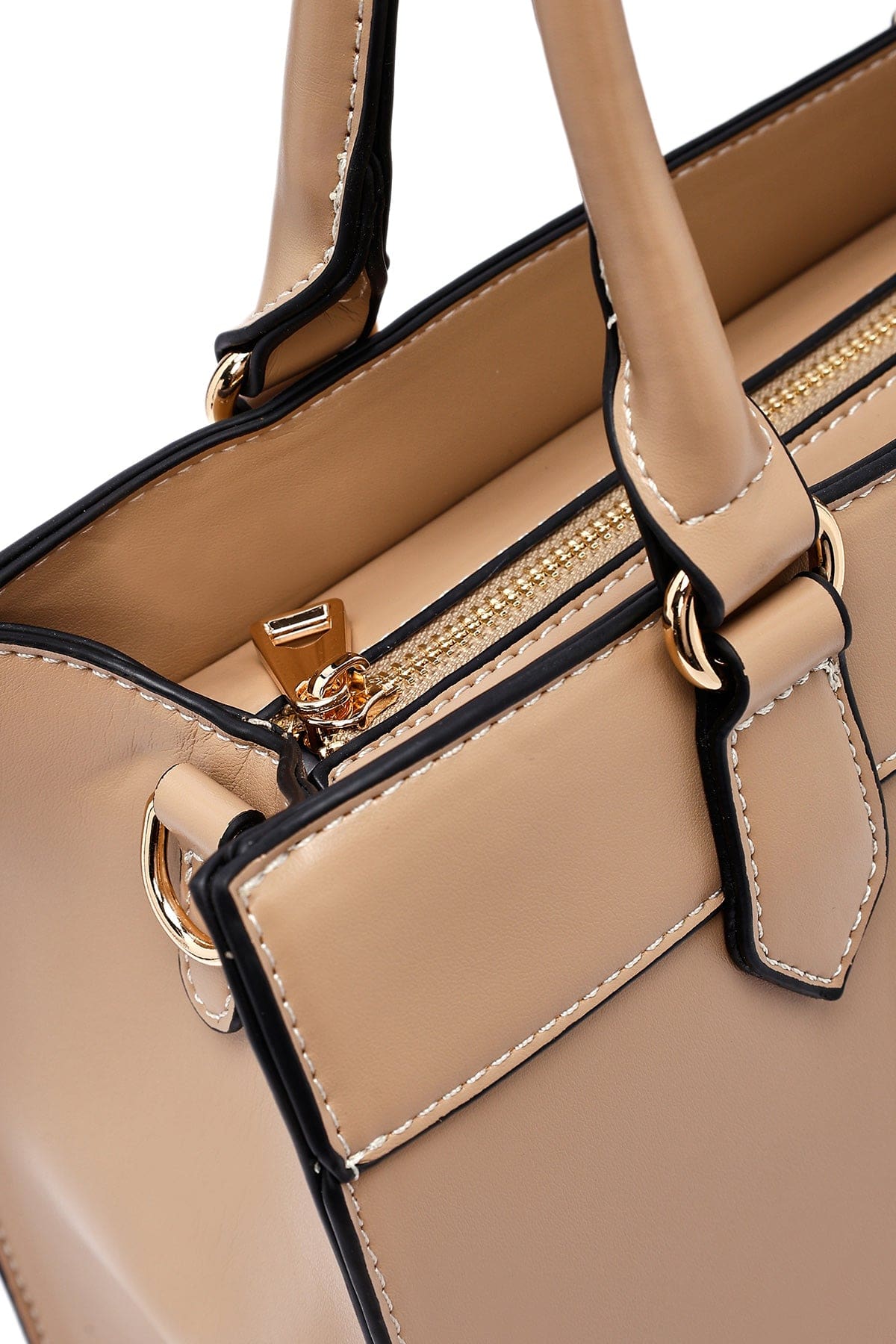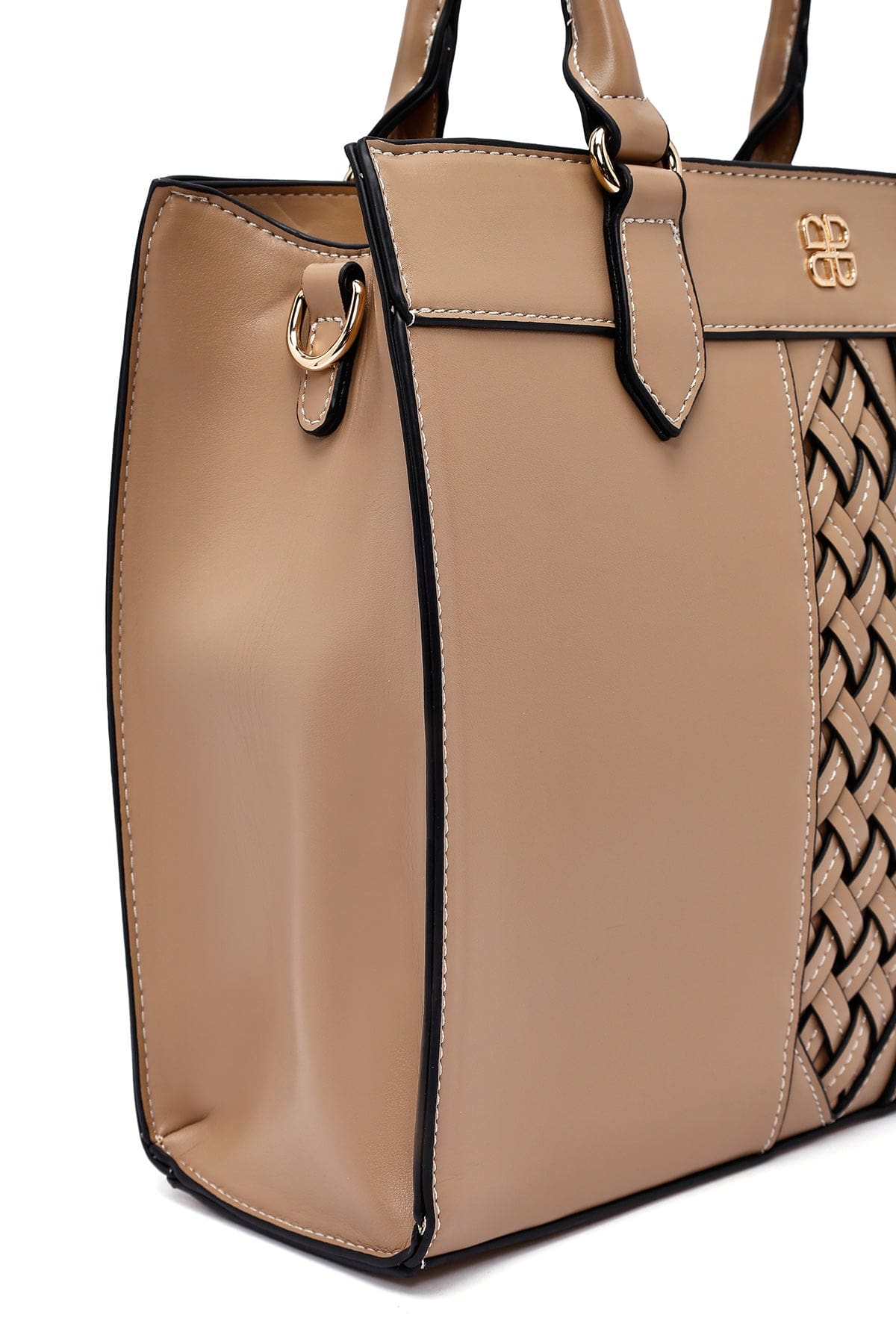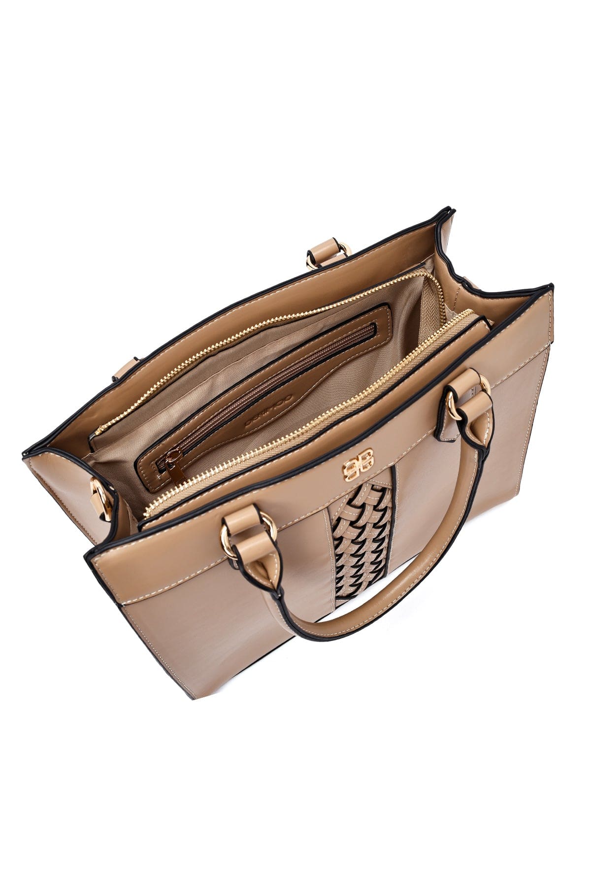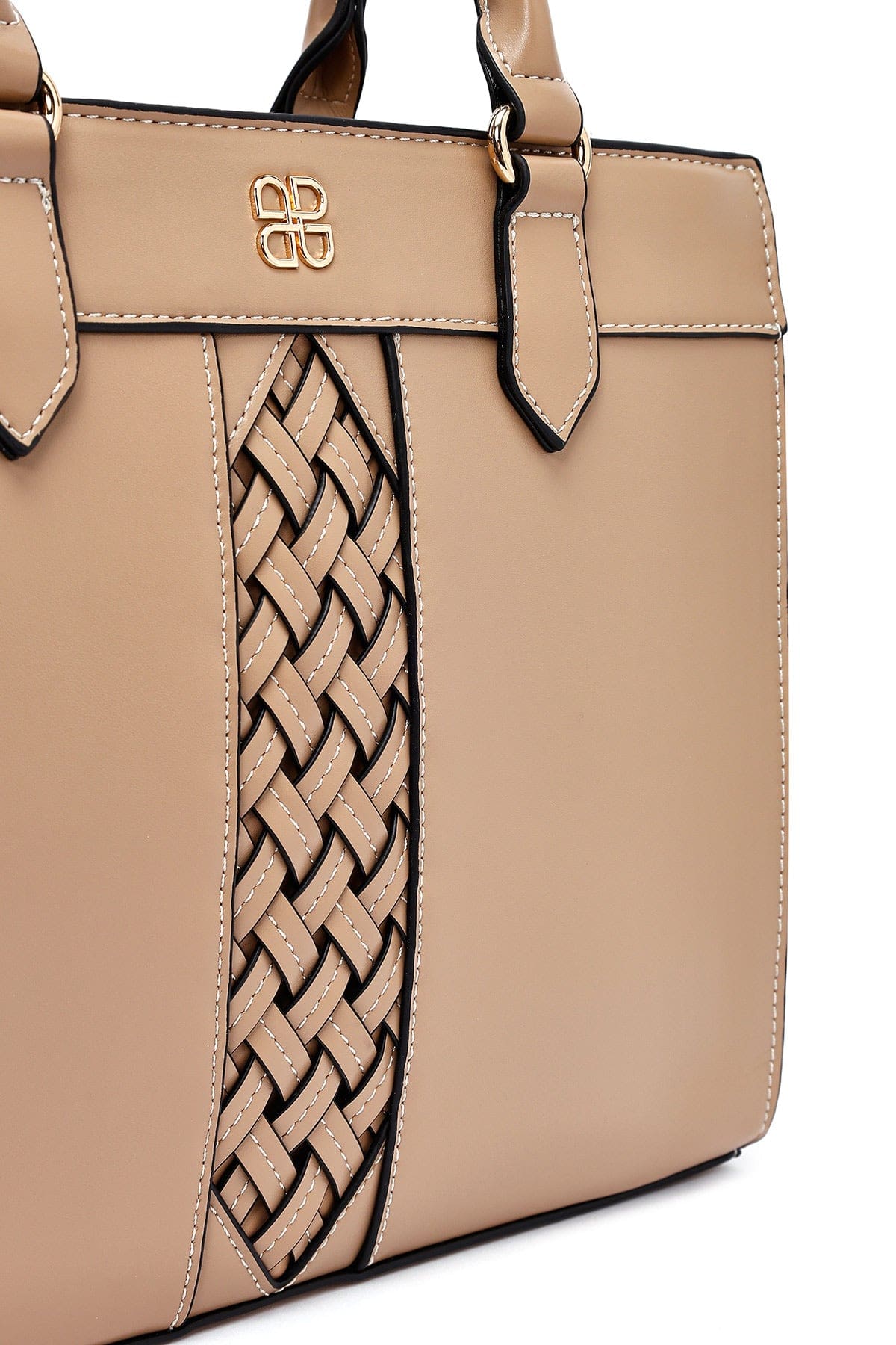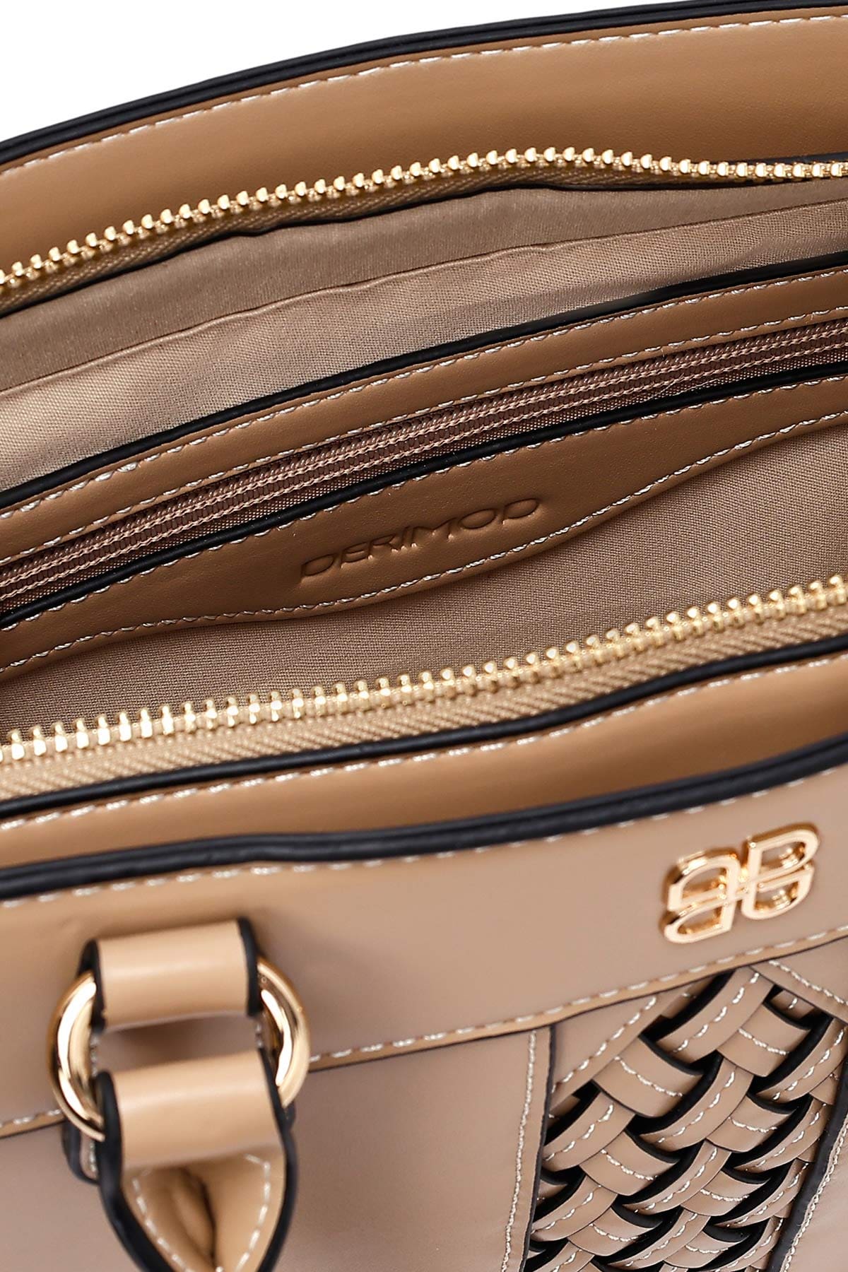 کیف زنانه دستی بند بلند قهوهای طرحدار دری مد