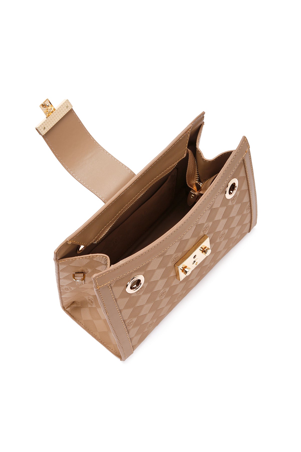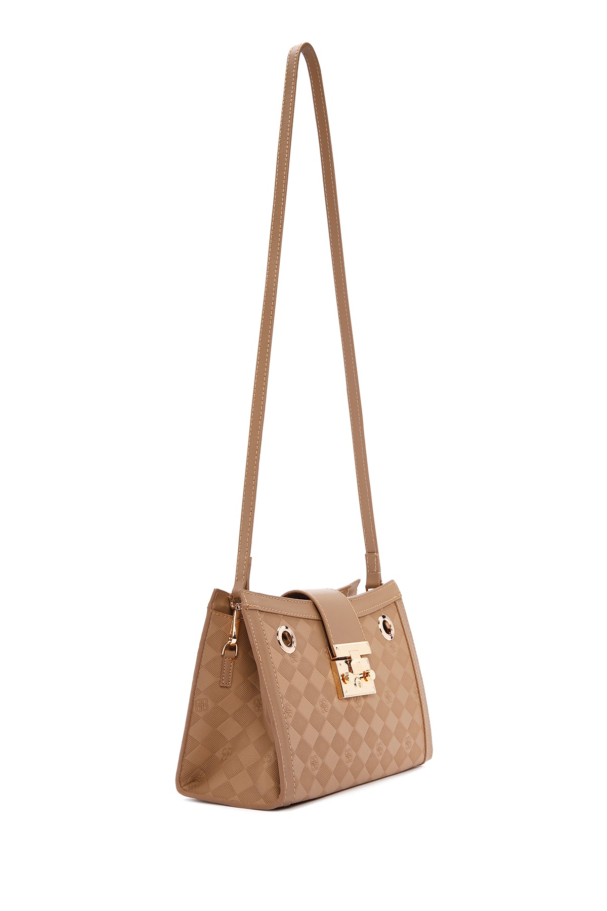 کیف زنانه دوشی قهوهای بند بلند چاپدار دری مد