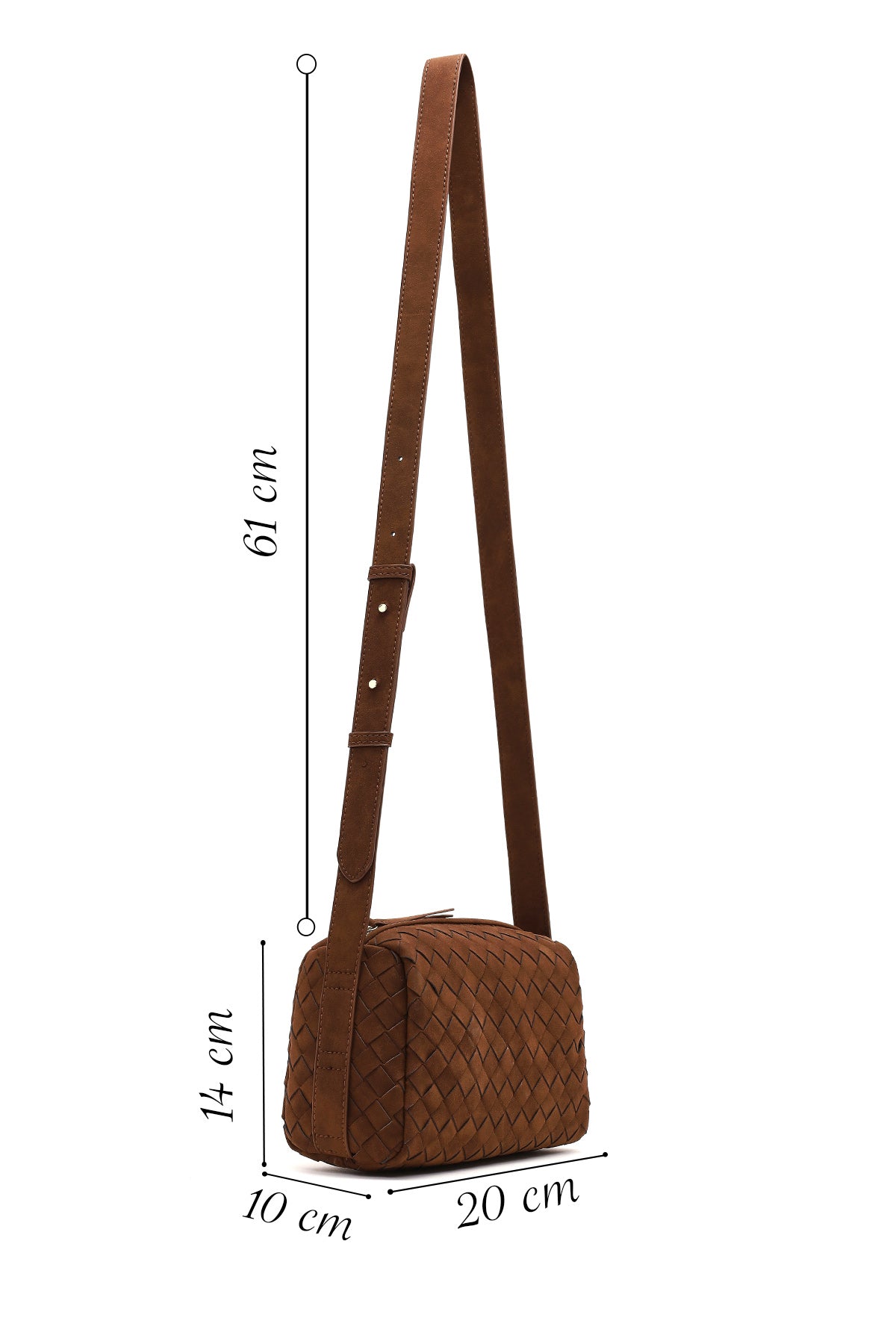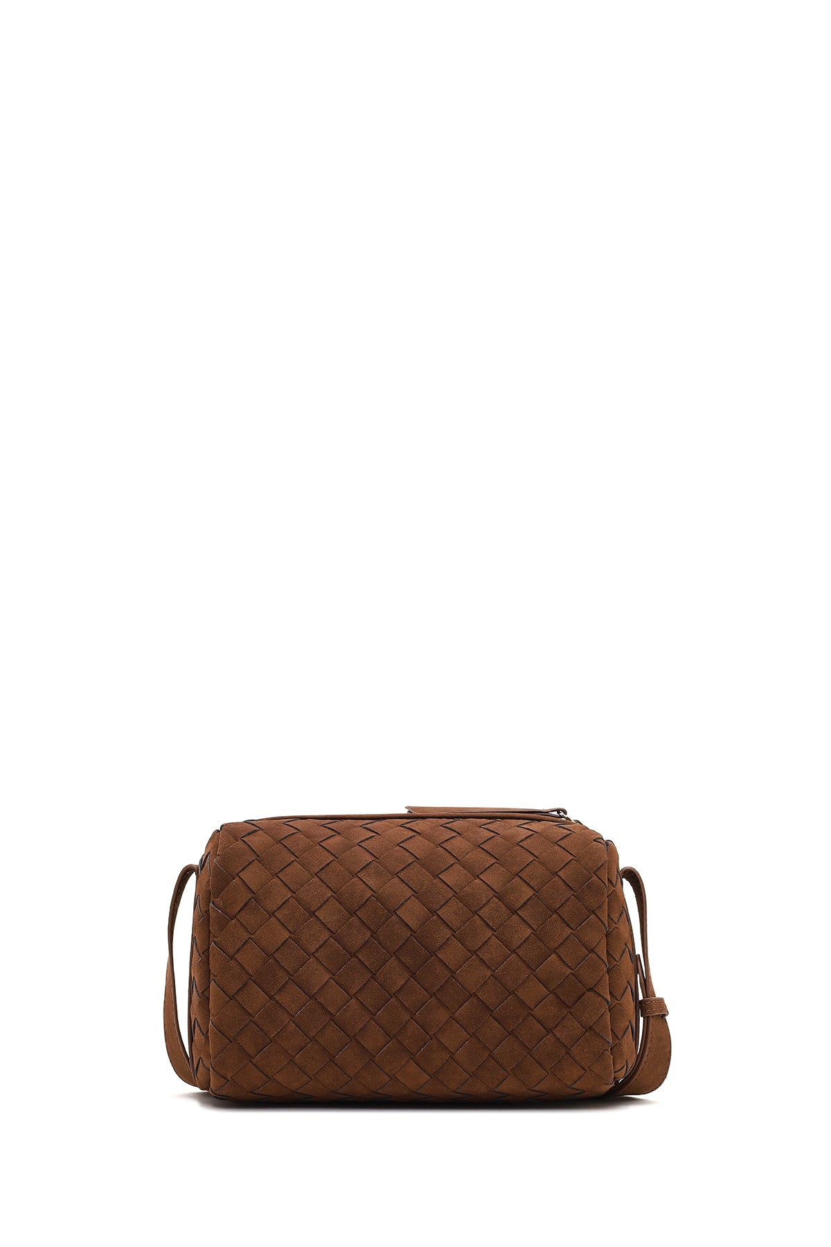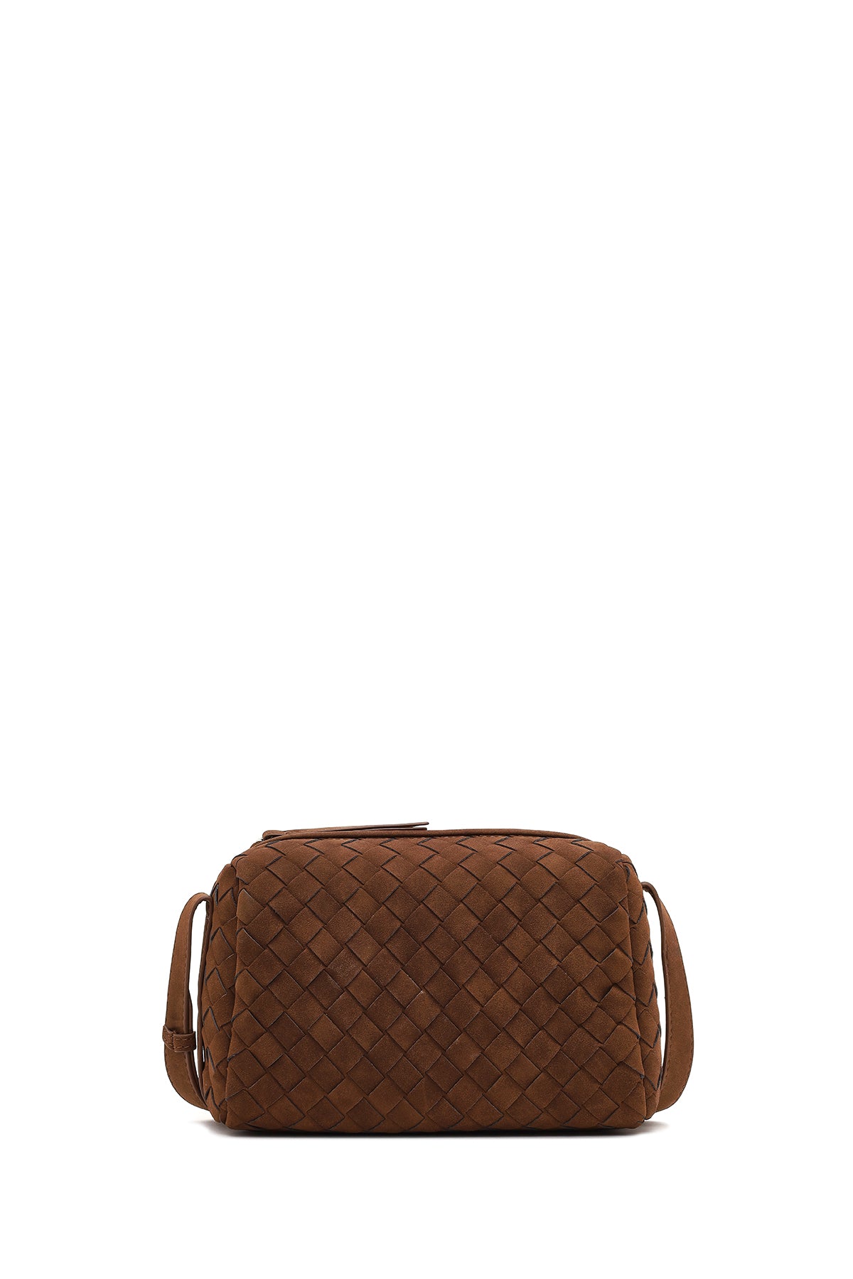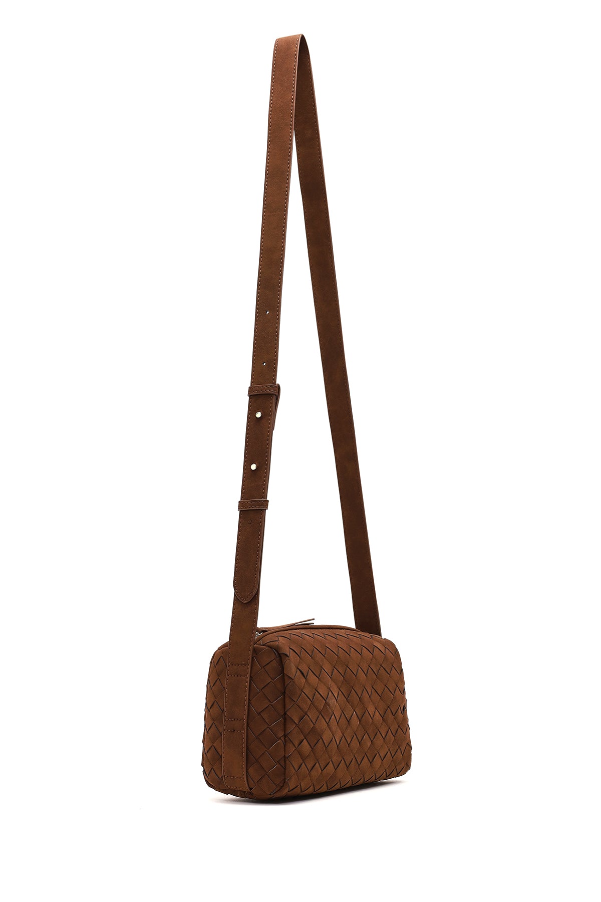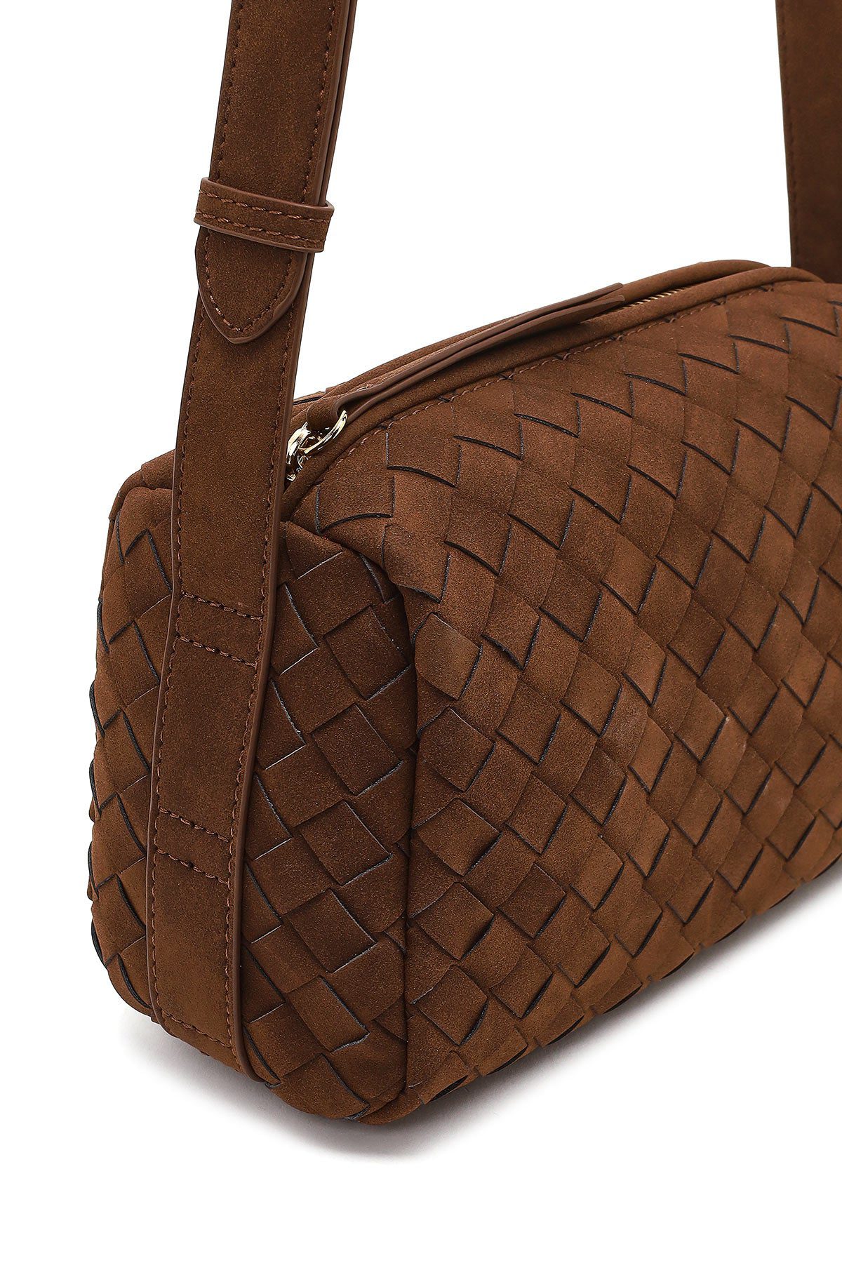 Kadın Kahverengi Uzun Askılı Örgü Süet Çapraz Çanta