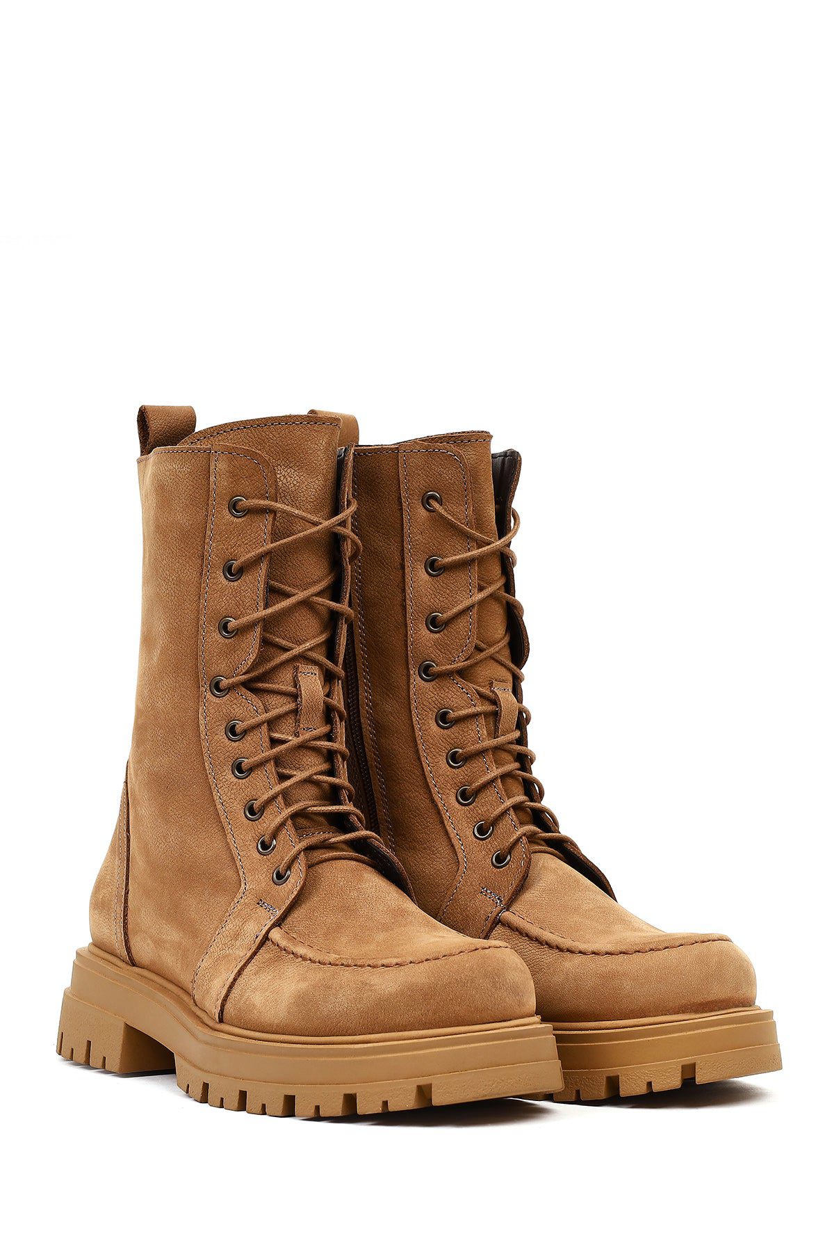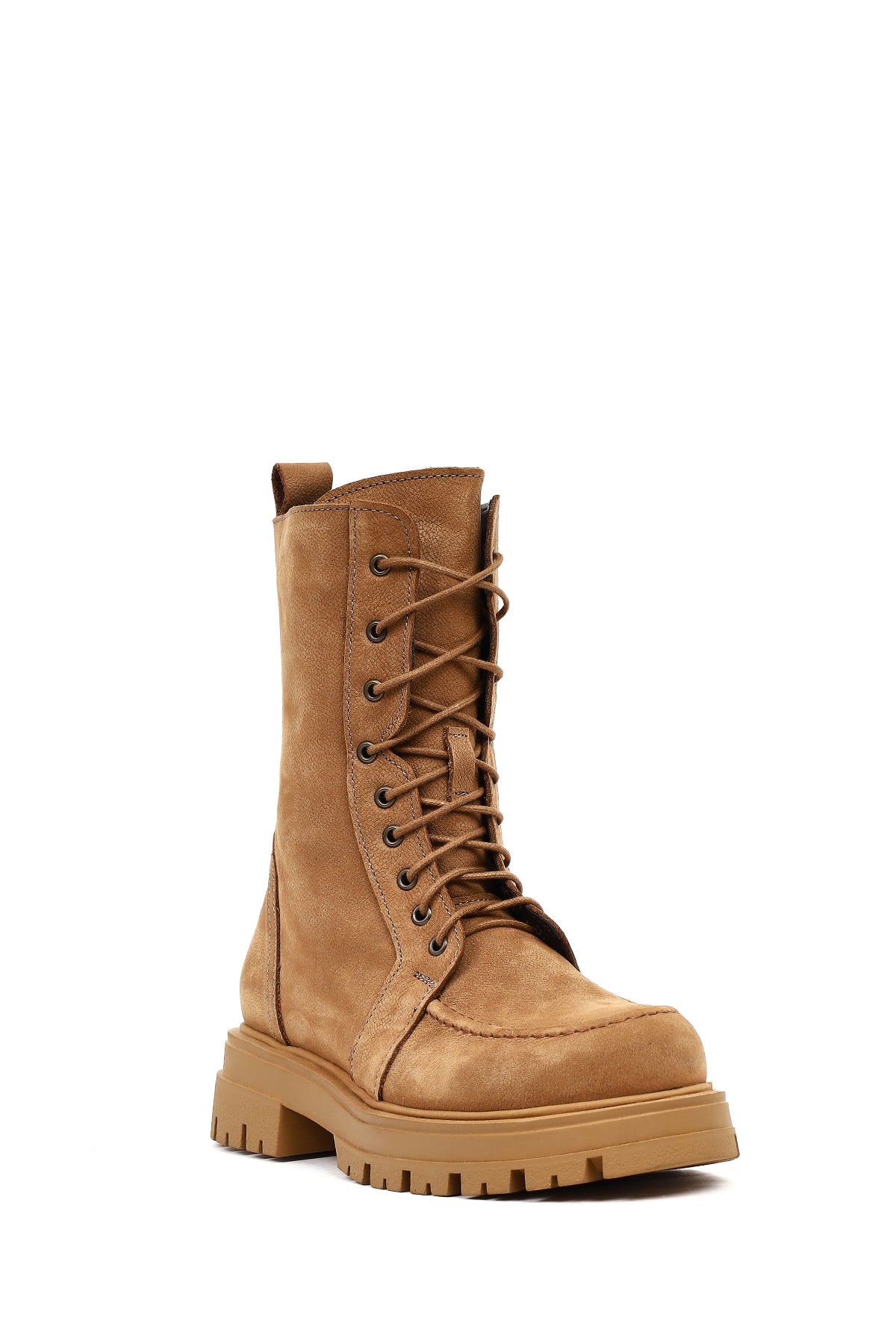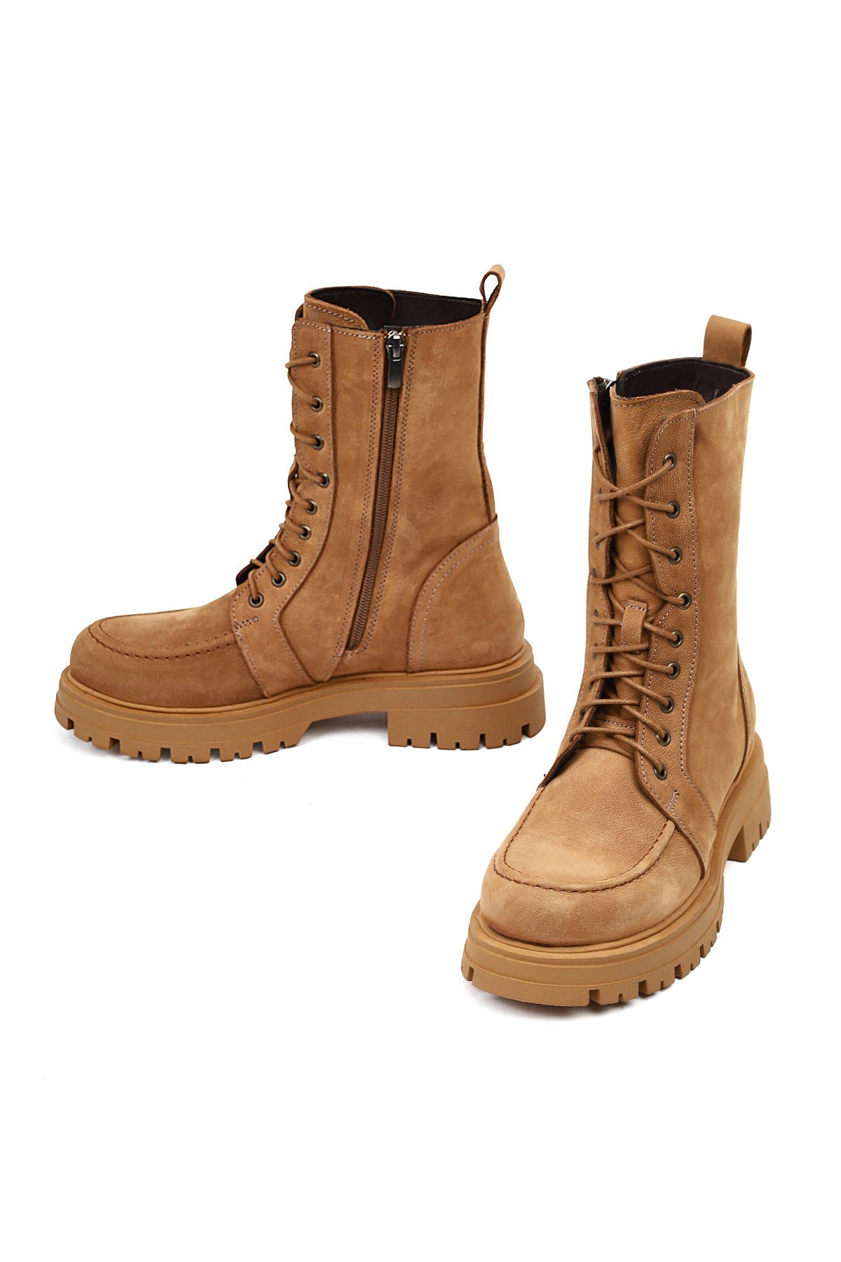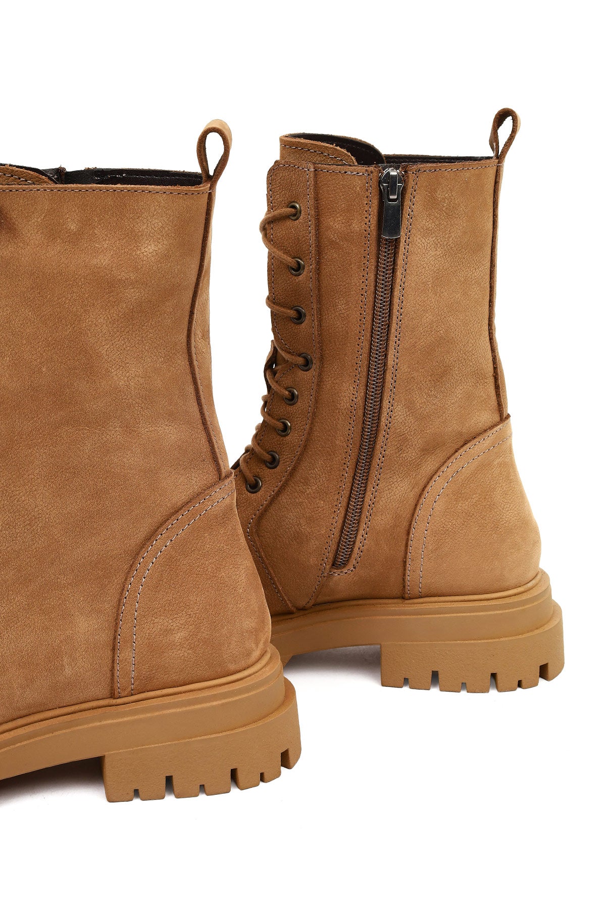 Kadın Camel Fermuarlı Kalın Tabanlı Nubuk Deri Postal Bot