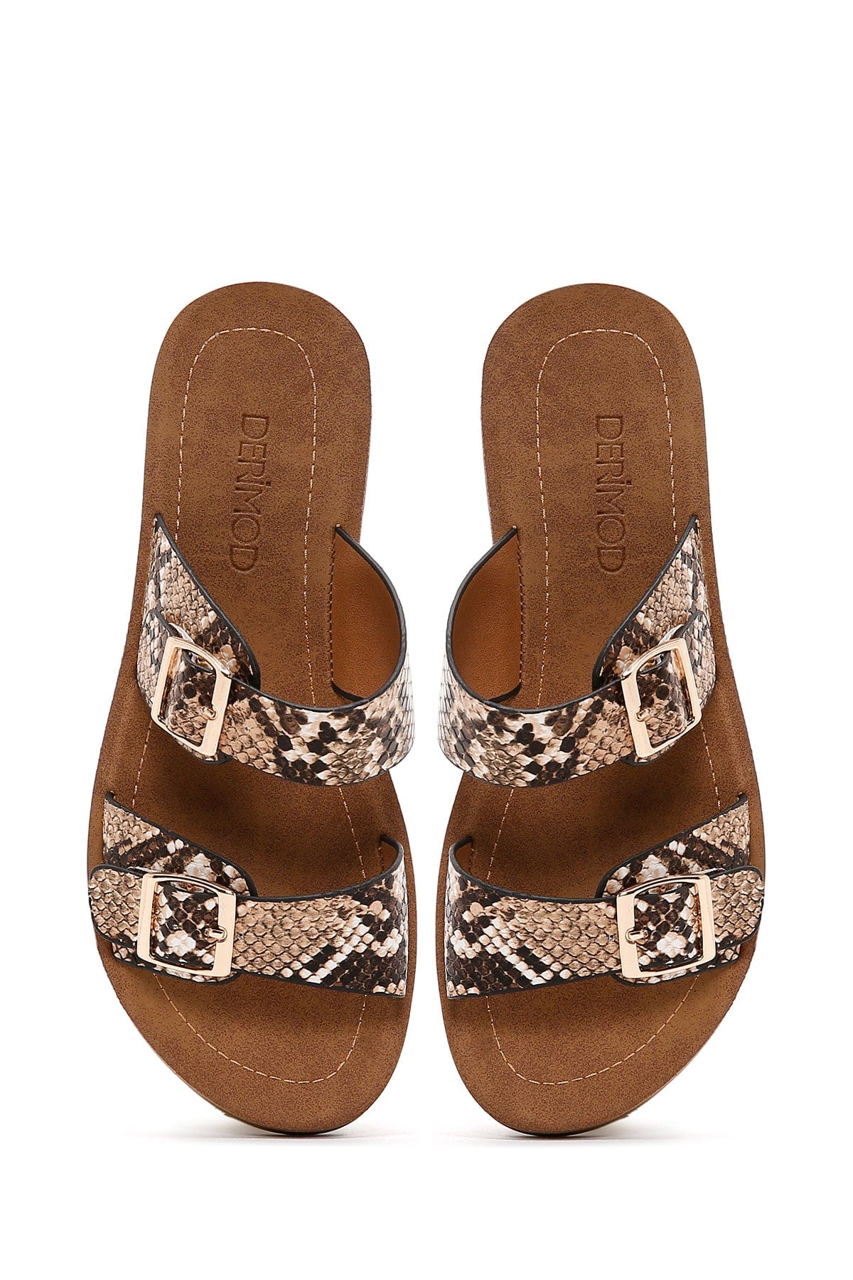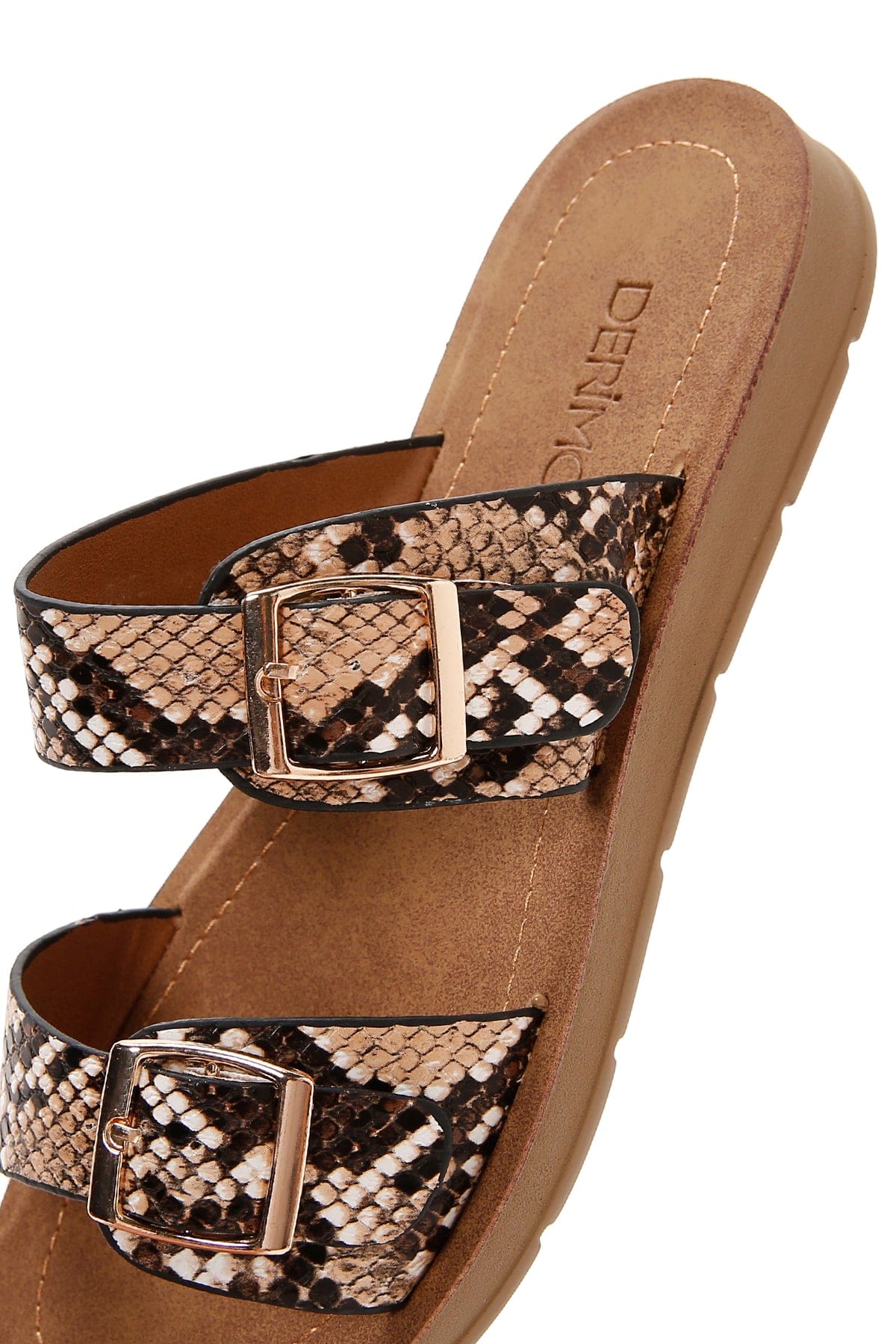 Kadın Kahverengi Çift Tokalı Desenli Terlik