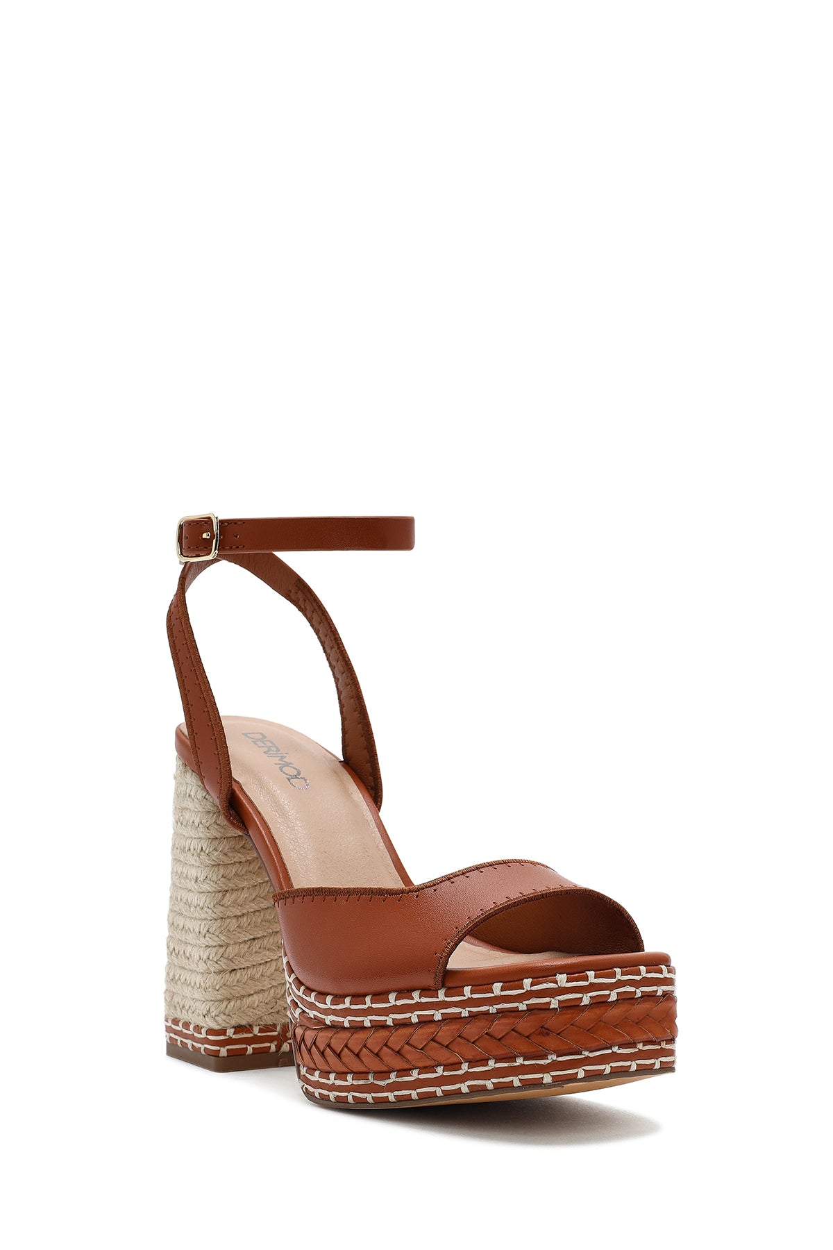 Kadın Taba Bilekten Tokalı Platform Yüksek Kalın Topuklu Sandalet