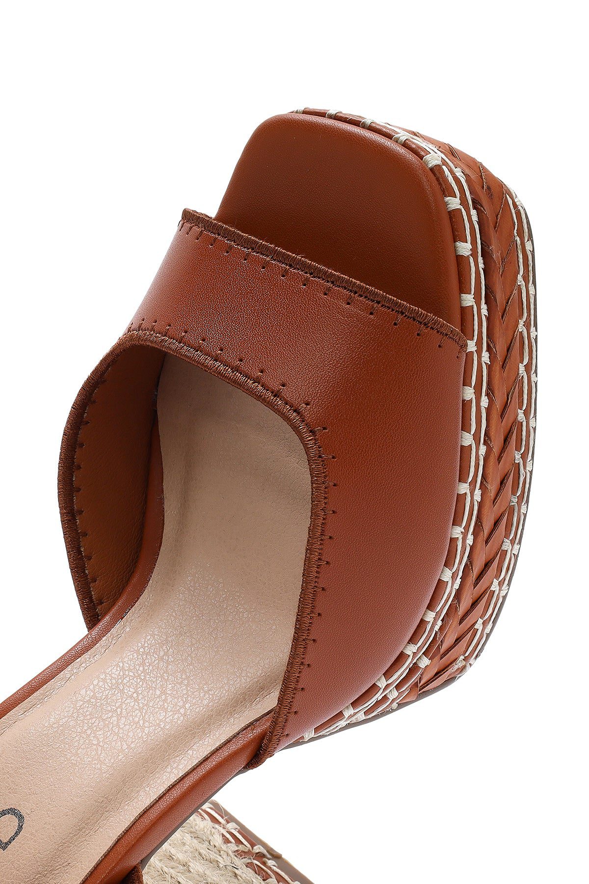 صندل زنانه قهوهای پلتفرم پاشنه ضخیم بلند بنددار دری مد