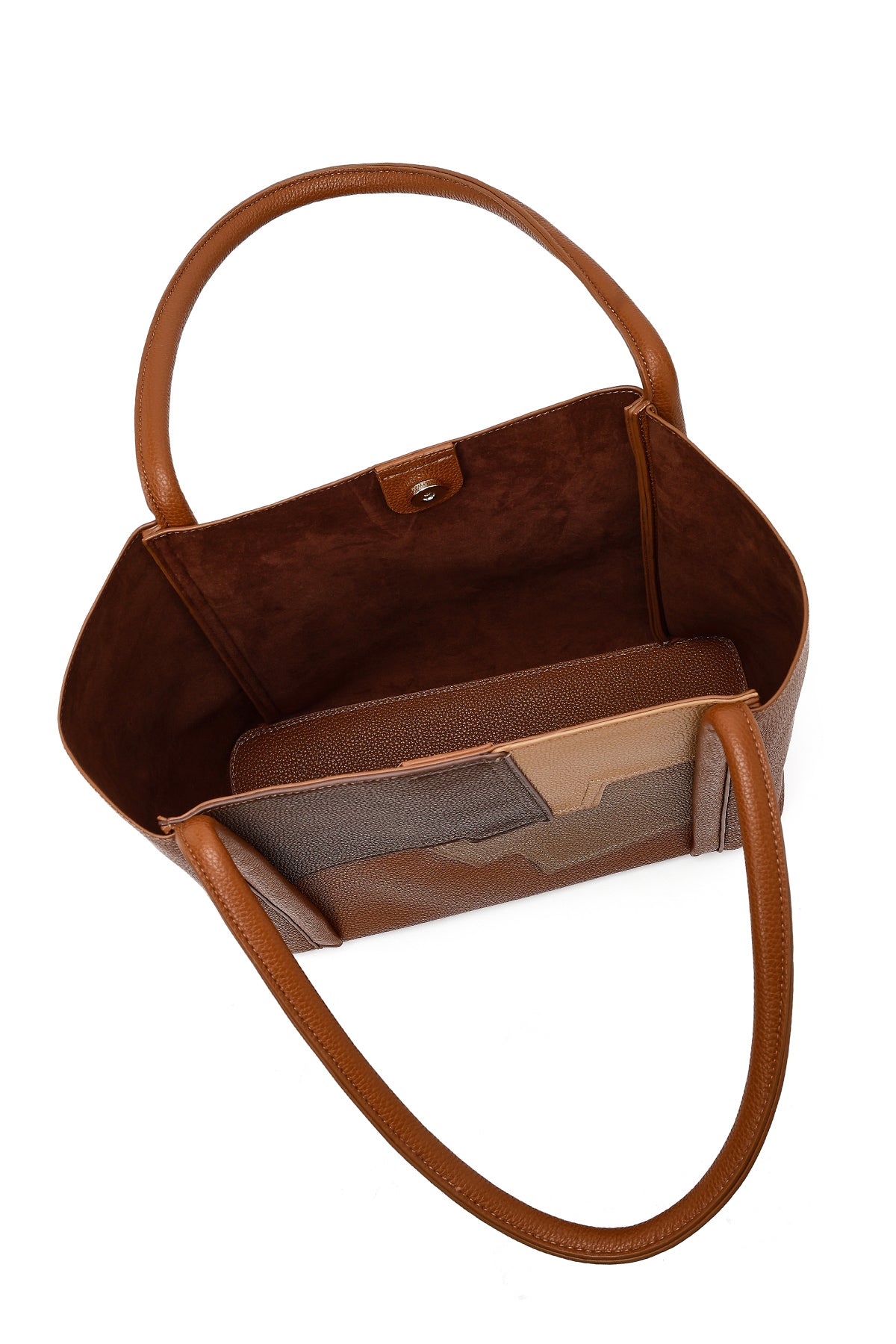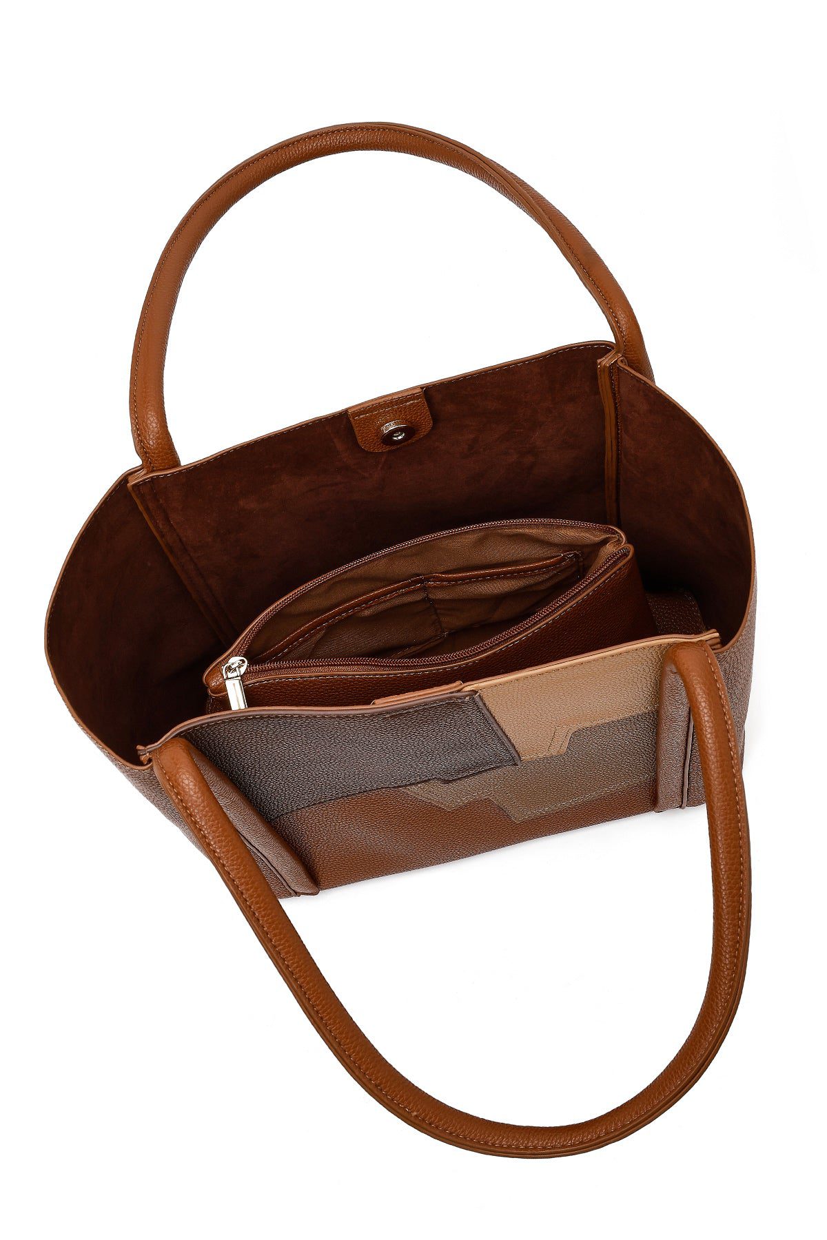 کیف زنانه قهوه‌ای طرح‌دار بنددار دری مد