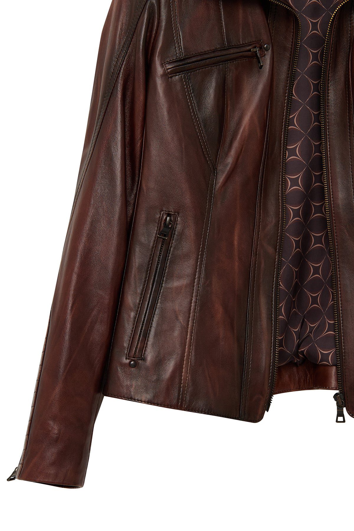 Janet Kadın Kahverengi Kısa Deri Ceket