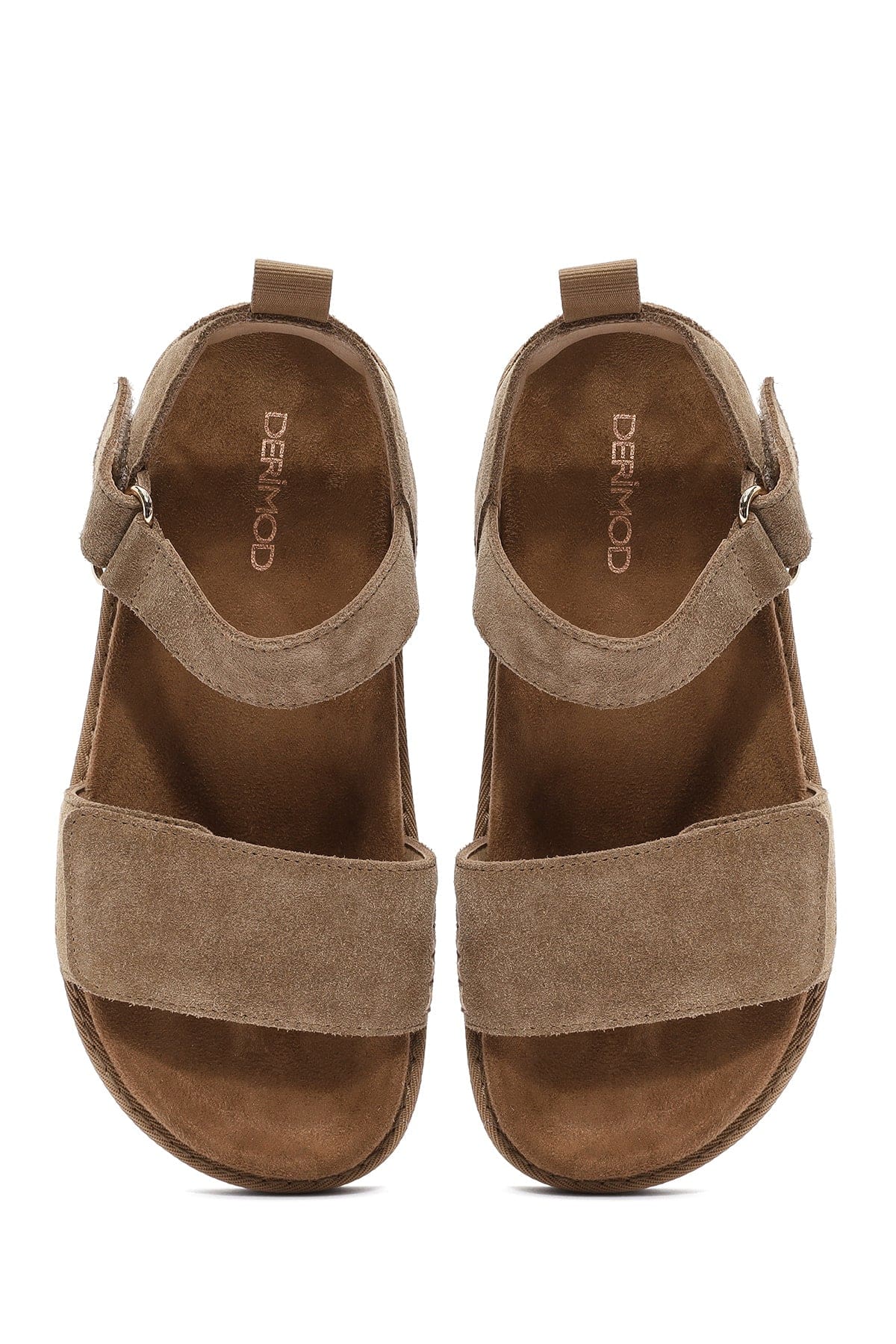 Kadın Taba Bantlı Kalın Tabanlı Süet Deri Sandalet