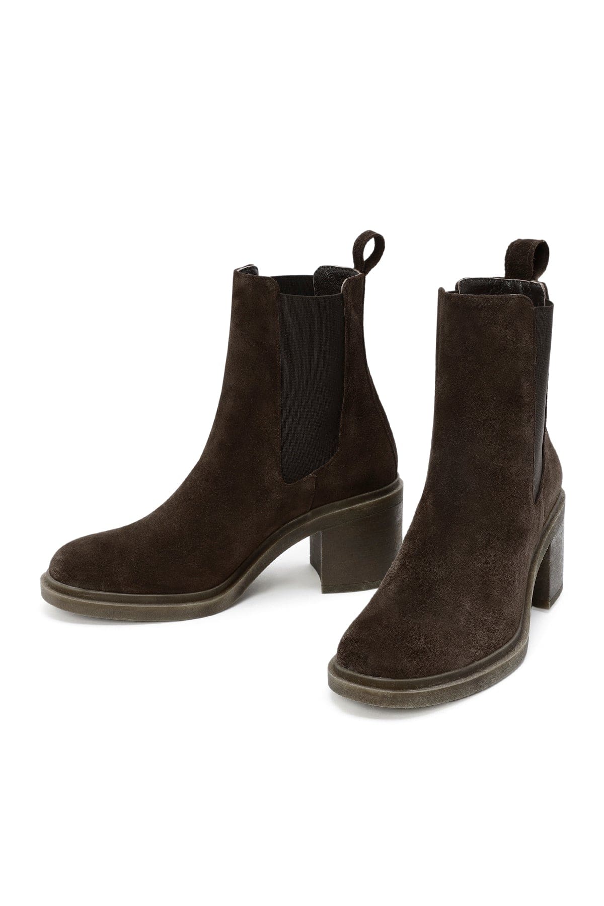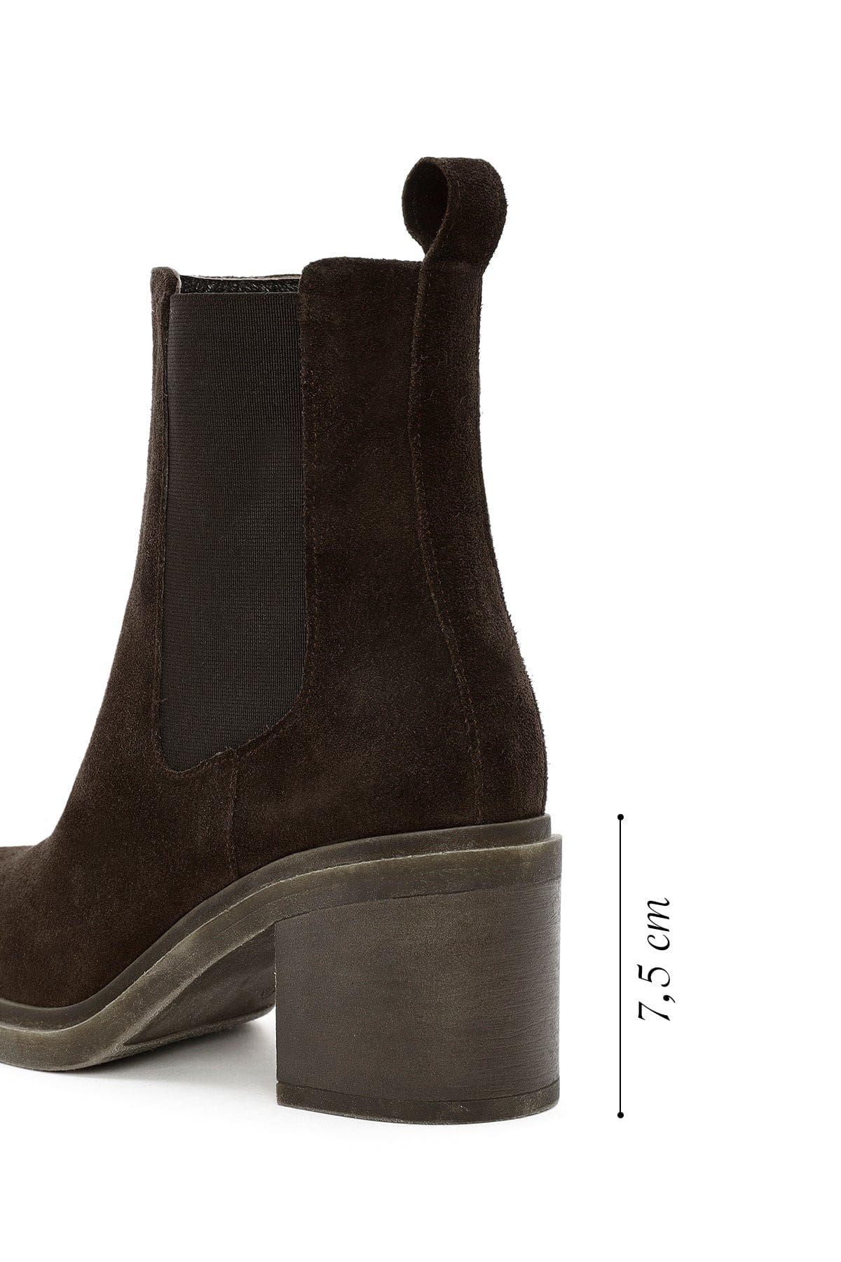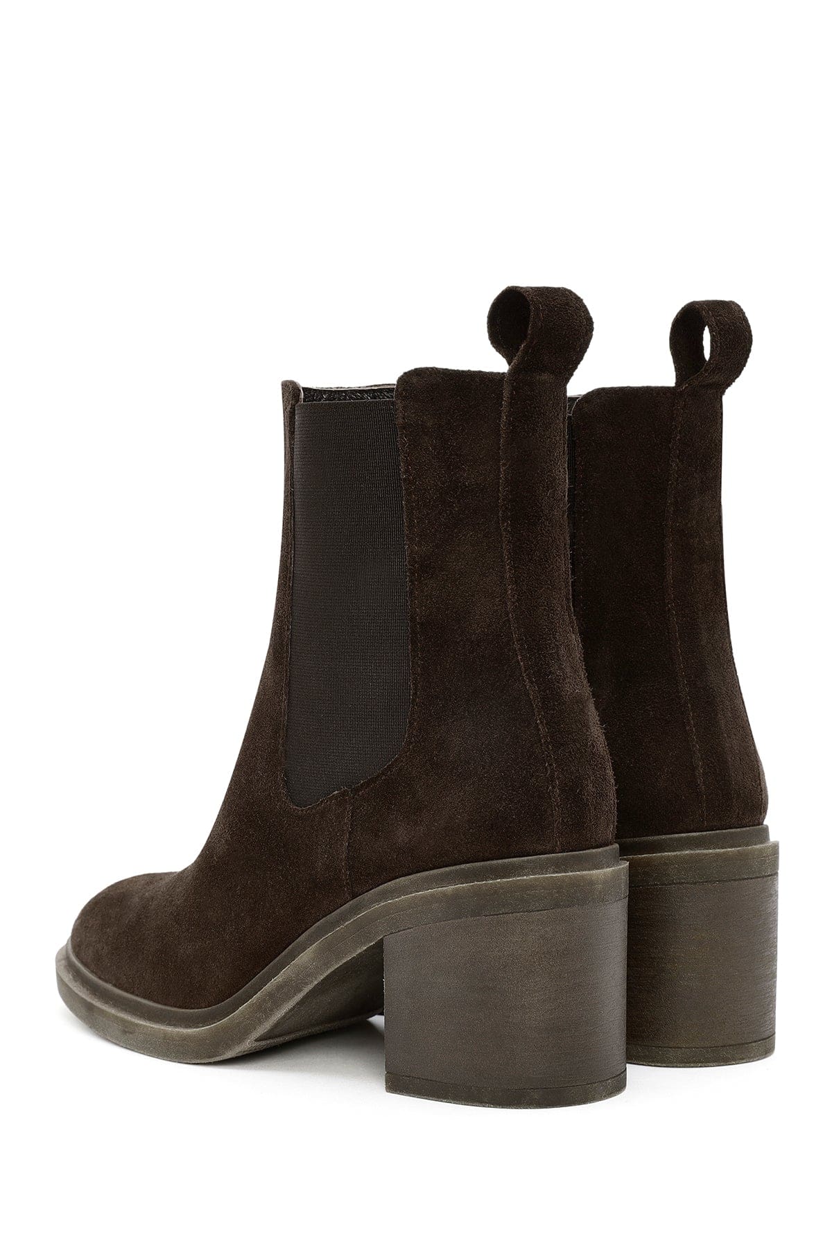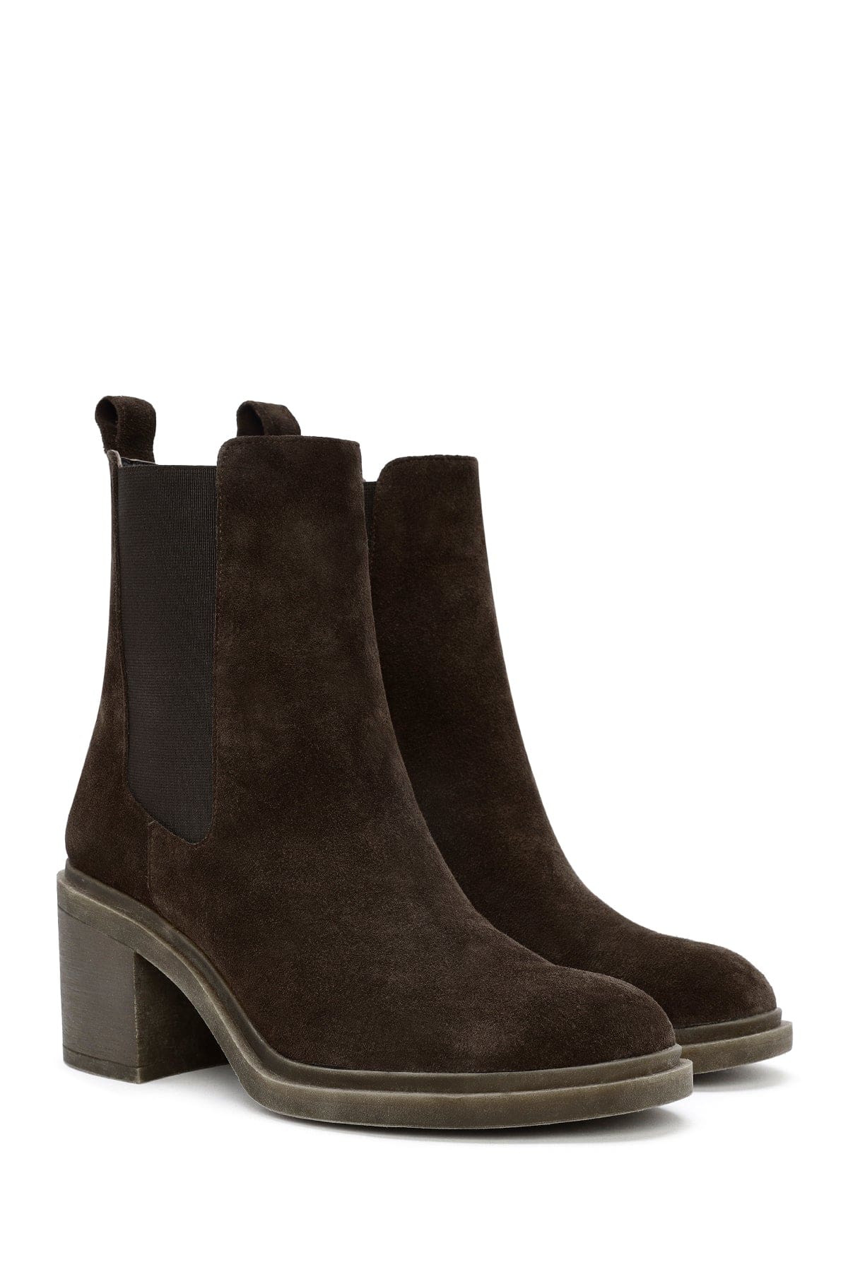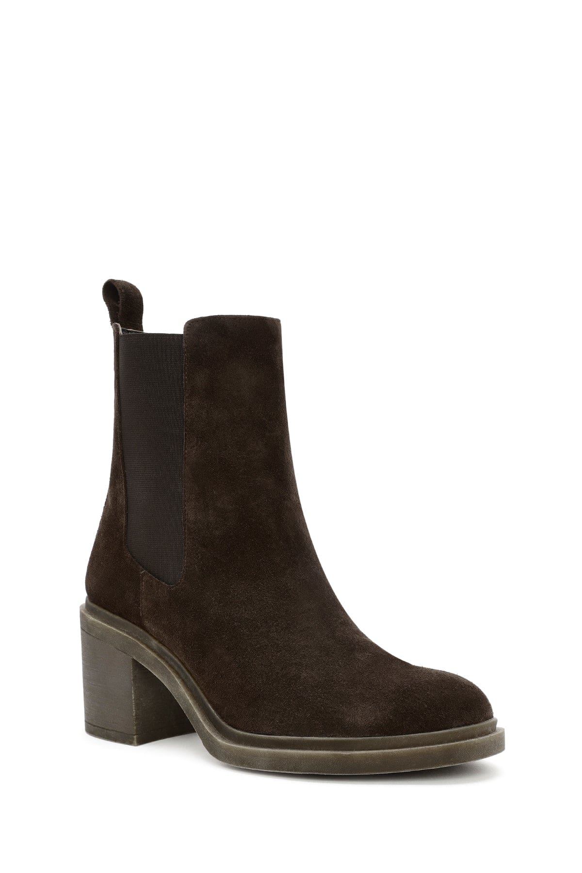 Kadın Kahverengi Kalın Topuklu Süet Deri Chelsea Bot
