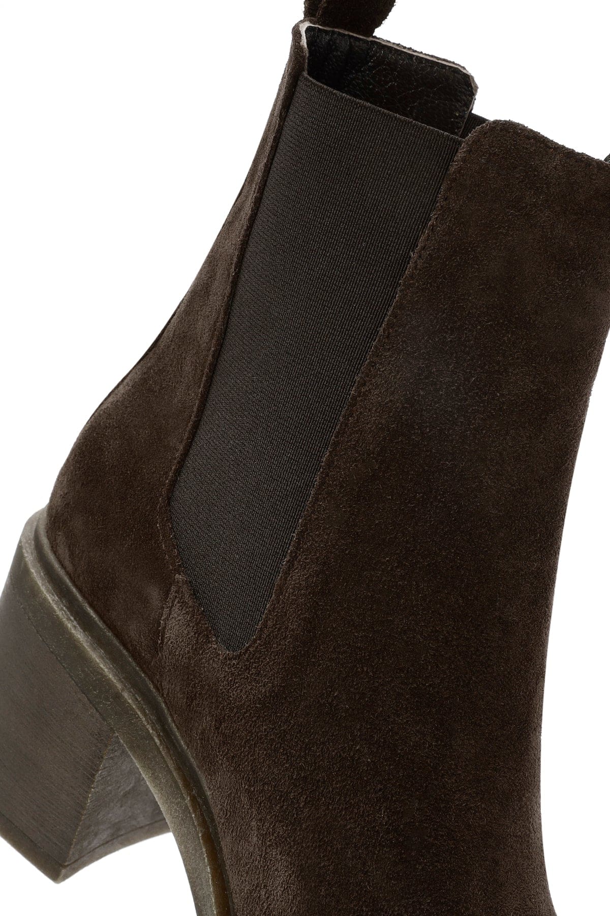 بوت زنانه قهوهای جیر چرمی پاشنه ضخیم چلسی دری مد