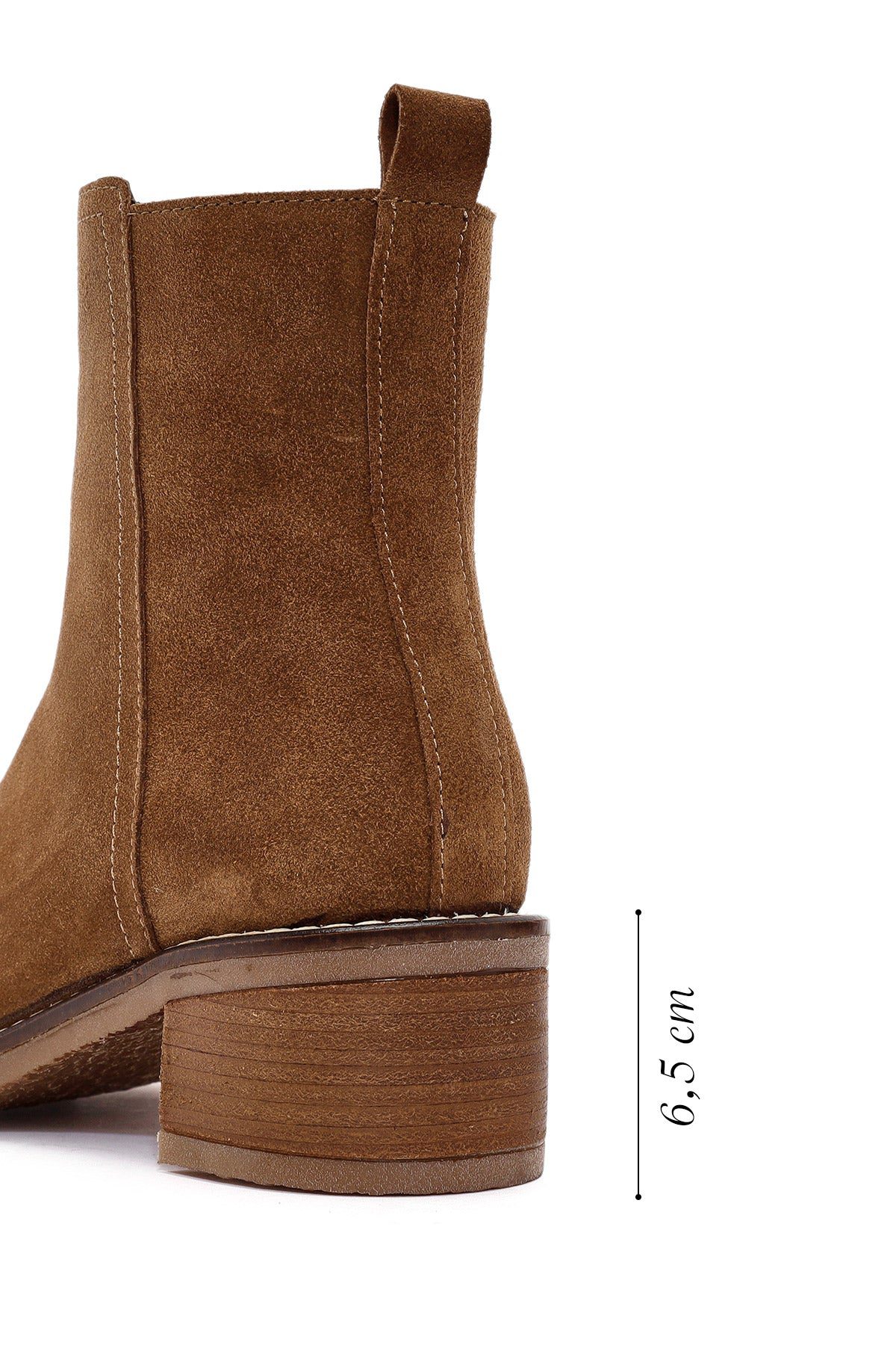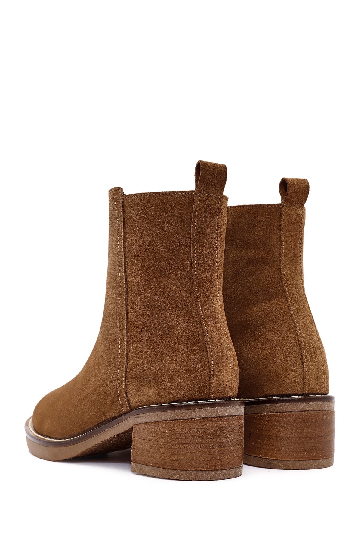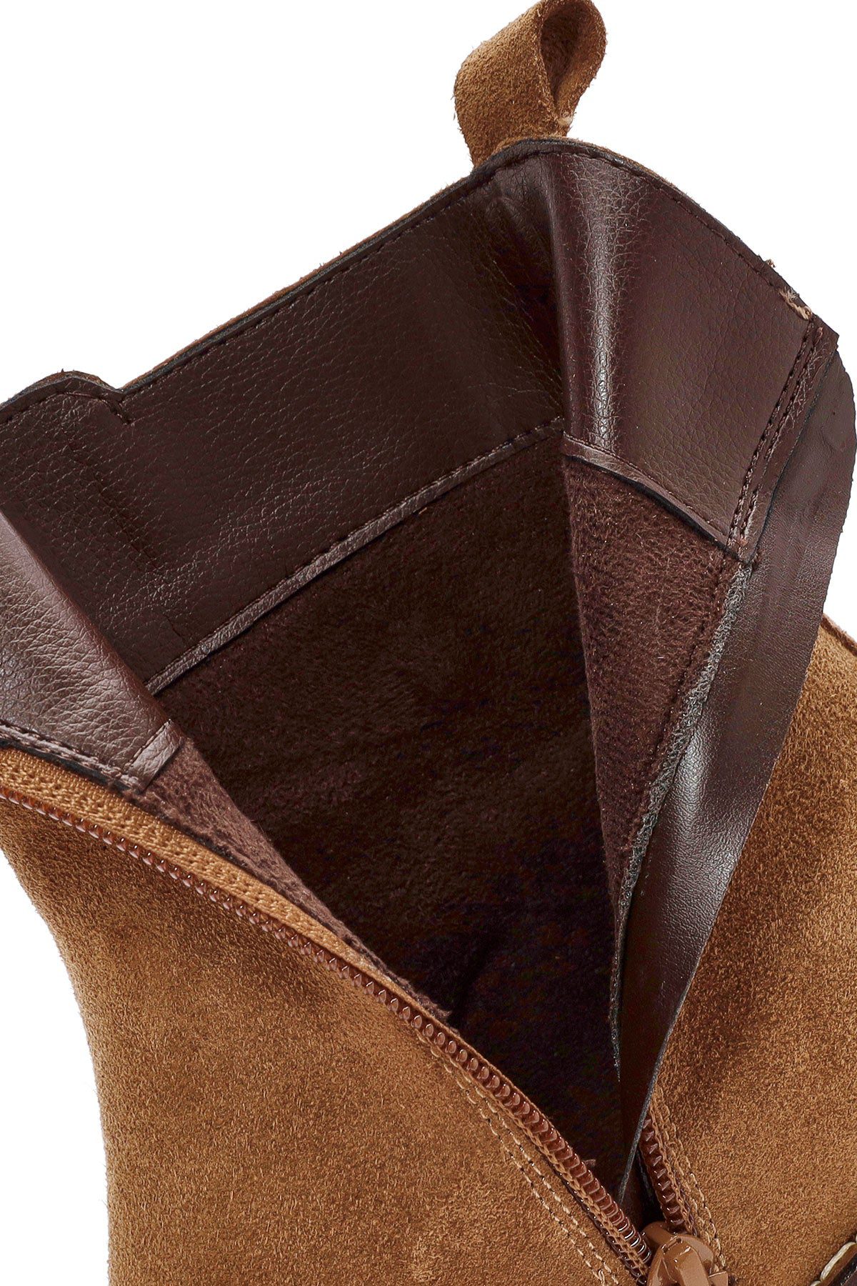 Kadın Kahverengi Fermuarlı Kalın Topuklu Süet Deri Bot