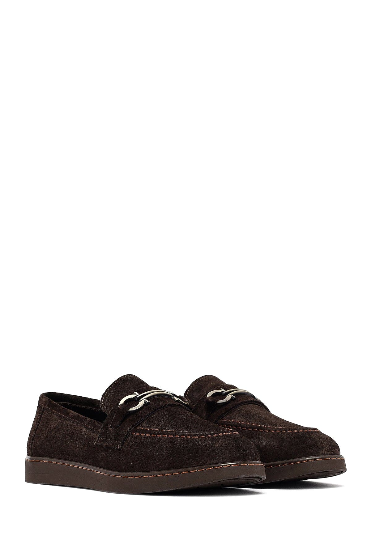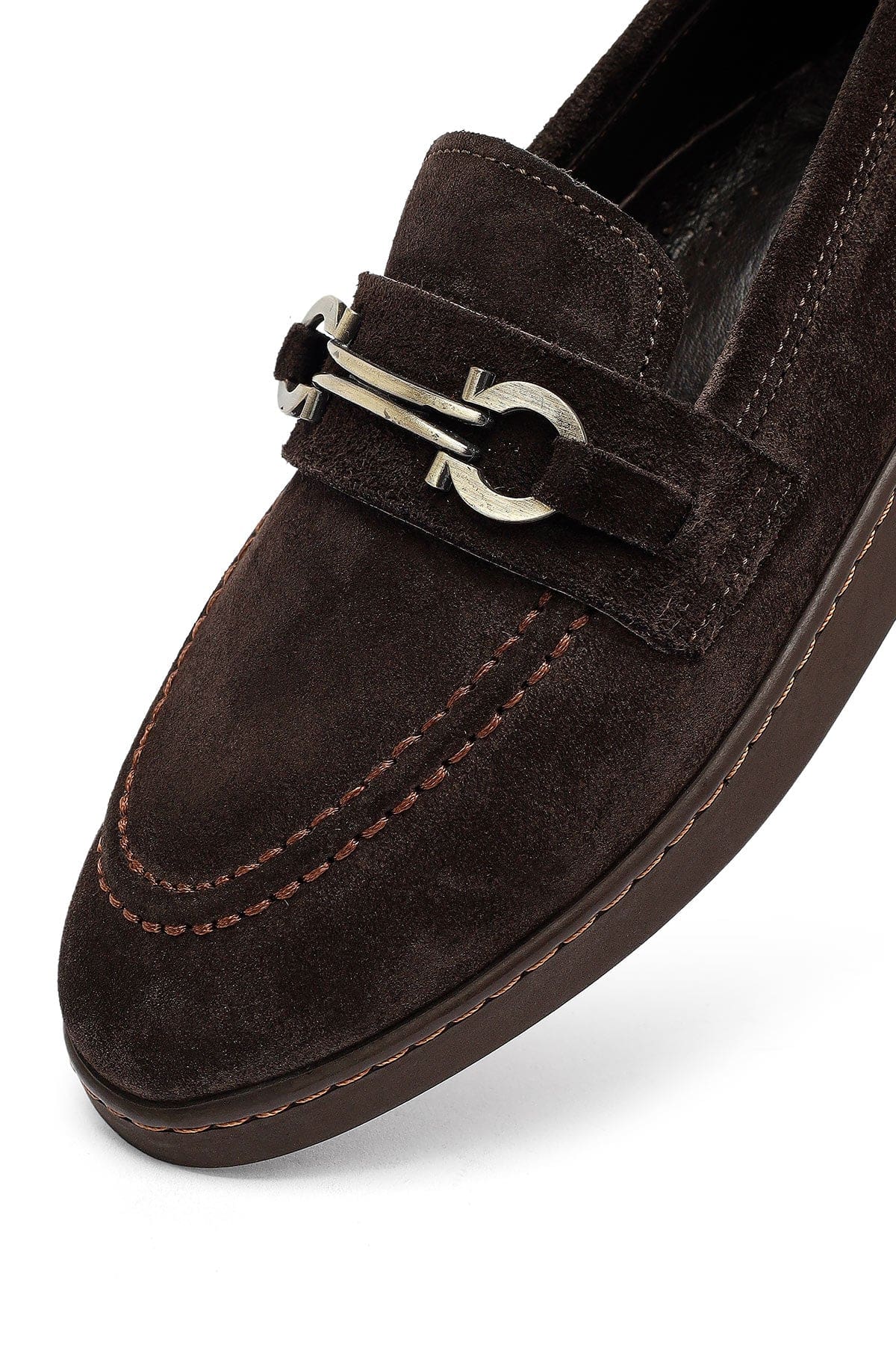 Kadın Kahverengi Tokalı Süet Deri Loafer