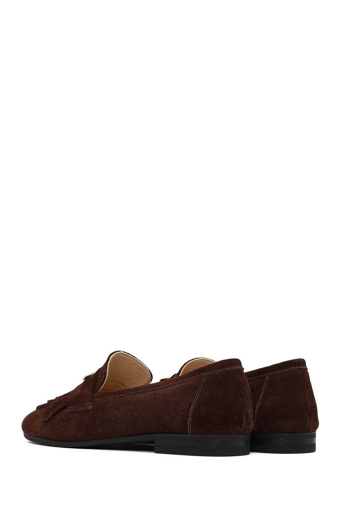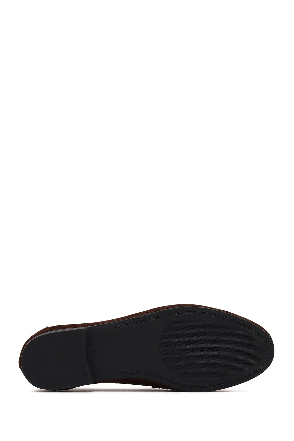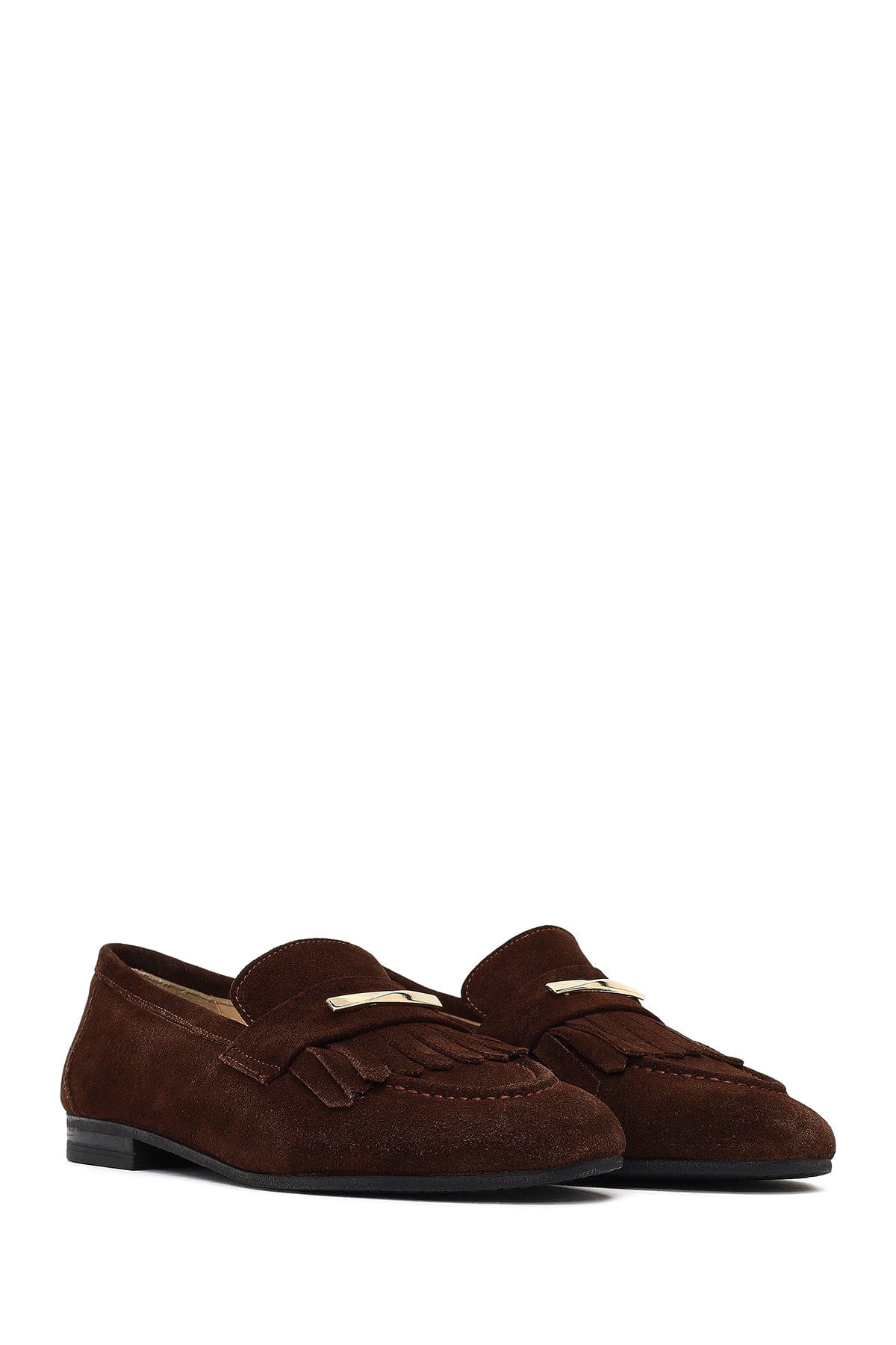Kadın Kahverengi Tokalı Süet Deri Loafer
