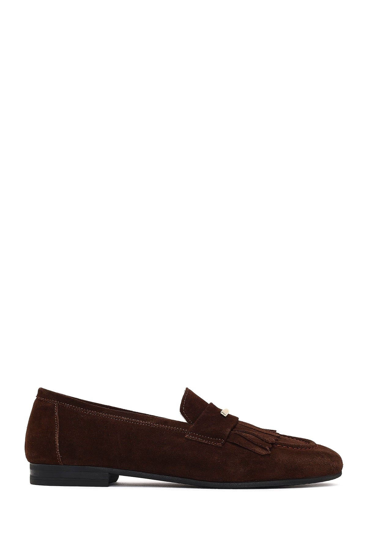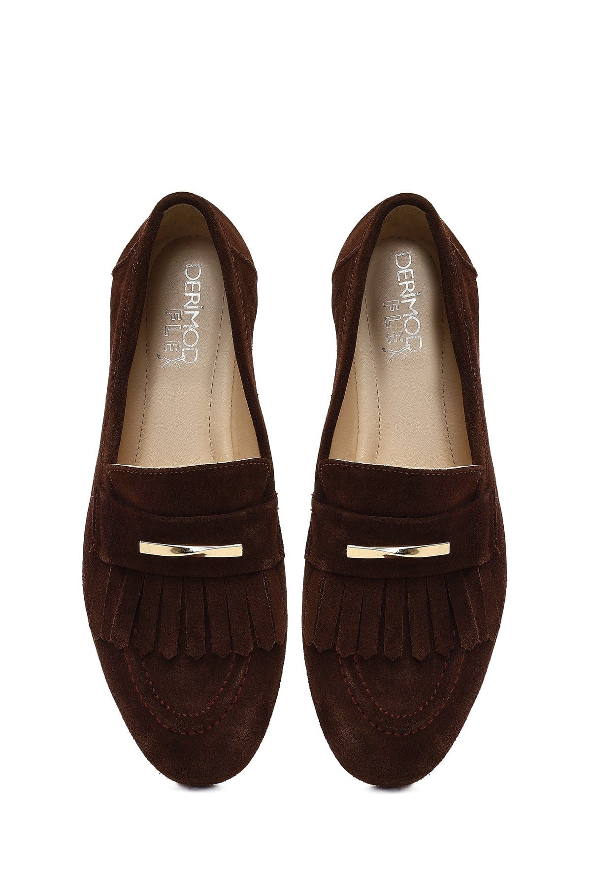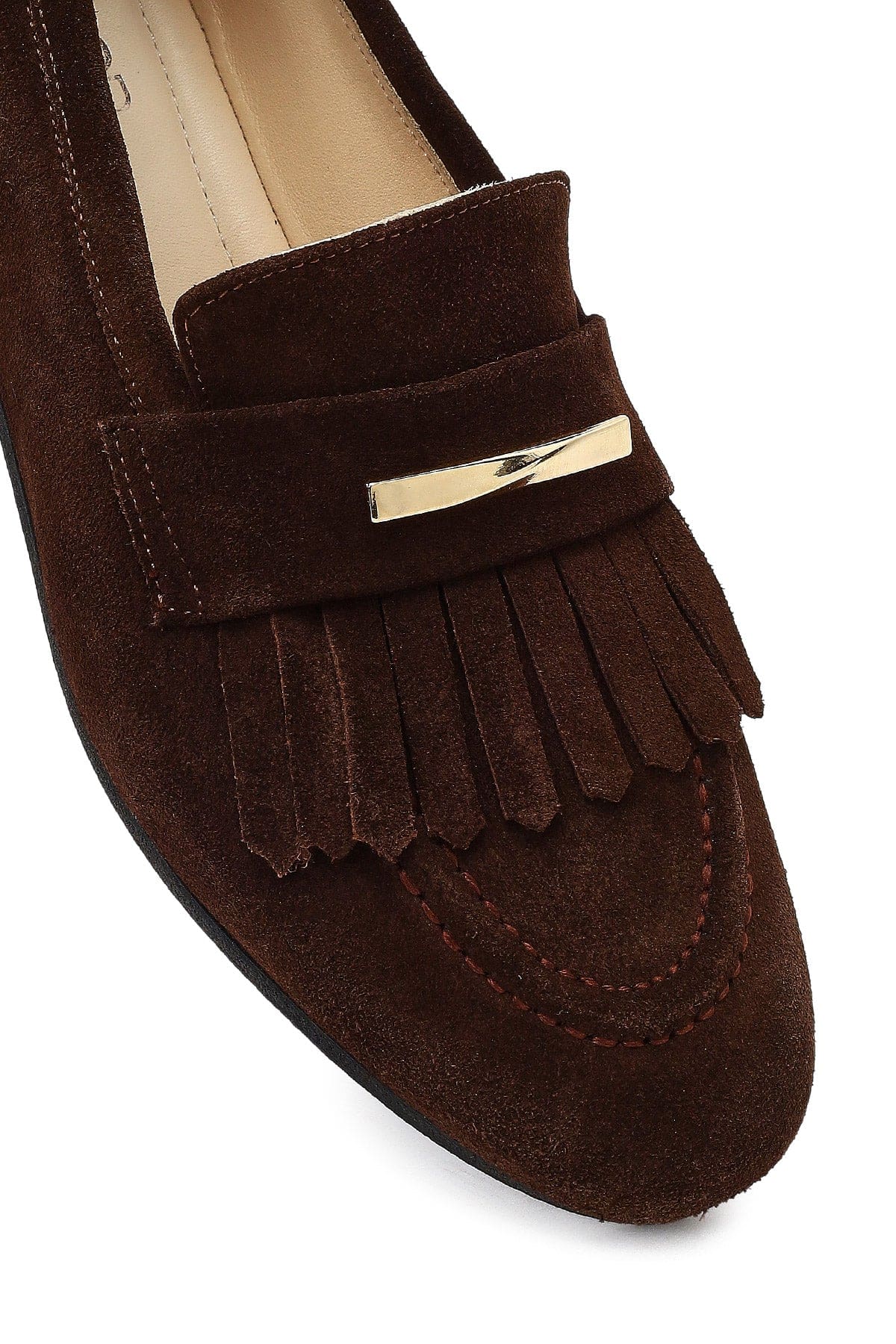 Kadın Kahverengi Tokalı Süet Deri Loafer