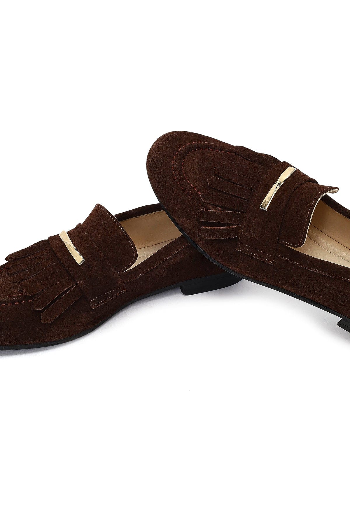 کفش لوفر زنانه قهوهای جیر بنددار دری مد