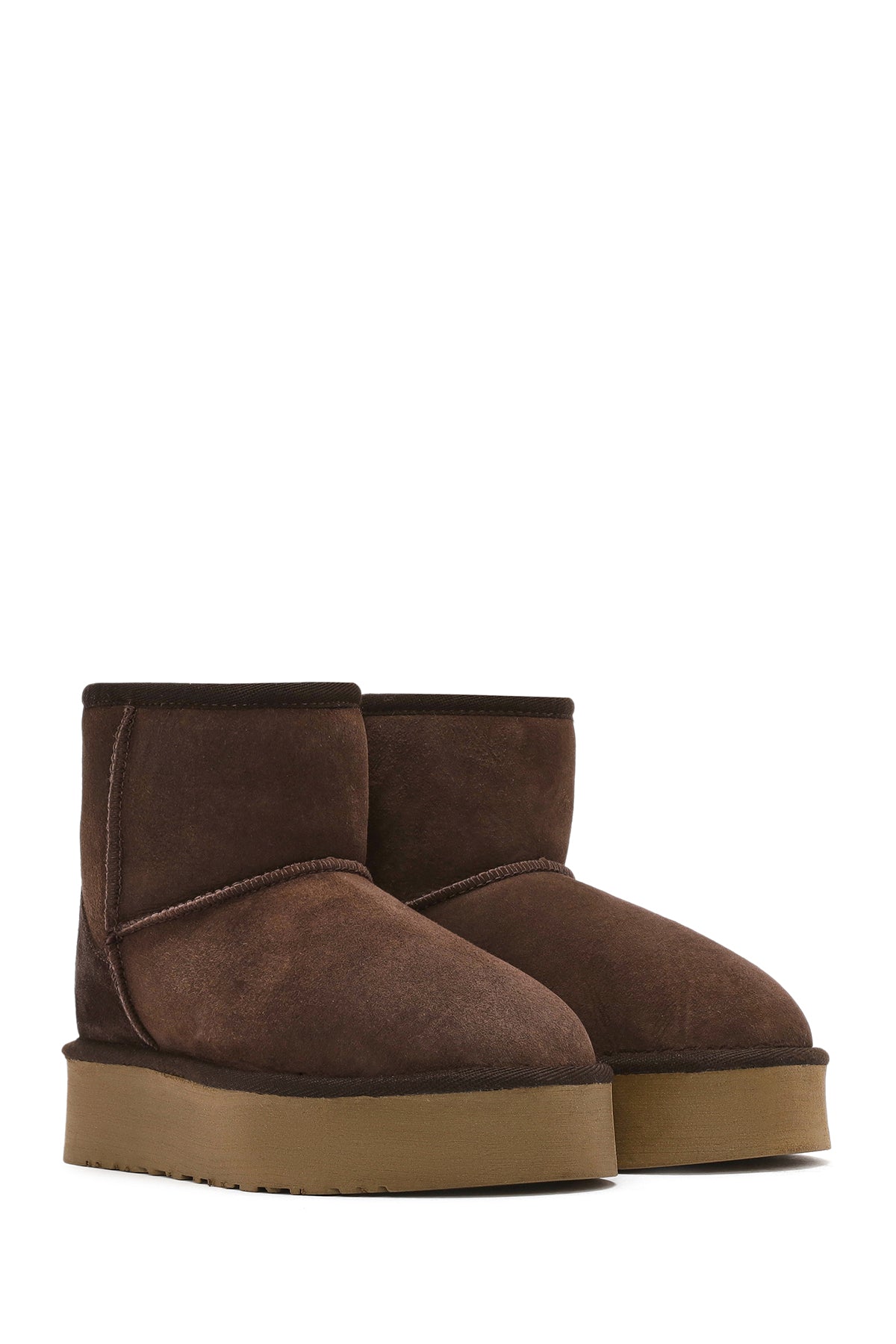 Kadın Kahverengi Kalın Tabanlı Süet Deri Bot