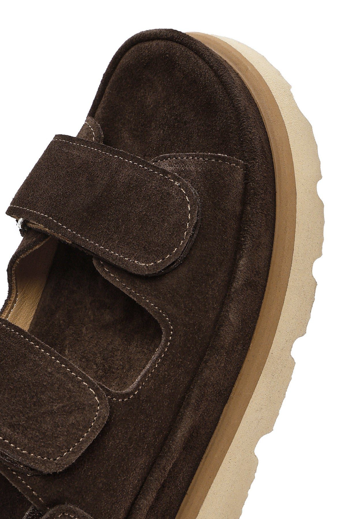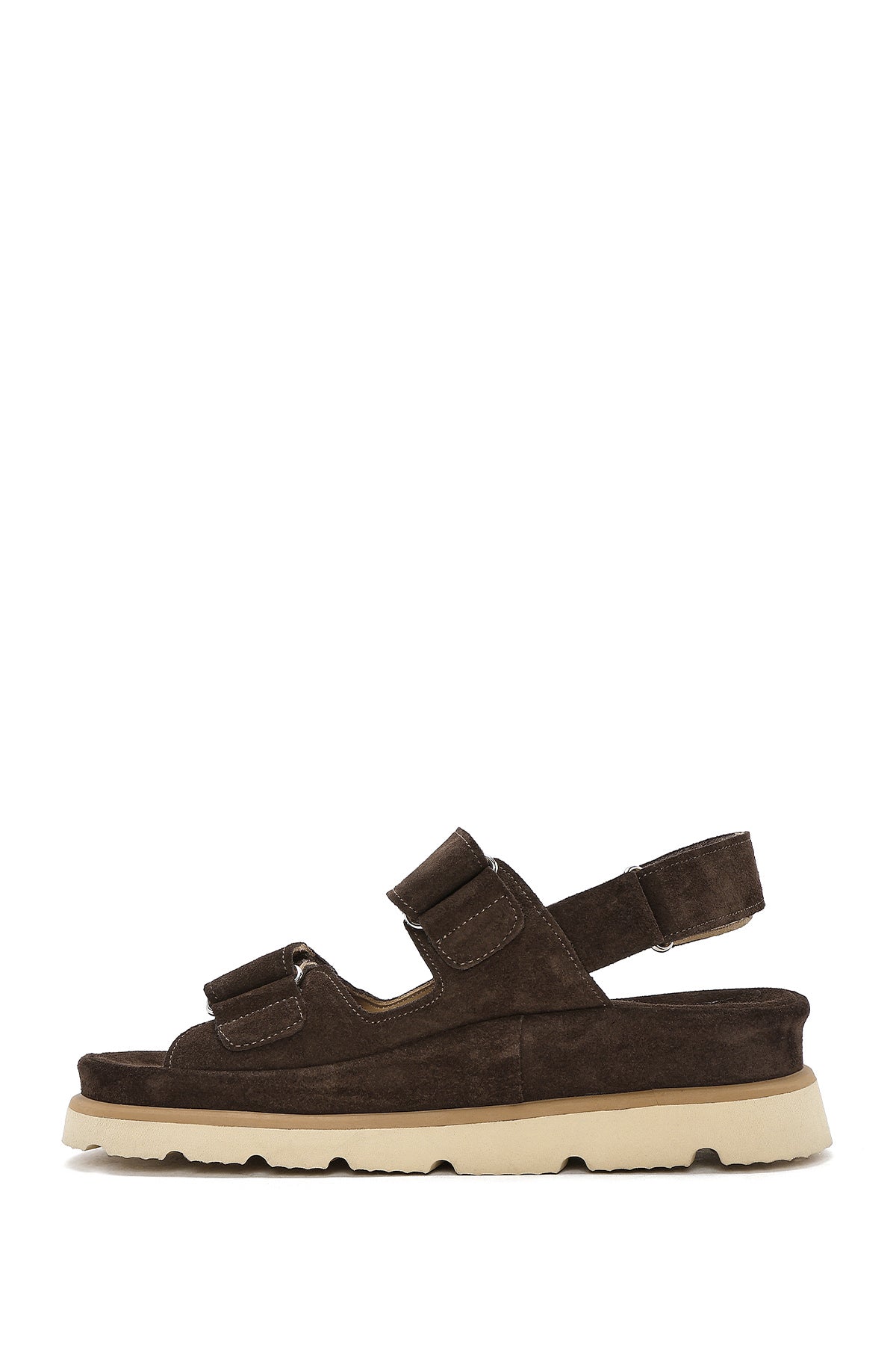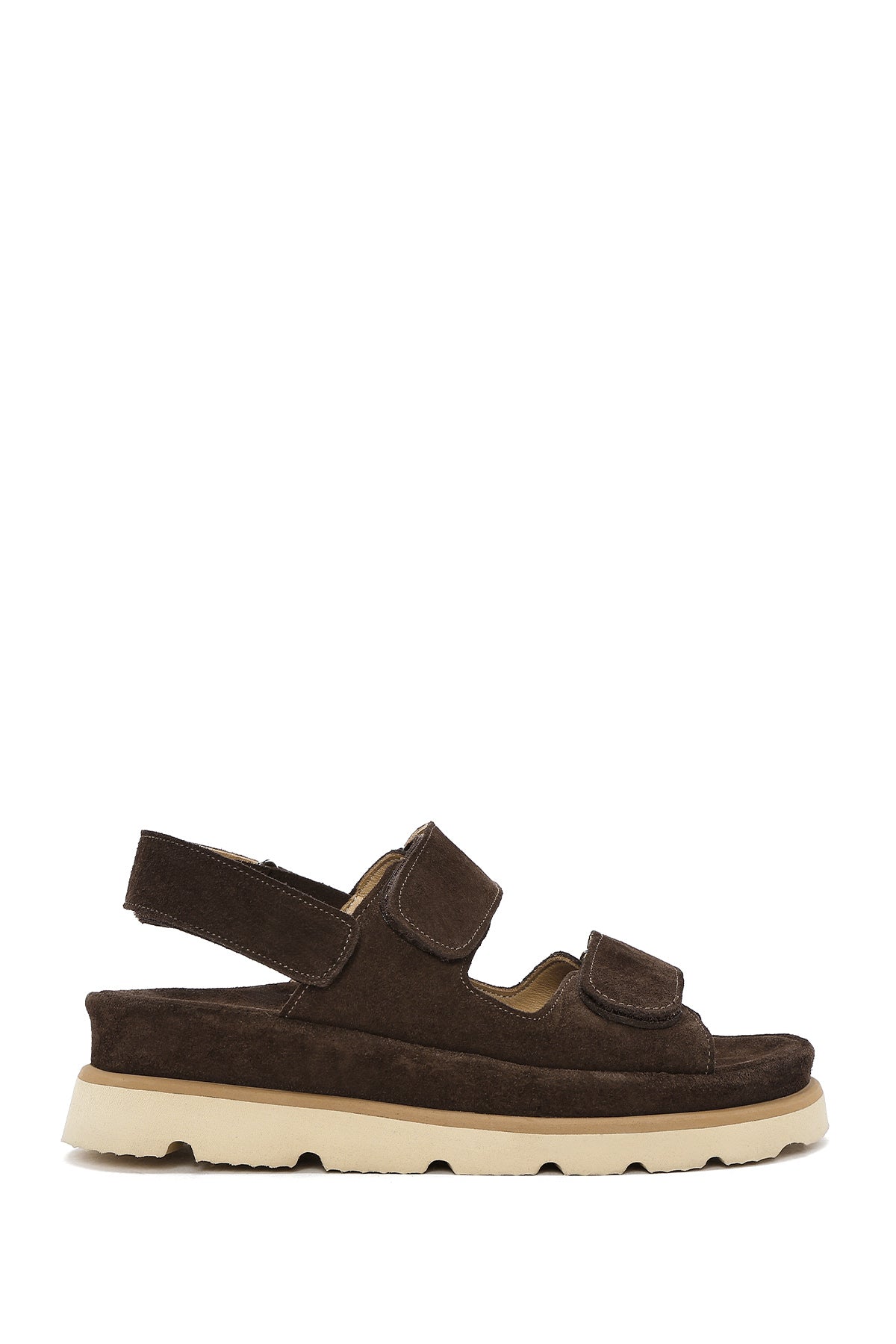 Kadın Kahverengi Çift Bantlı Süet Deri Sandalet