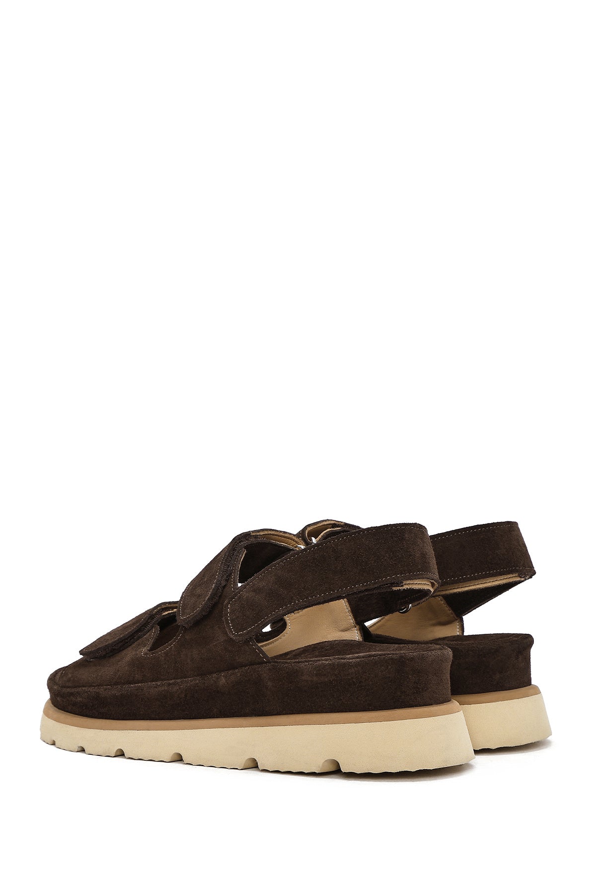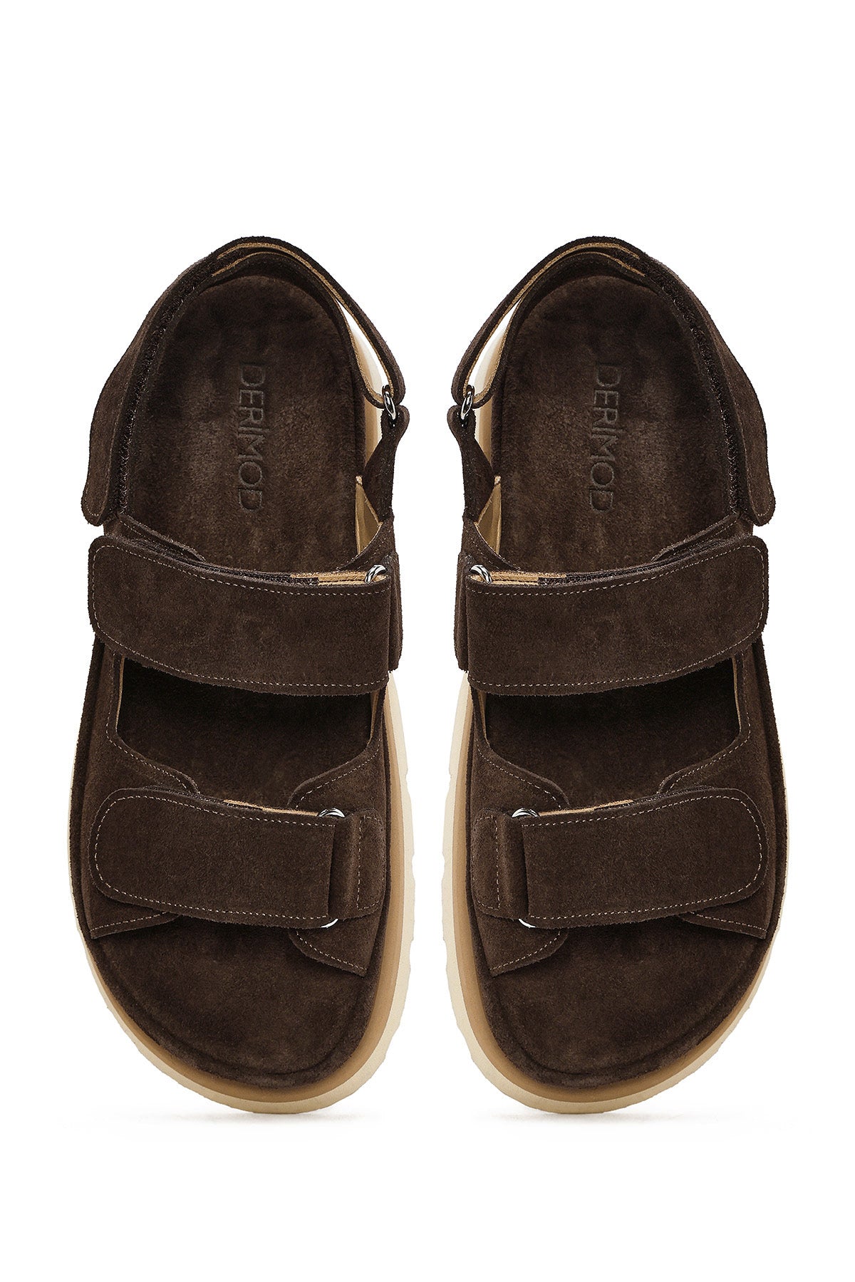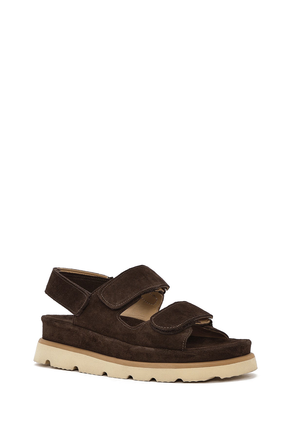 Kadın Kahverengi Çift Bantlı Süet Deri Sandalet