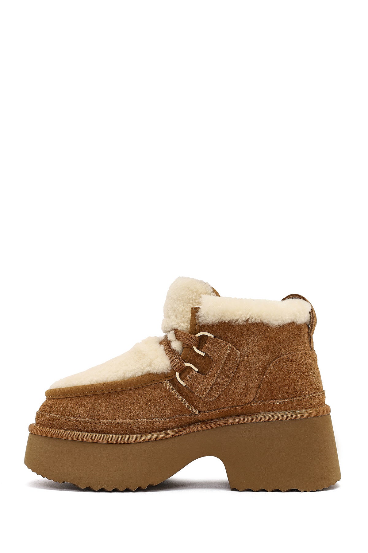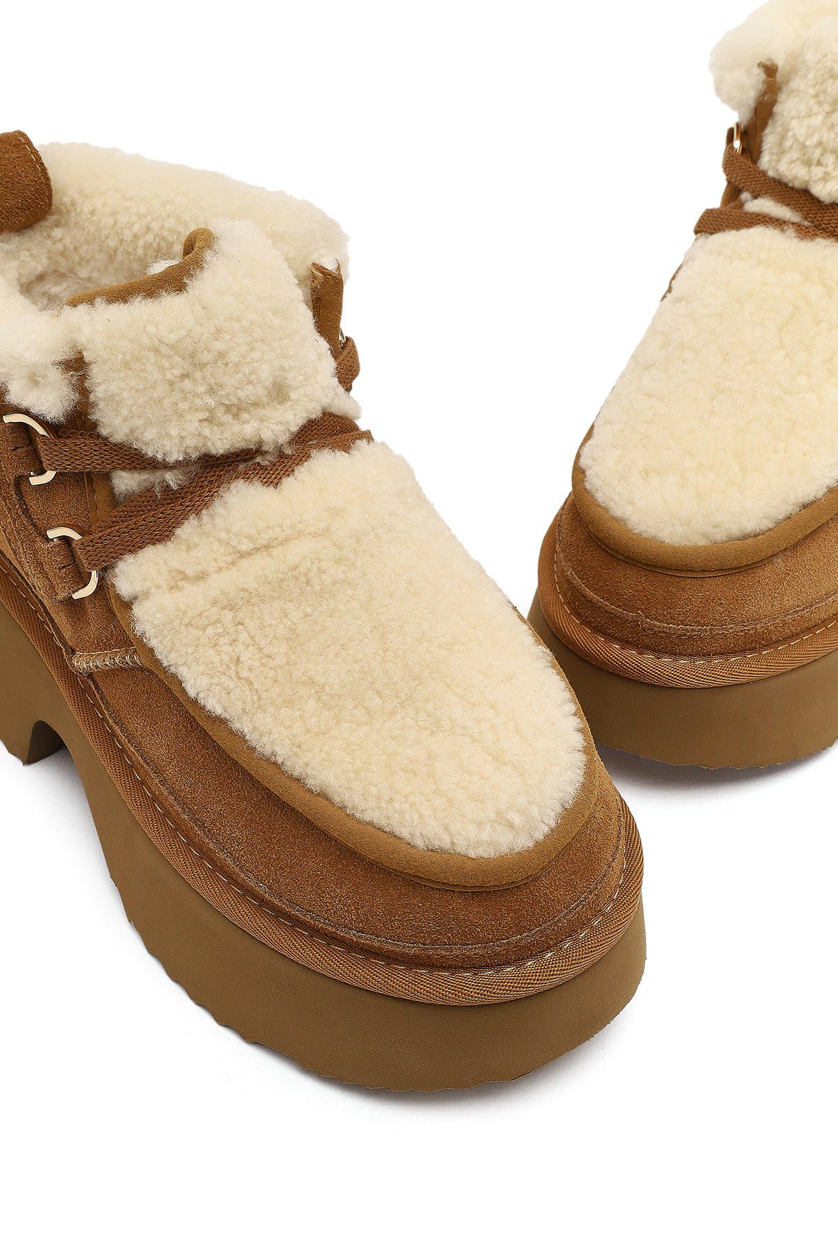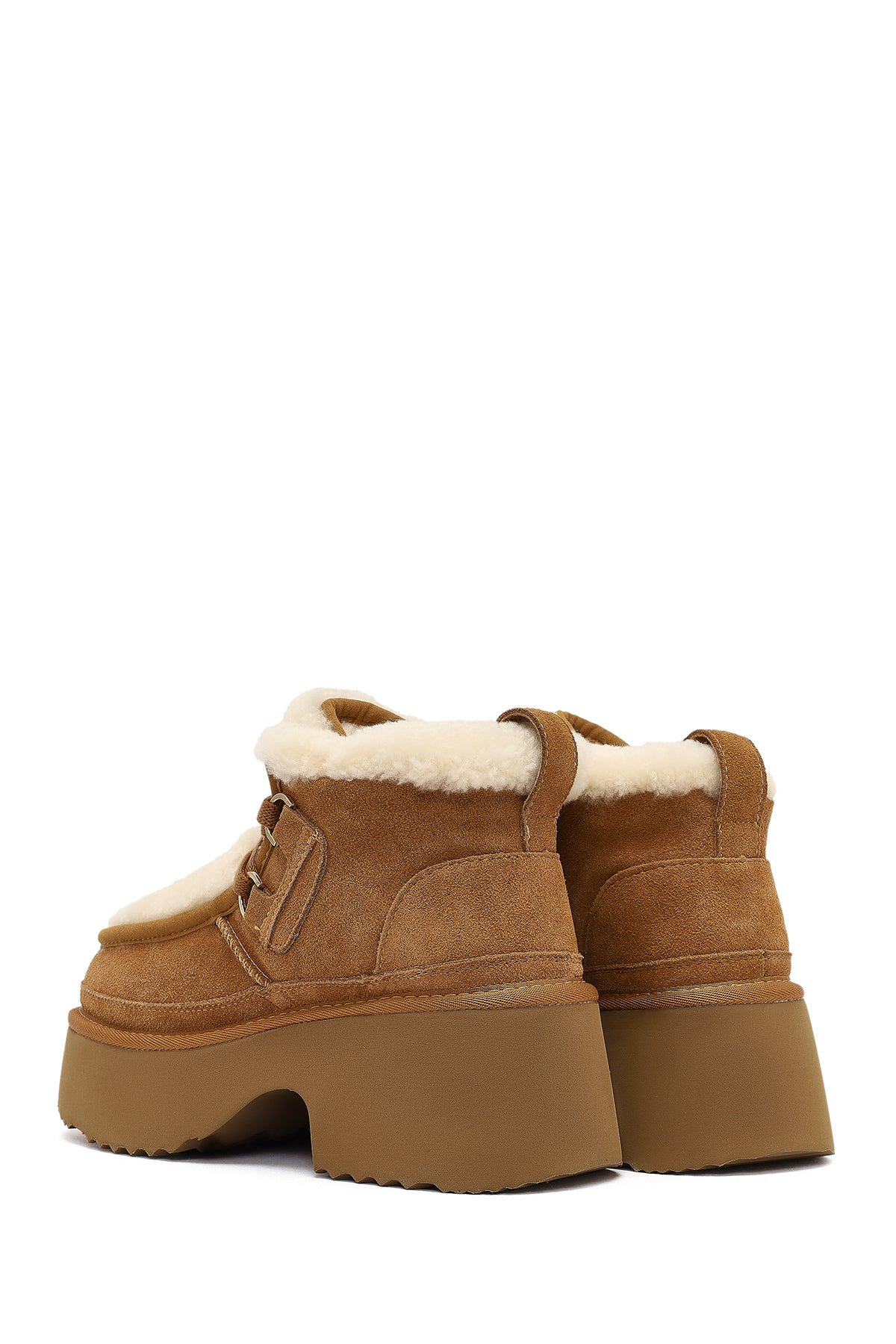 Kadın Camel Bağcıklı Kalın Tabanlı Kürklü Süet Deri Teddy Bot