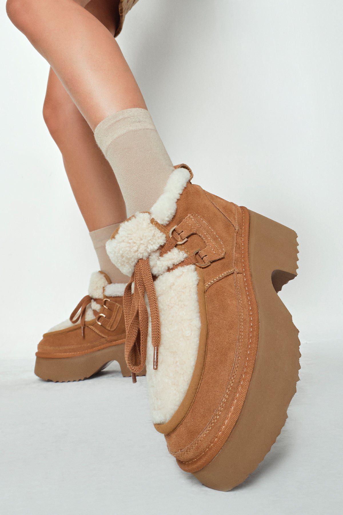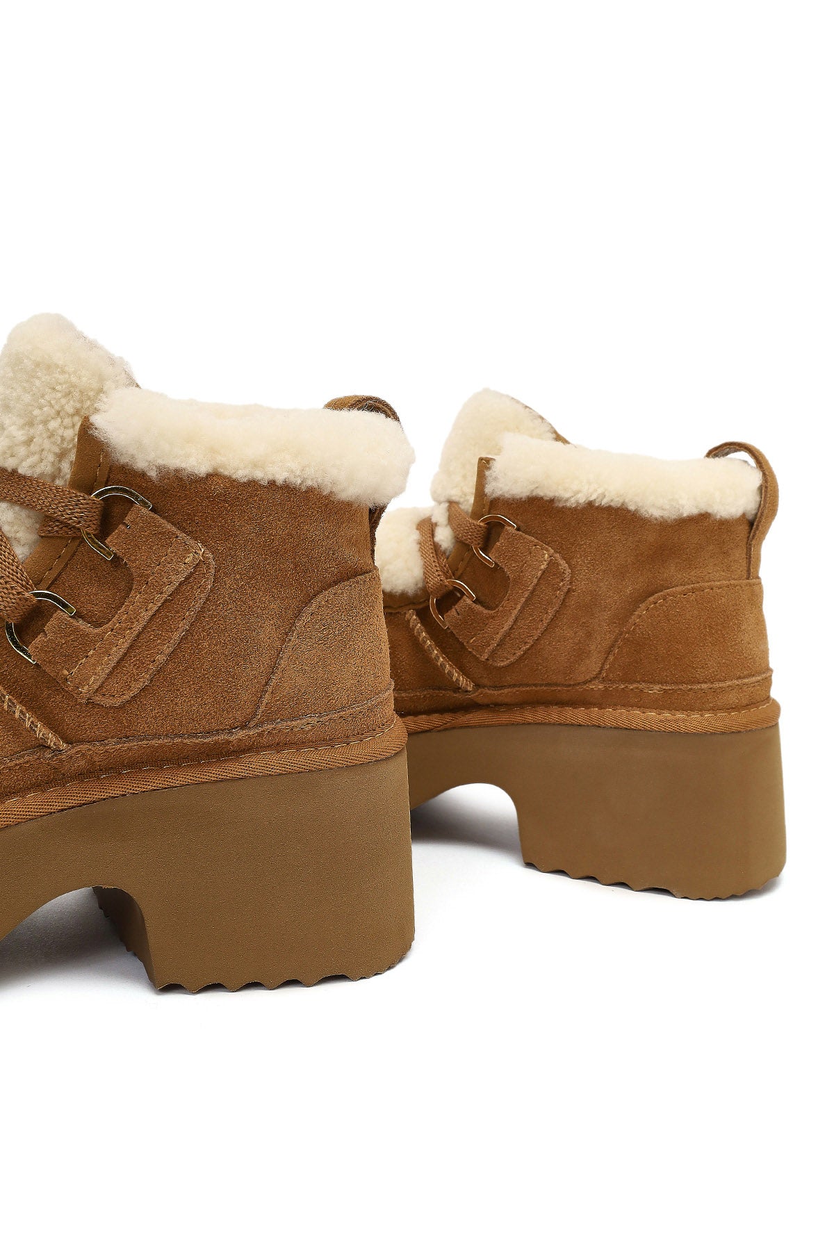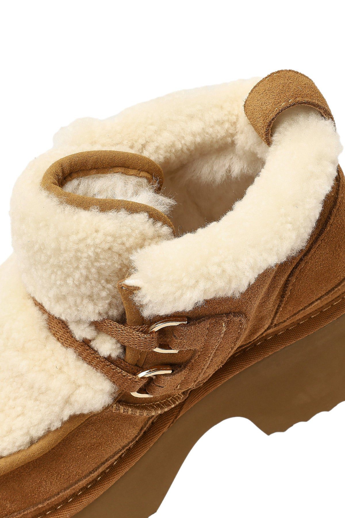 Kadın Camel Bağcıklı Kalın Tabanlı Kürklü Süet Deri Teddy Bot