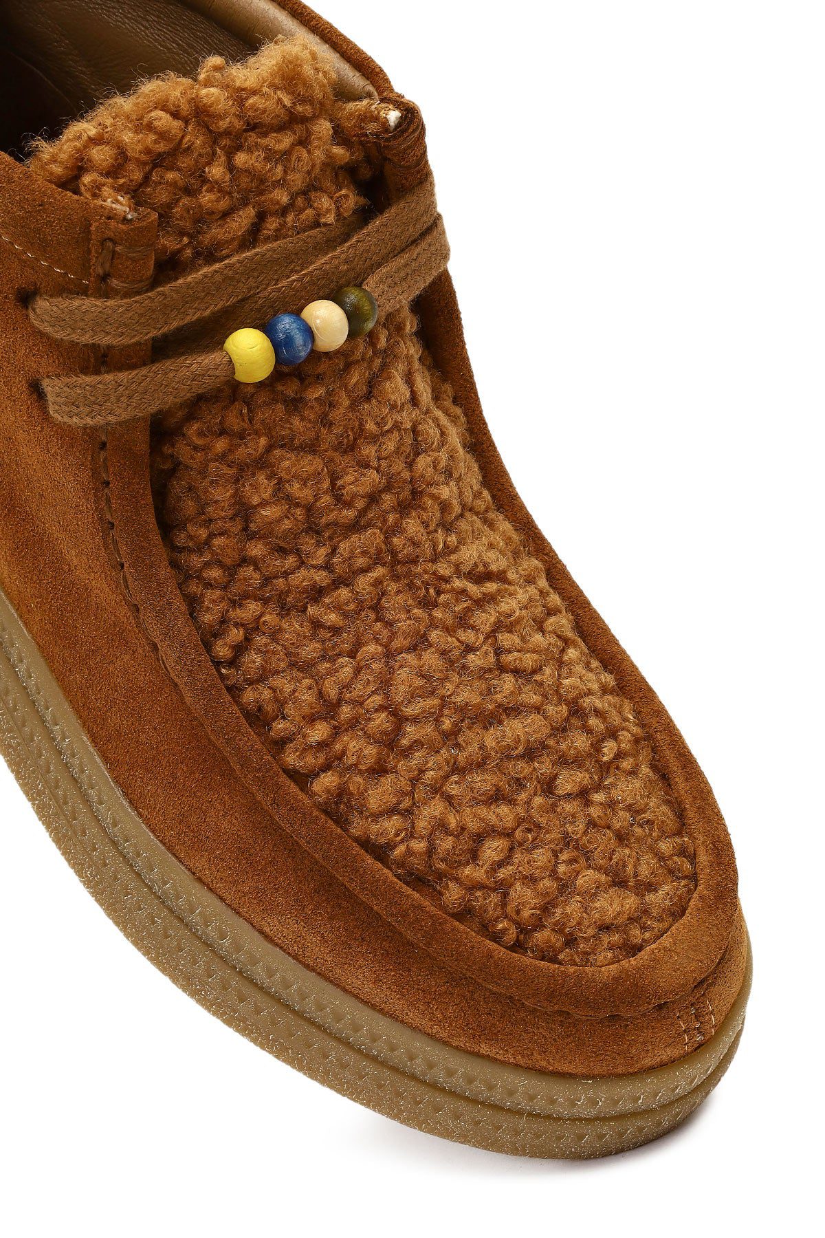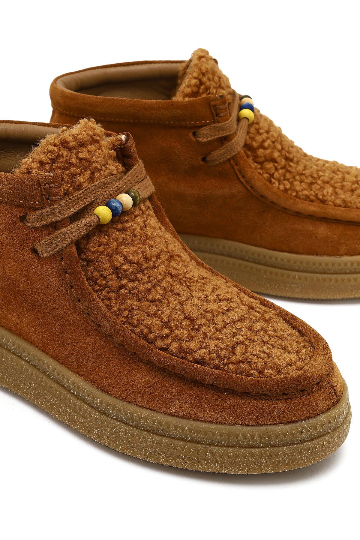 Kadın Taba Bağcık Kalın Tabanlı Süet Deri Teddy Bot