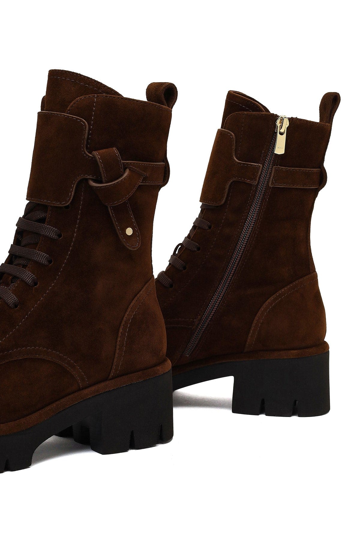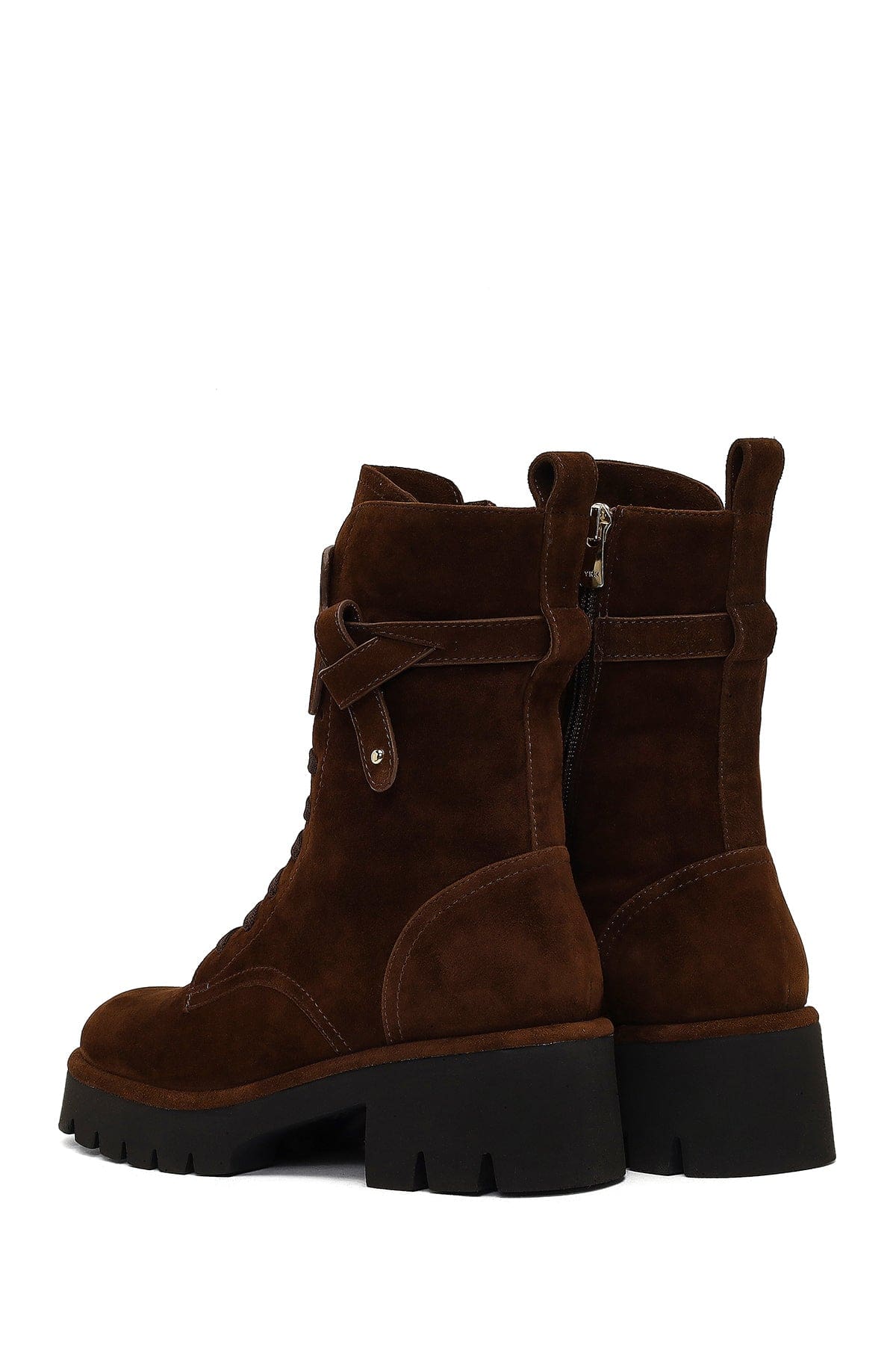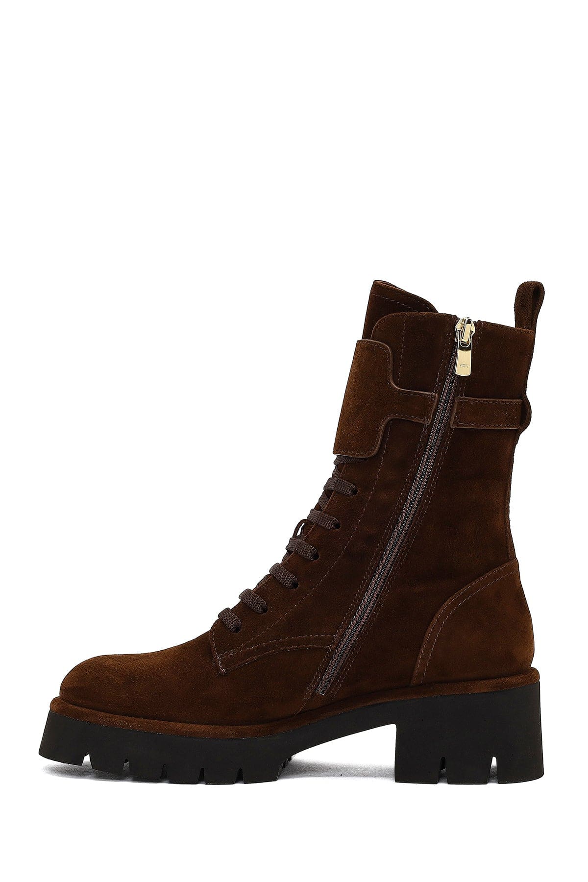 Kadın Kahverengi Fermuarlı Kalın Tabanlı Süet Deri Postal Bot