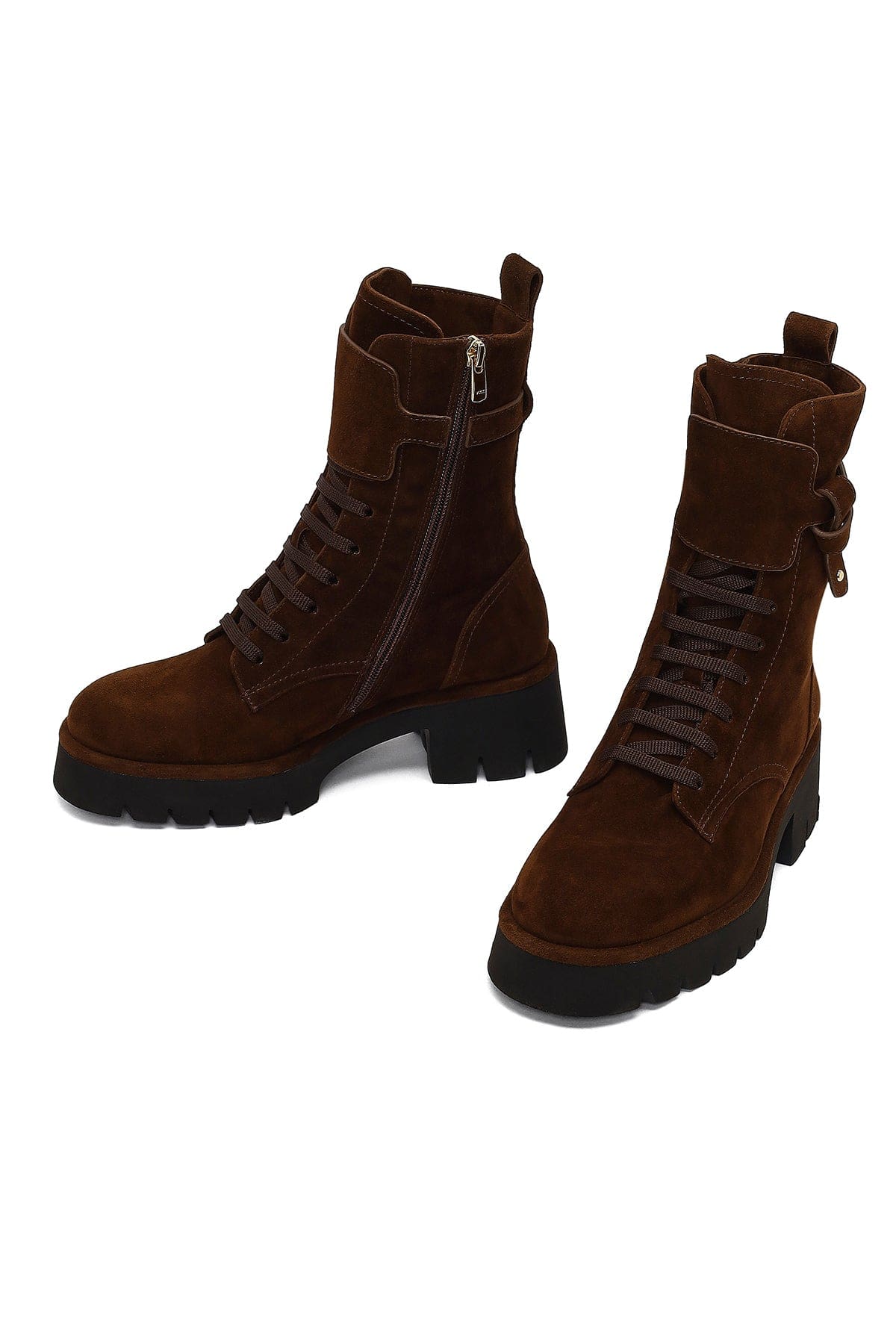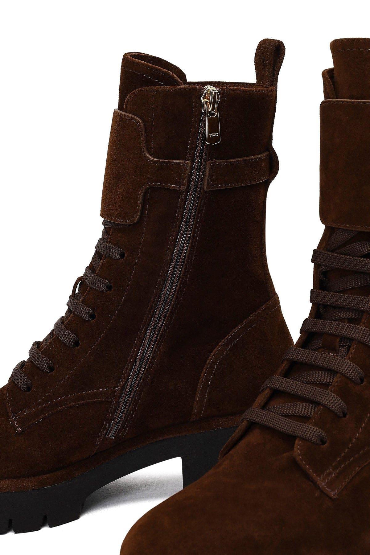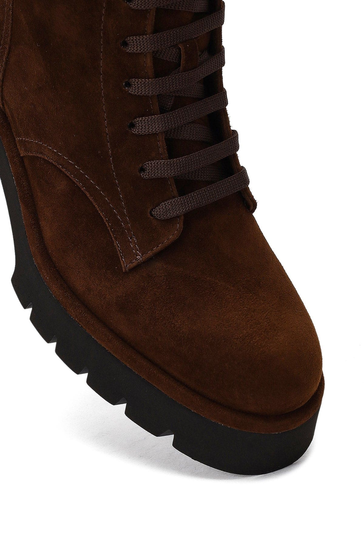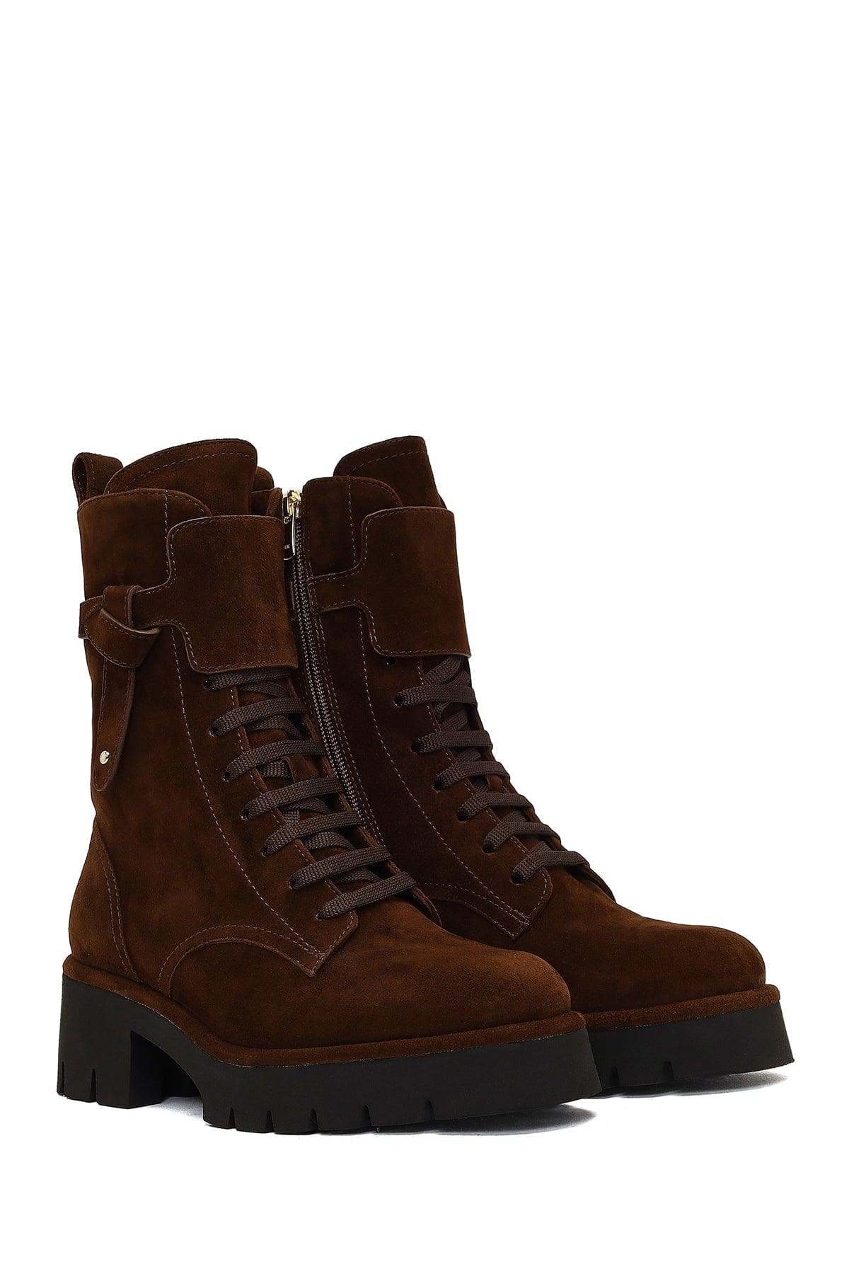 Kadın Kahverengi Fermuarlı Kalın Tabanlı Süet Deri Postal Bot