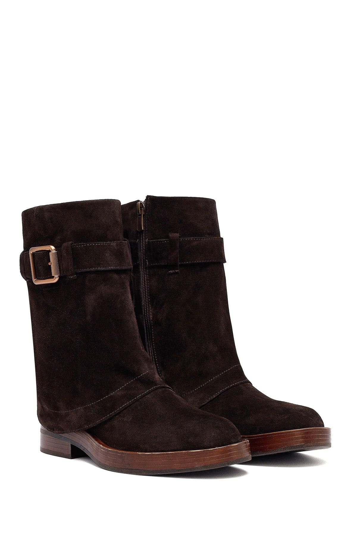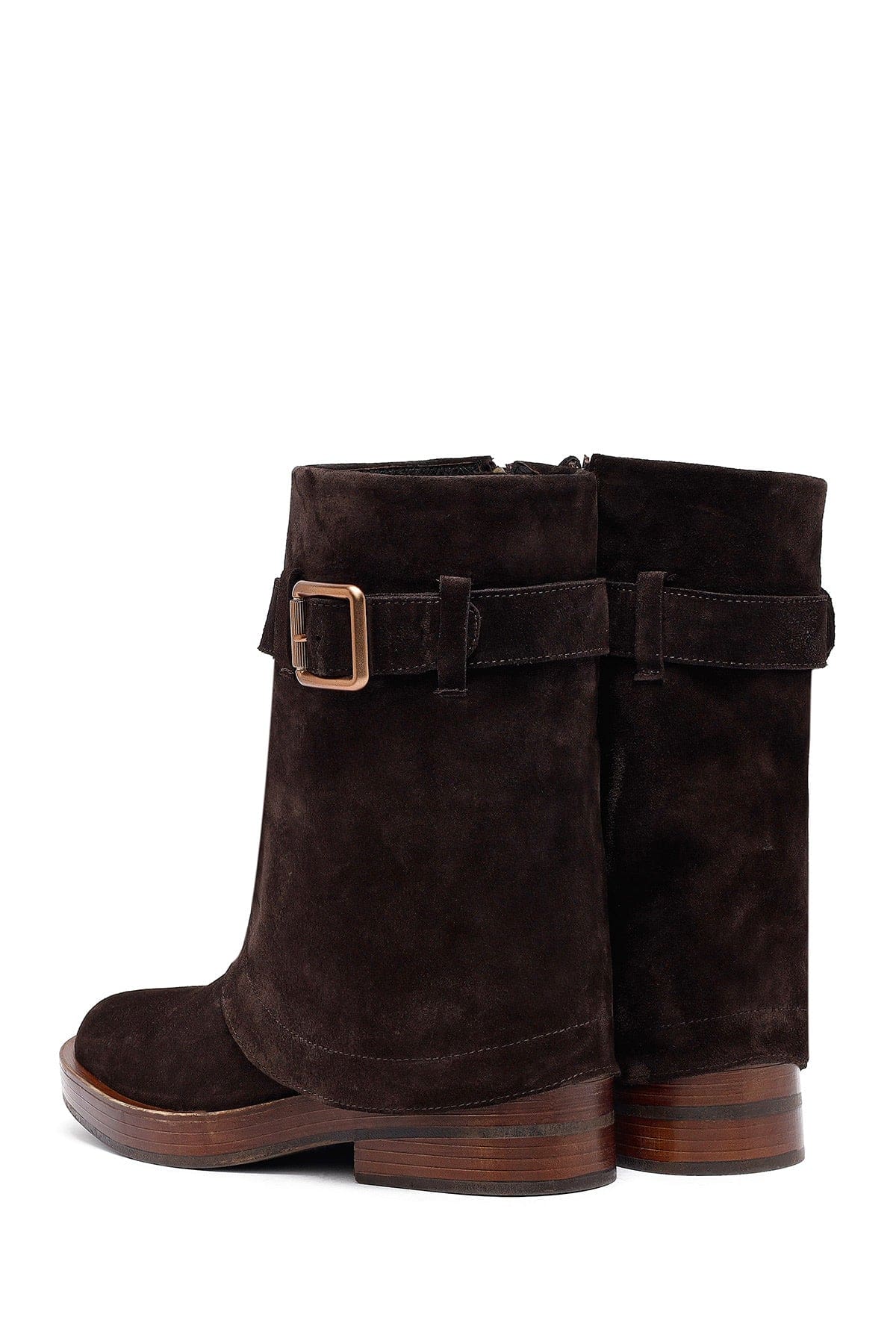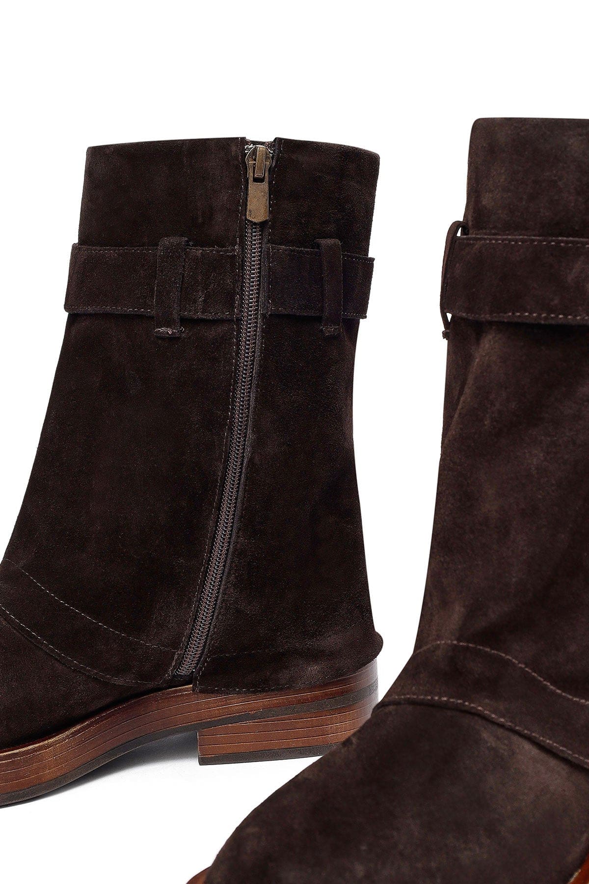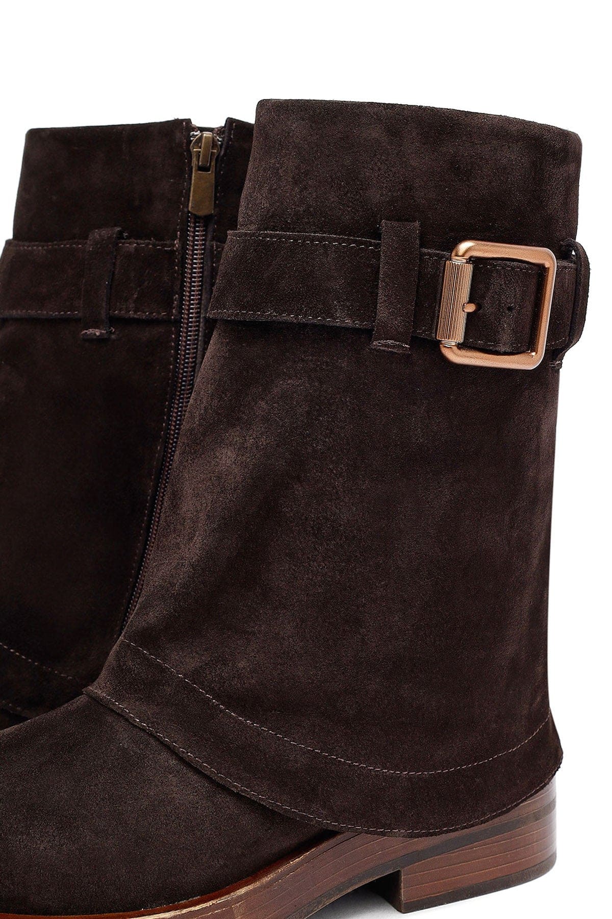 Kadın Kahverengi Fermuarlı Süet Deri Biker Bot