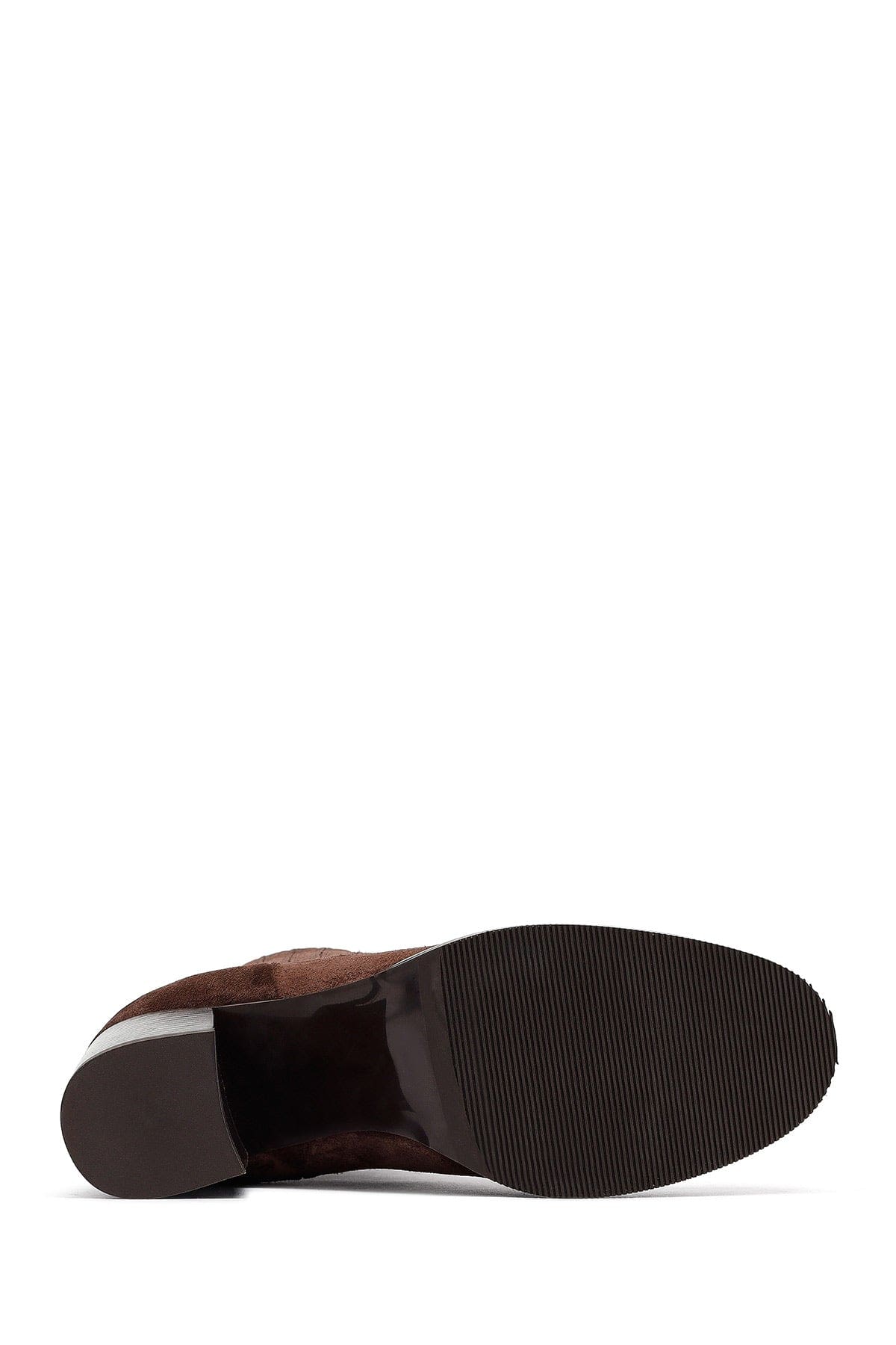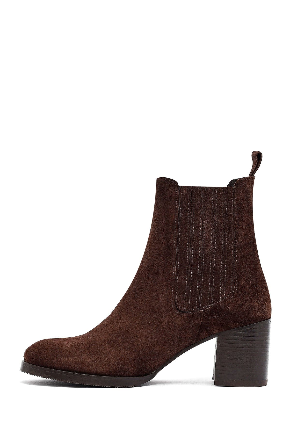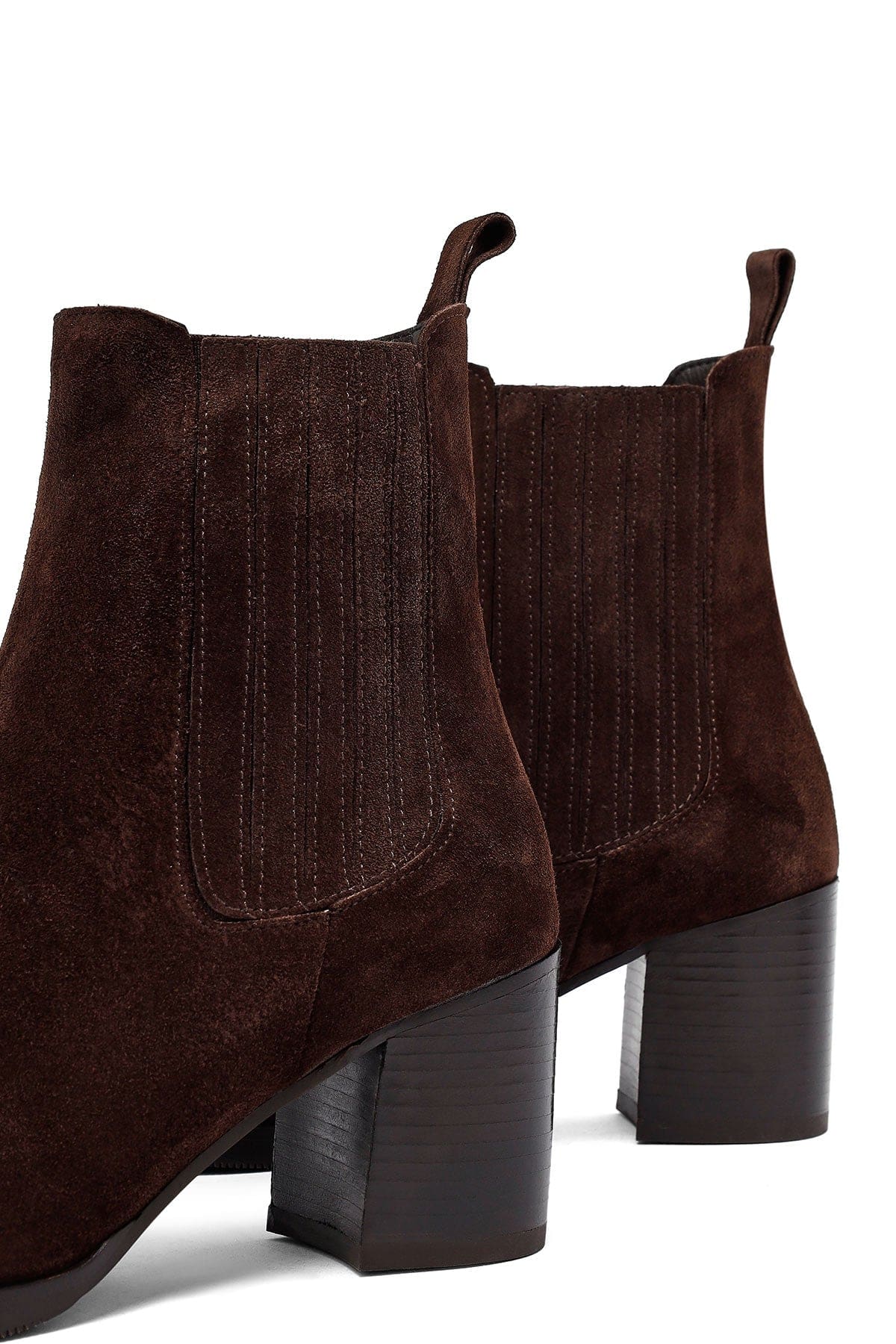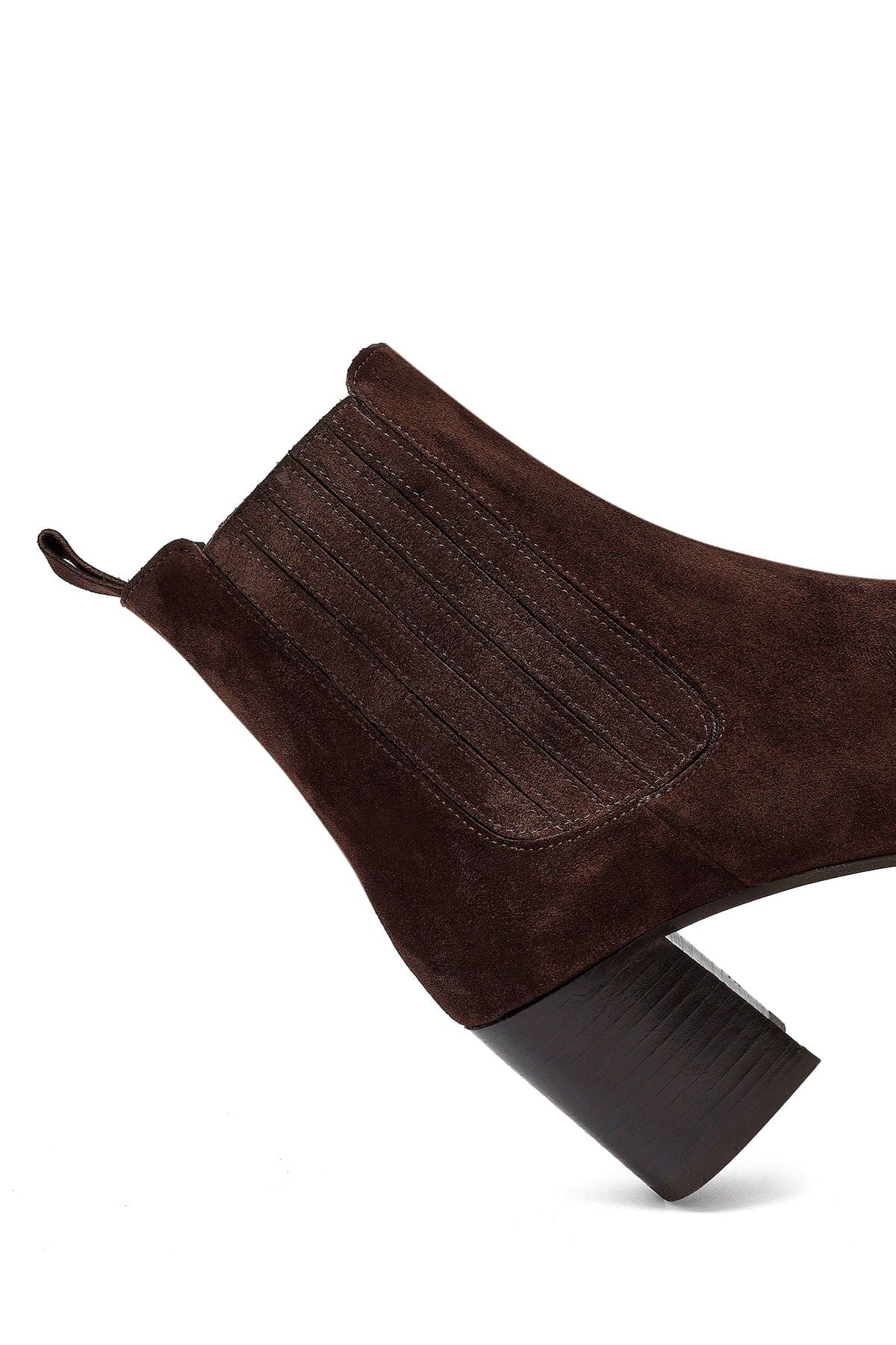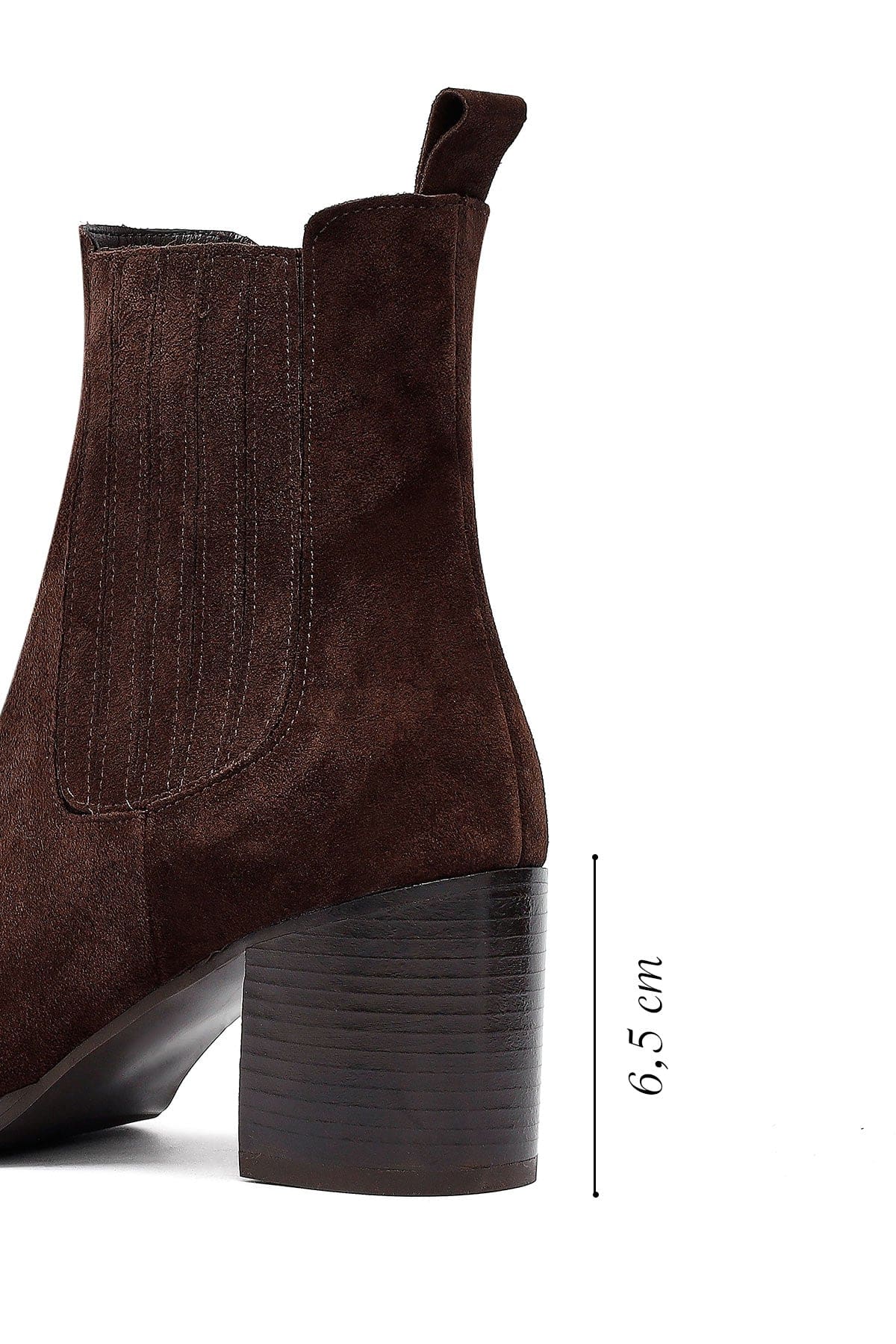 Kadın Kahverengi Kalın Topuklu Süet Deri Chelsea Bot