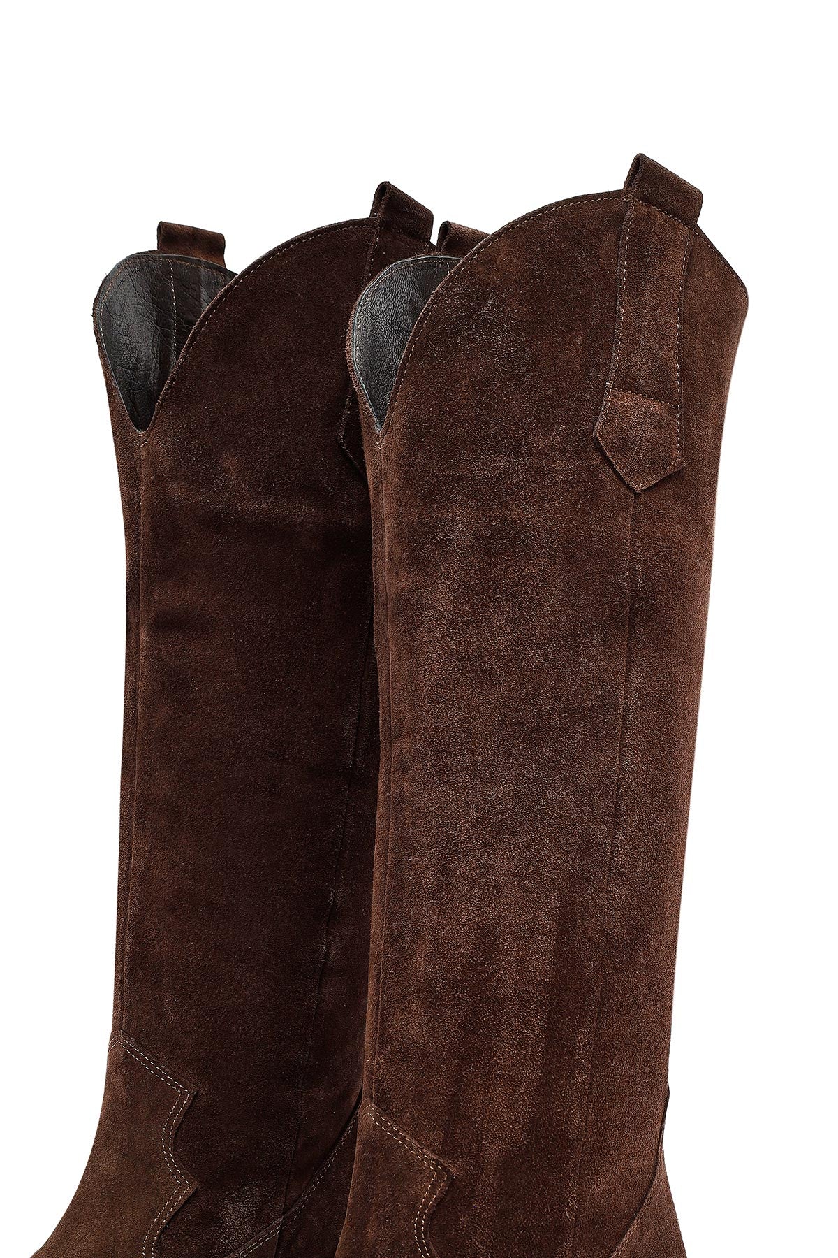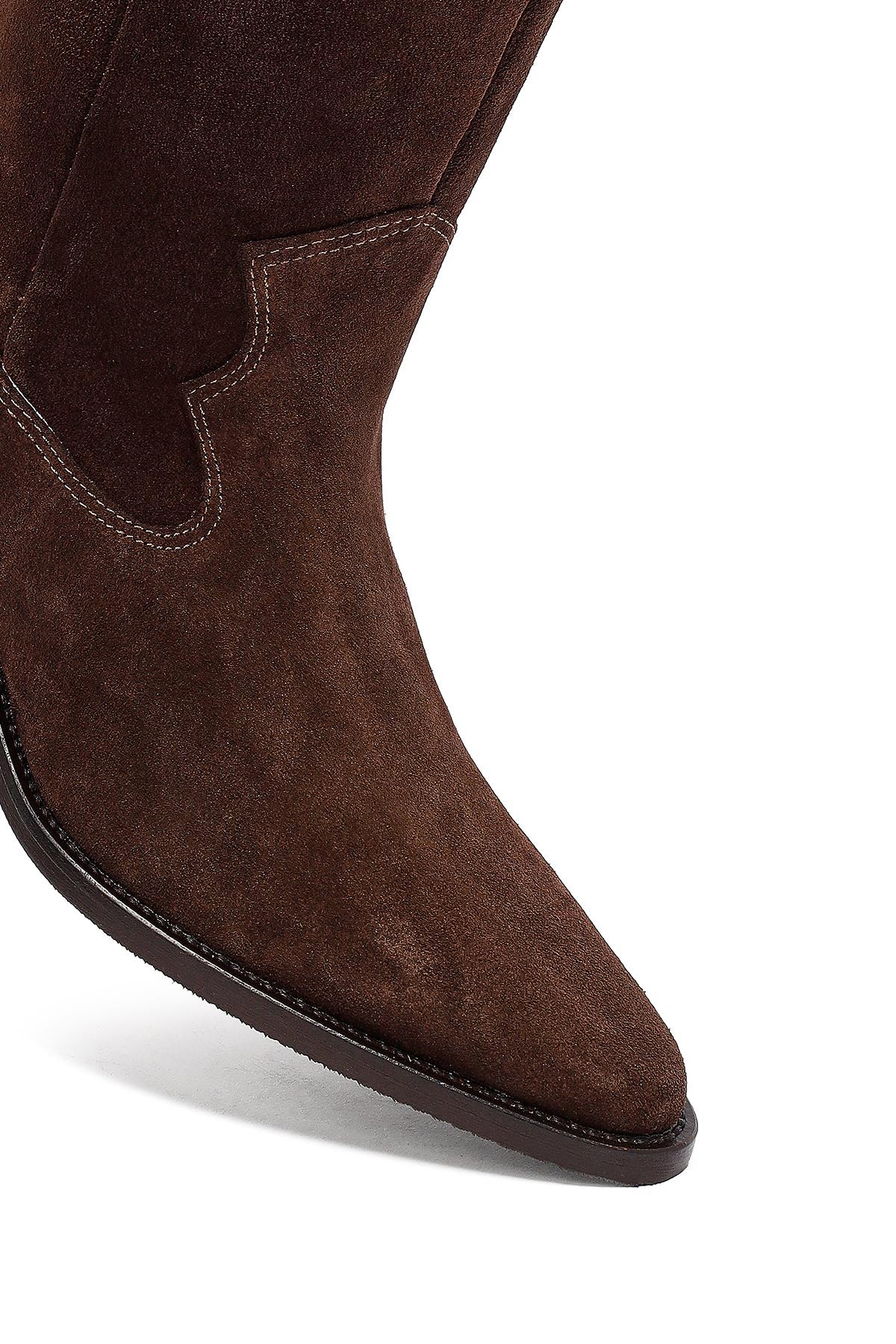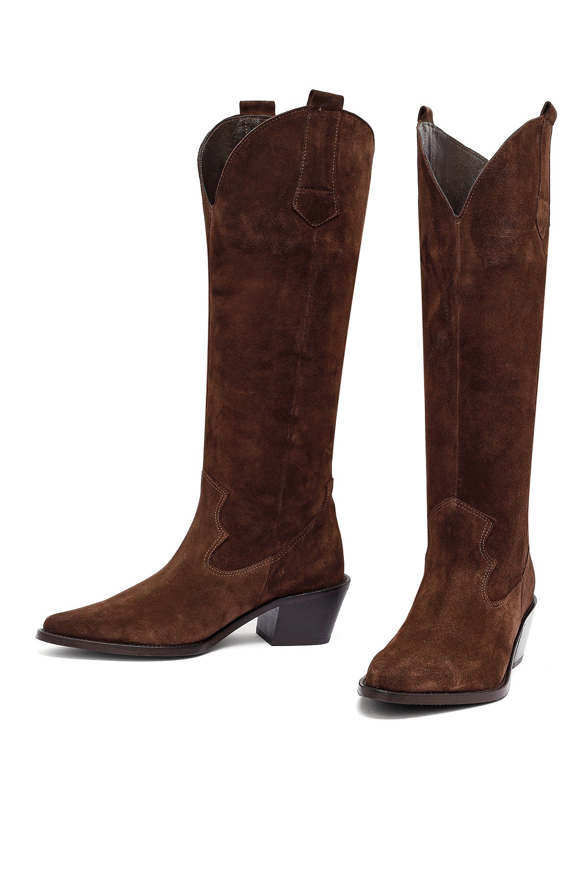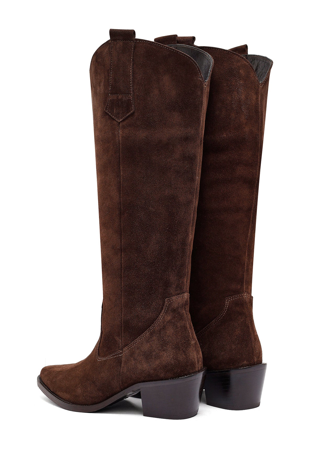 Kadın Kahverengi Kalın Topuklu Süet Deri Kovboy Çizme