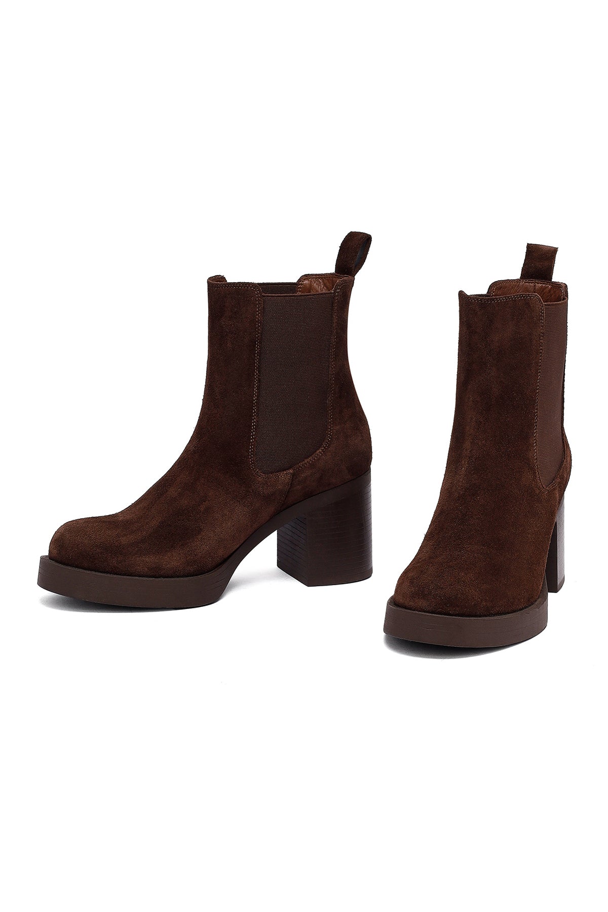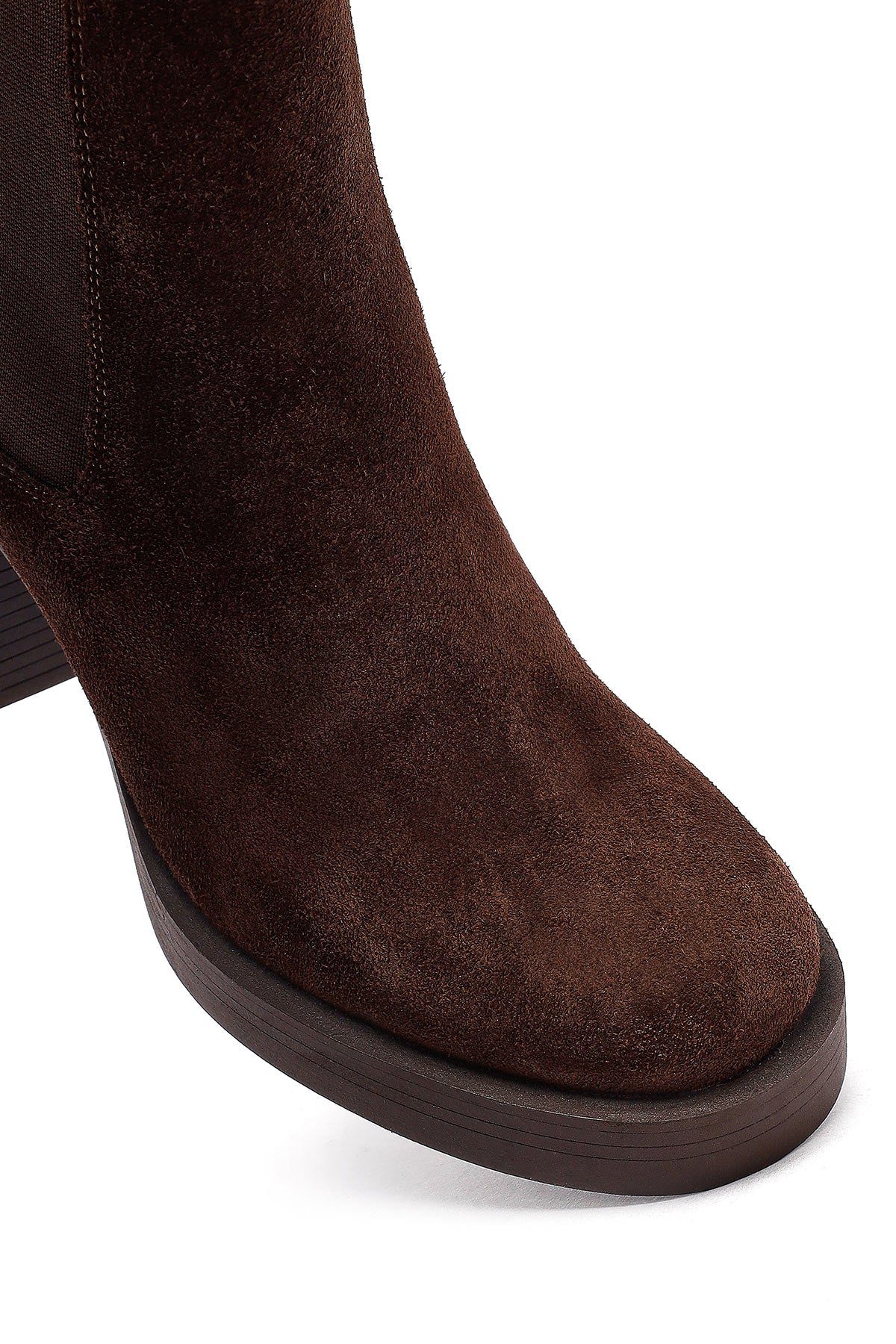 Kadın Kahverengi Topuklu Süet Deri Chelsea Bot