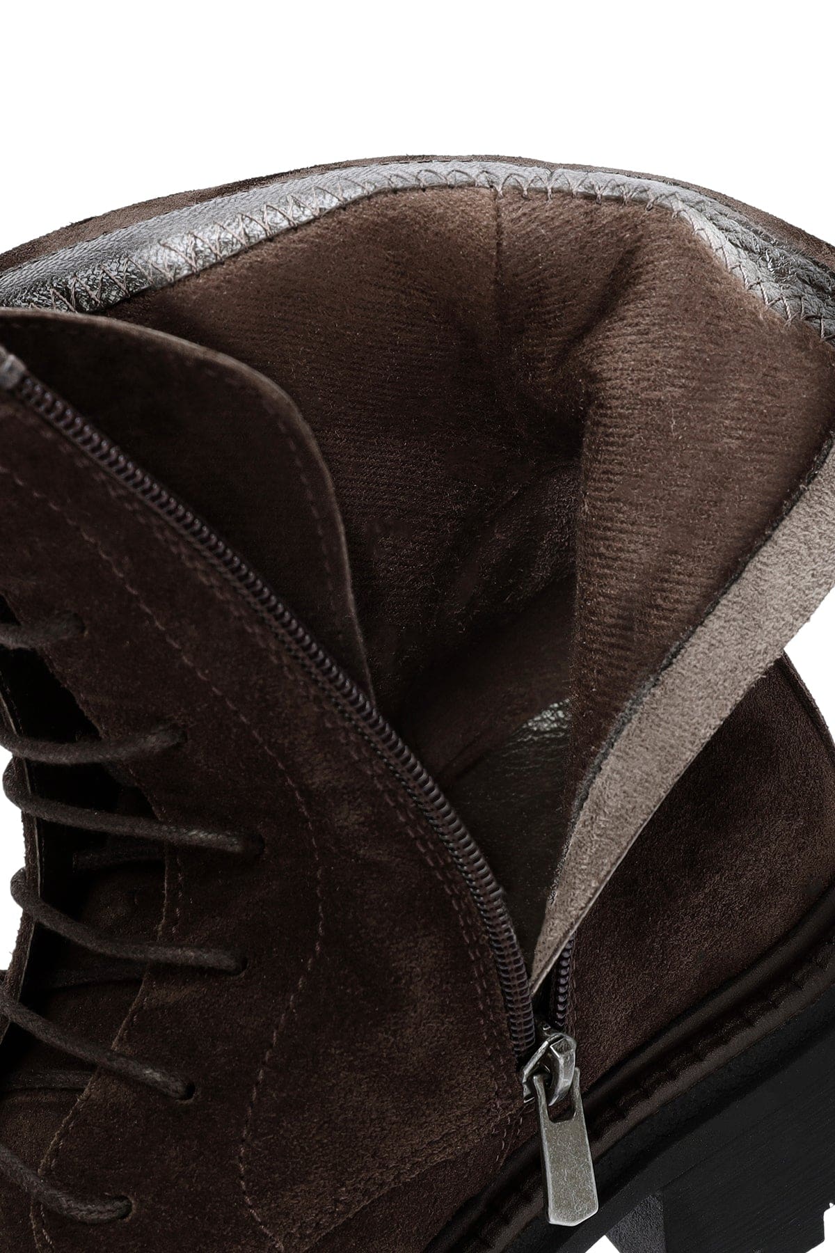 Kadın Kahverengi Fermuarlı Kalın Tabanlı Süet Deri Postal Bot