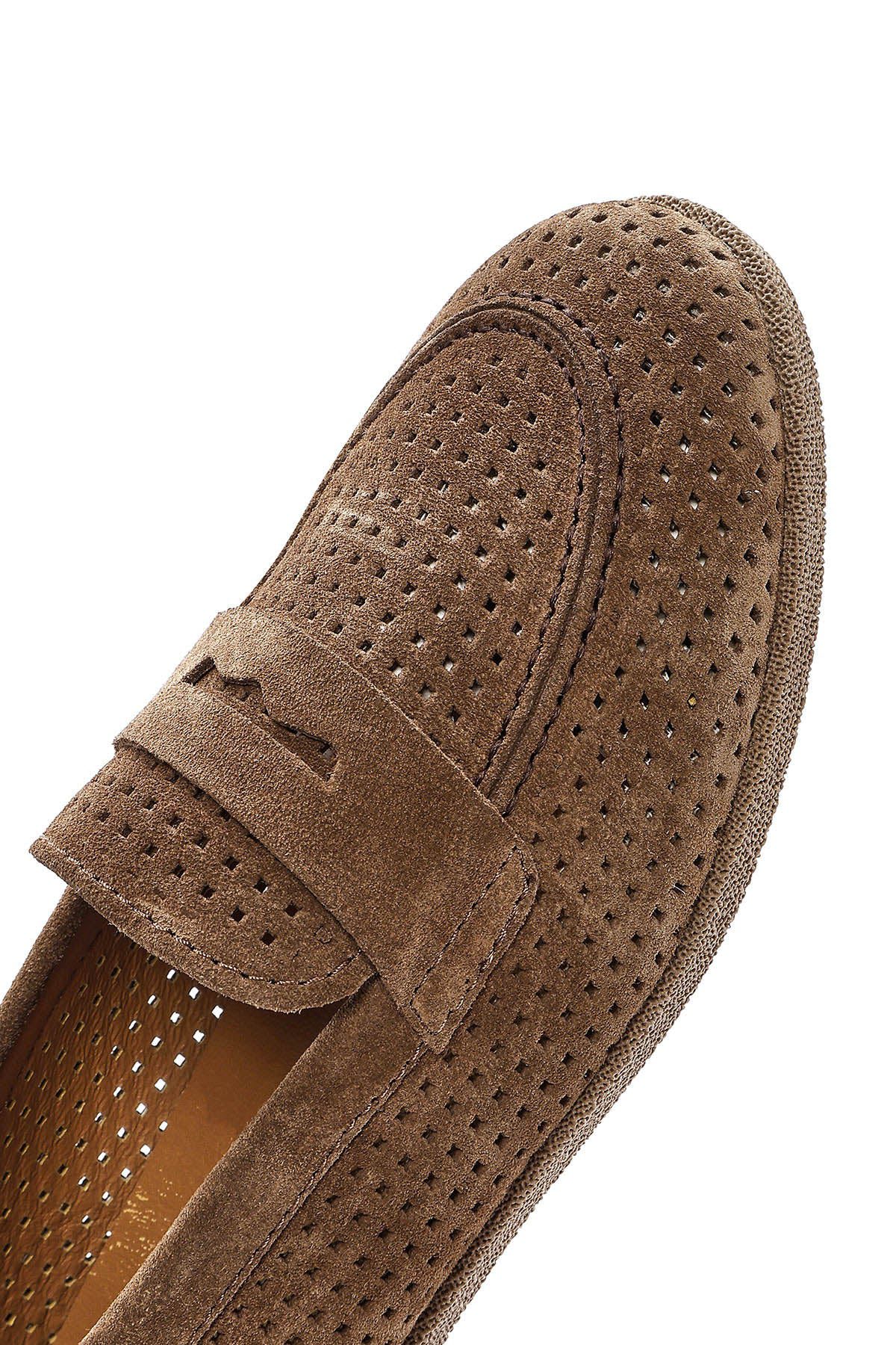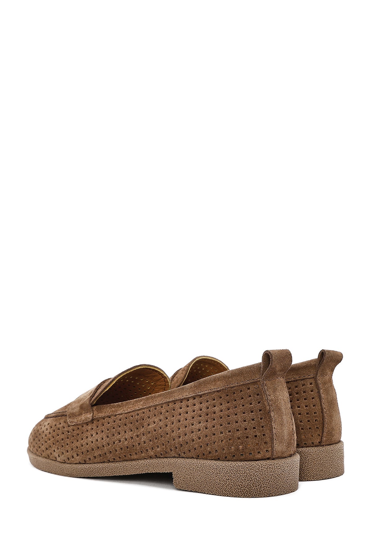 کفش لوفر زنانه چرم جیر قهوهای دری مد