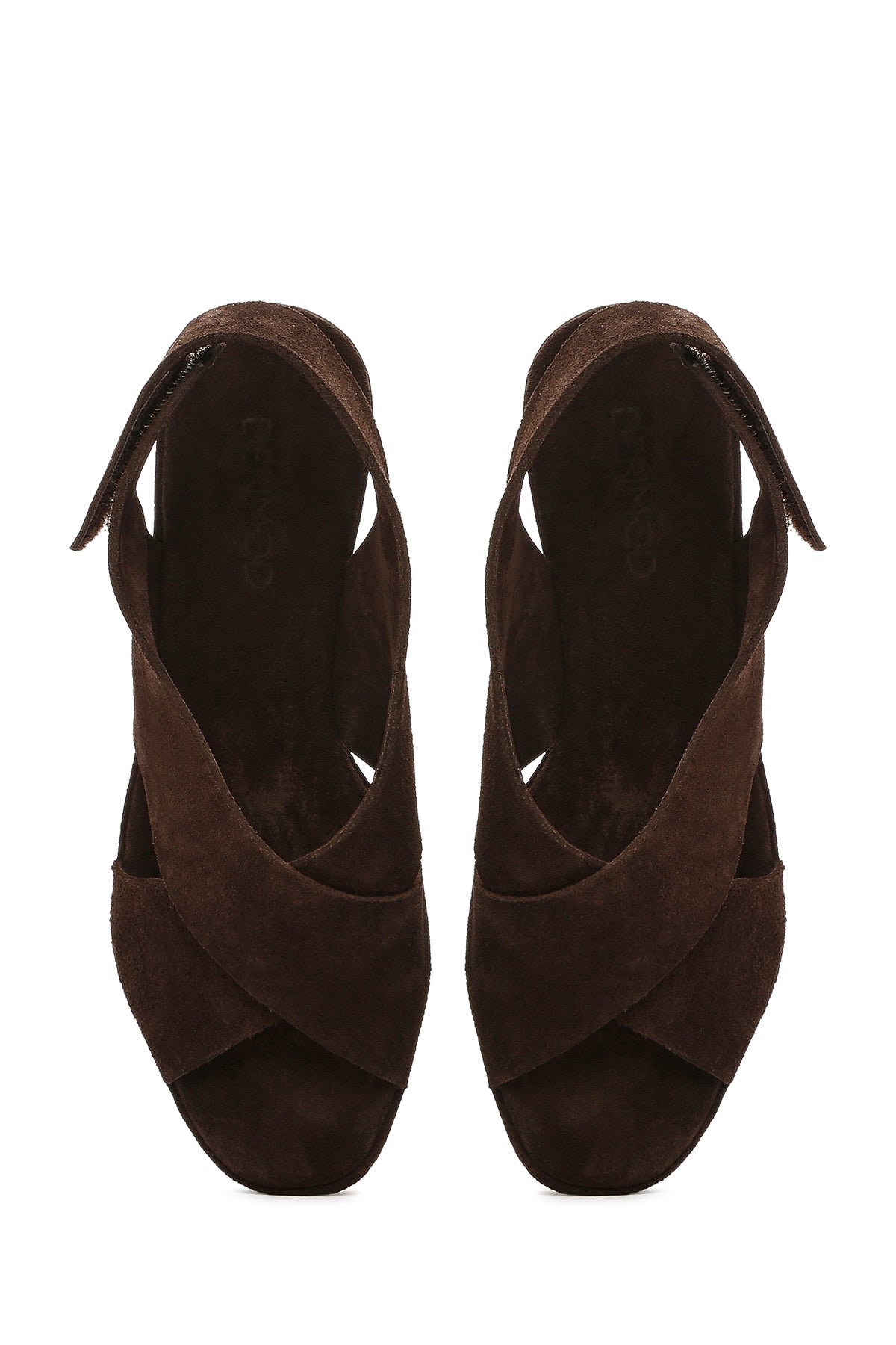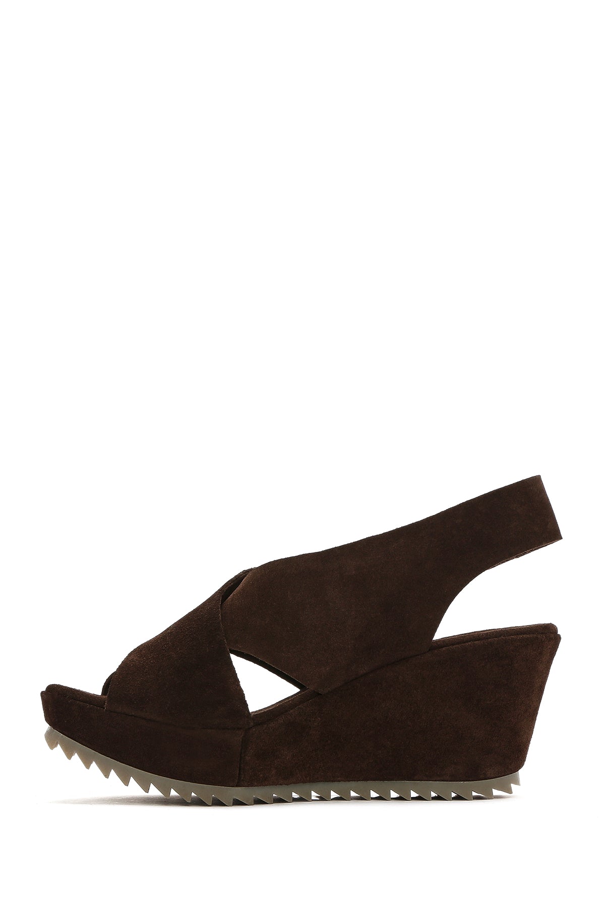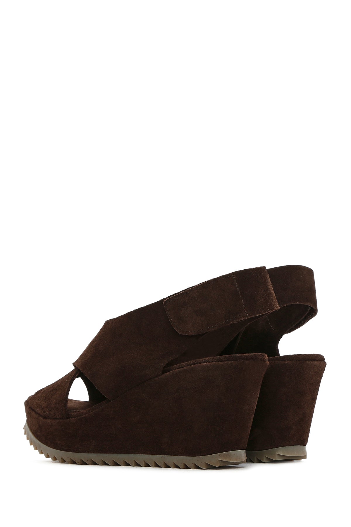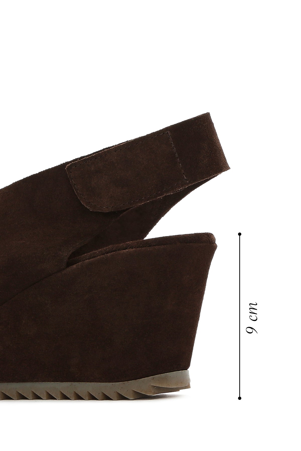 Kadın Kahverengi Arkadan Bantlı Dolgu Topuklu Süet Deri Sandalet